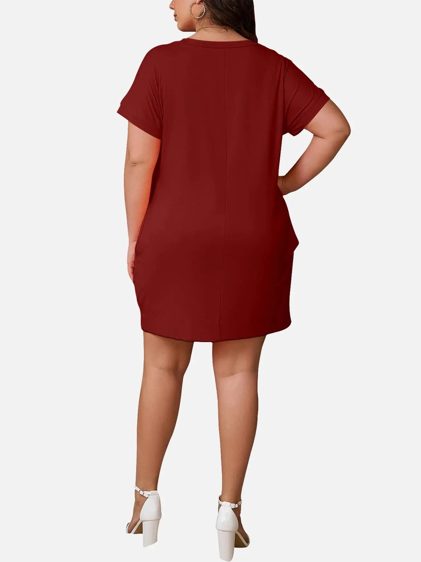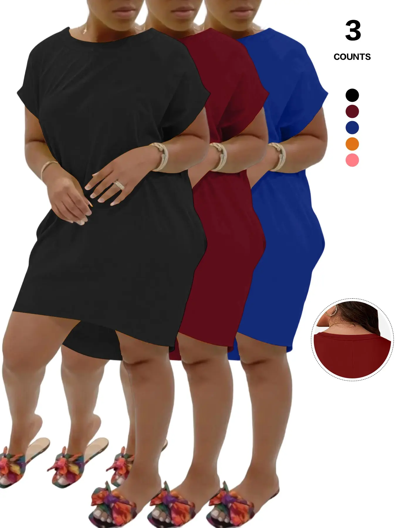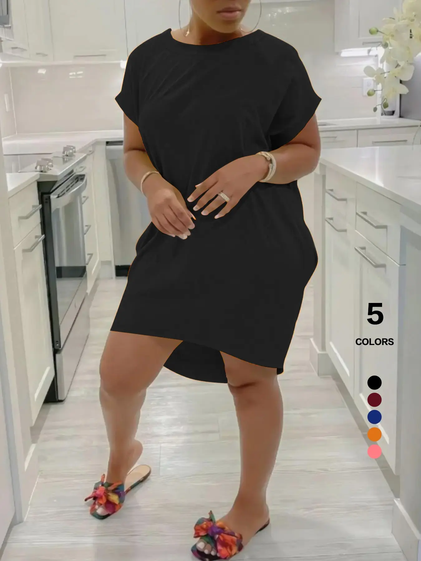 5. Women's Solid Color Batwing Sleeve Hidden Pocket Tee Dress, Casual Fashionable Daily Wear, Comfortable & Stylish Design