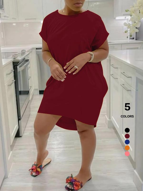 Women's Solid Color Batwing Sleeve Hidden Pocket Tee Dress, Casual Fashionable Daily Wear, Comfortable & Stylish Design
