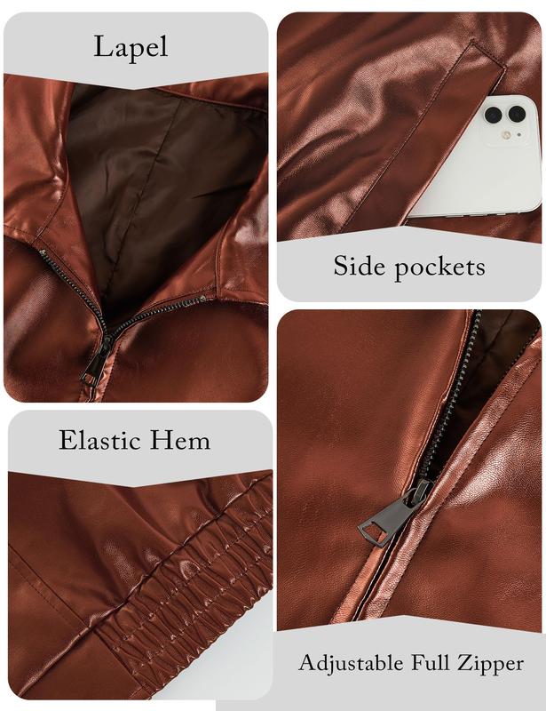 Womens Oversized Leather Jackets Faux Casual Zip Up Trendy Bomber Motorcycle Jacket with Pockets