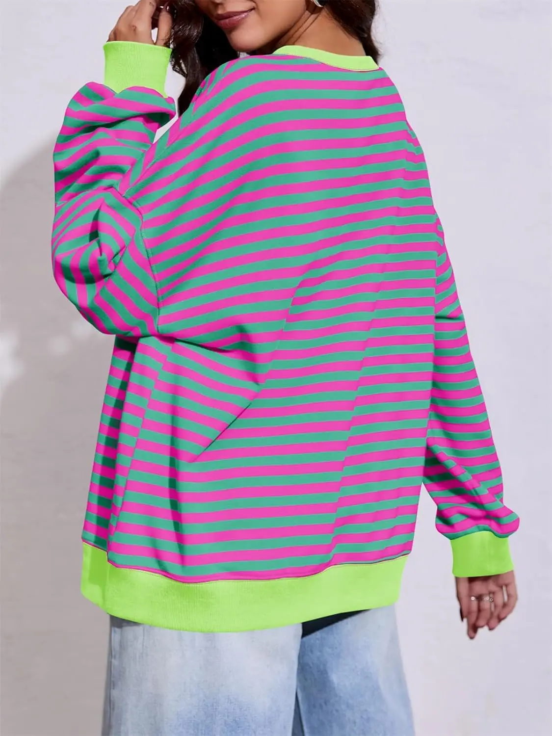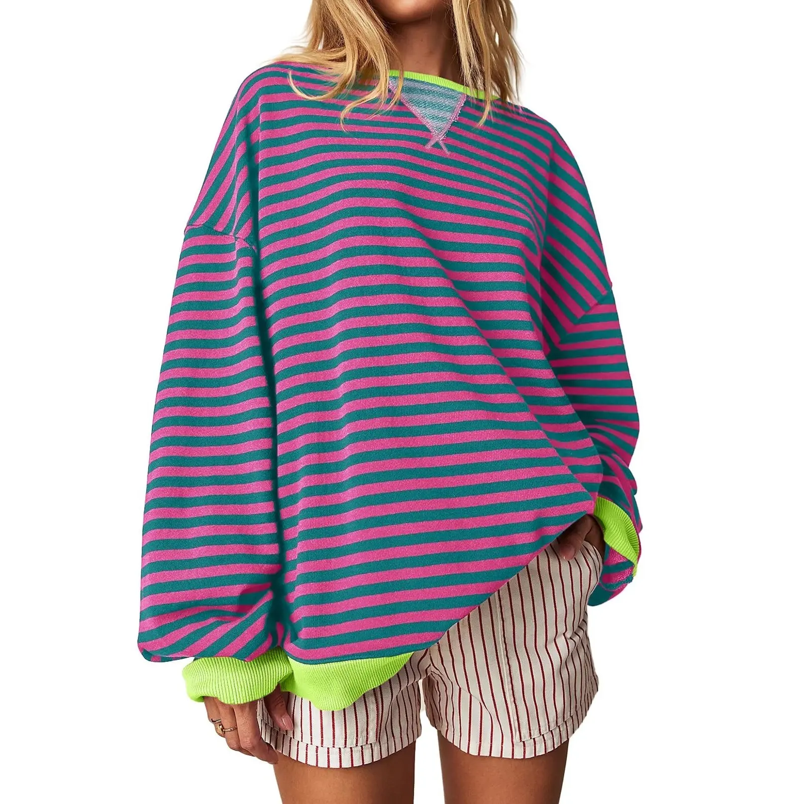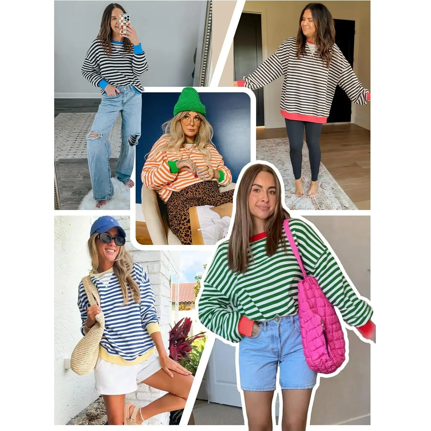 【What Material We Use】: We believe in providing our customers with the best quality products. Women oversized striped sweatshirt is made of high quality cotton blend, it is super soft, stretchy, breathable and skin-friendly, to keep you comfortable and relaxed all day, suitable for Spring, Summer and Autumn.