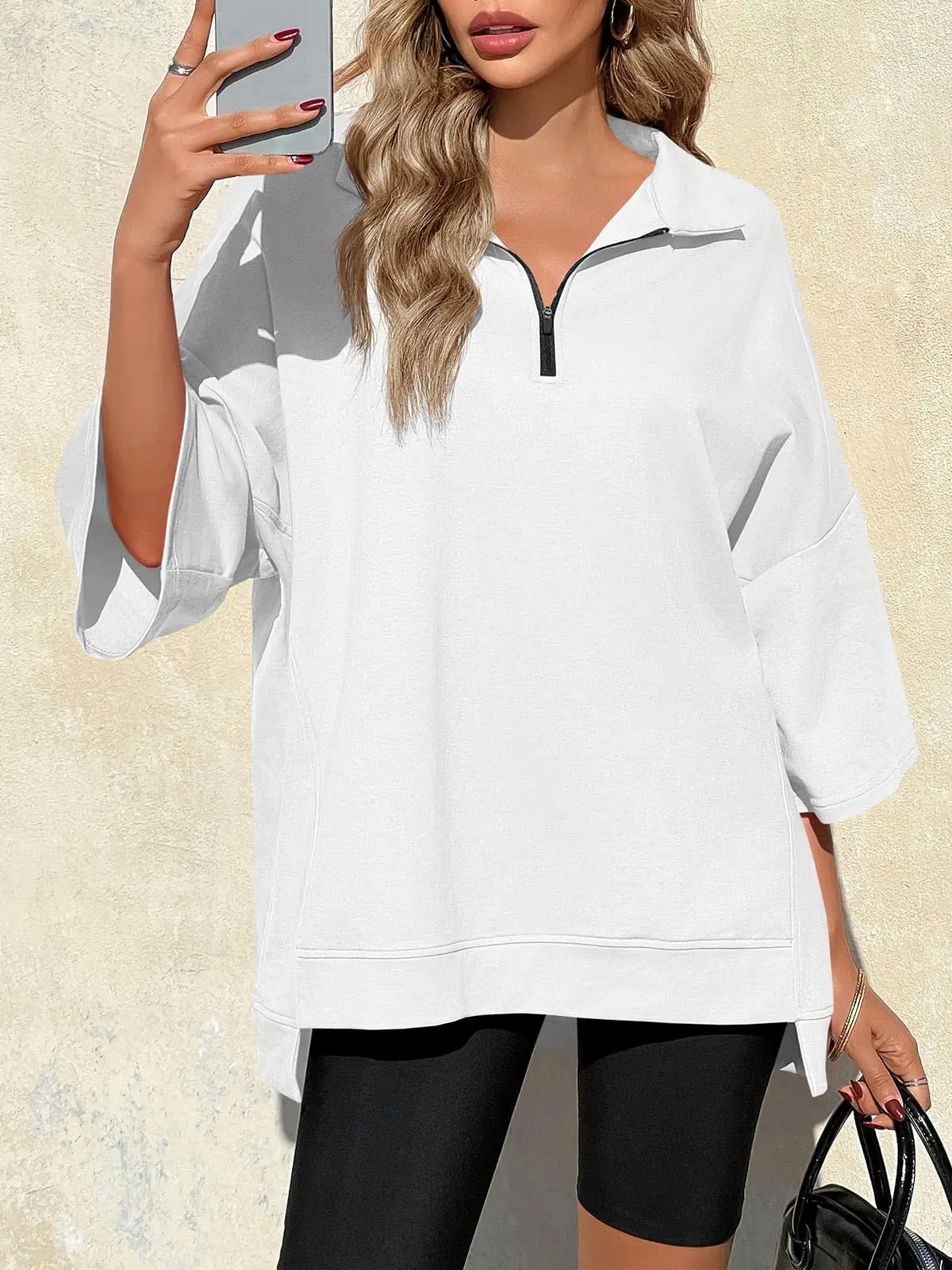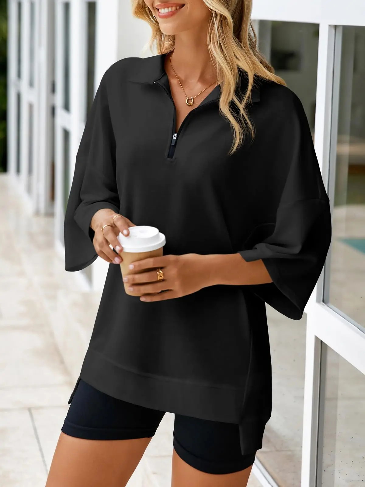 Oversized design fits all body types, ensuring a comfortable wear. This casual zip-up top is perfect for everyday use. The relaxed fit allows for ease of movement, making it ideal for various activities. Enjoy the comfort of a tunic-style top that complements any outfit effortlessly.