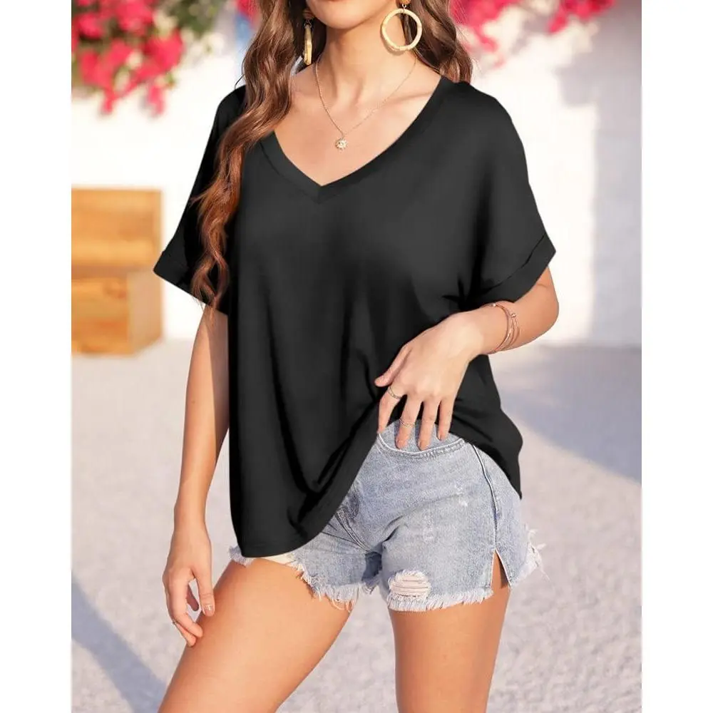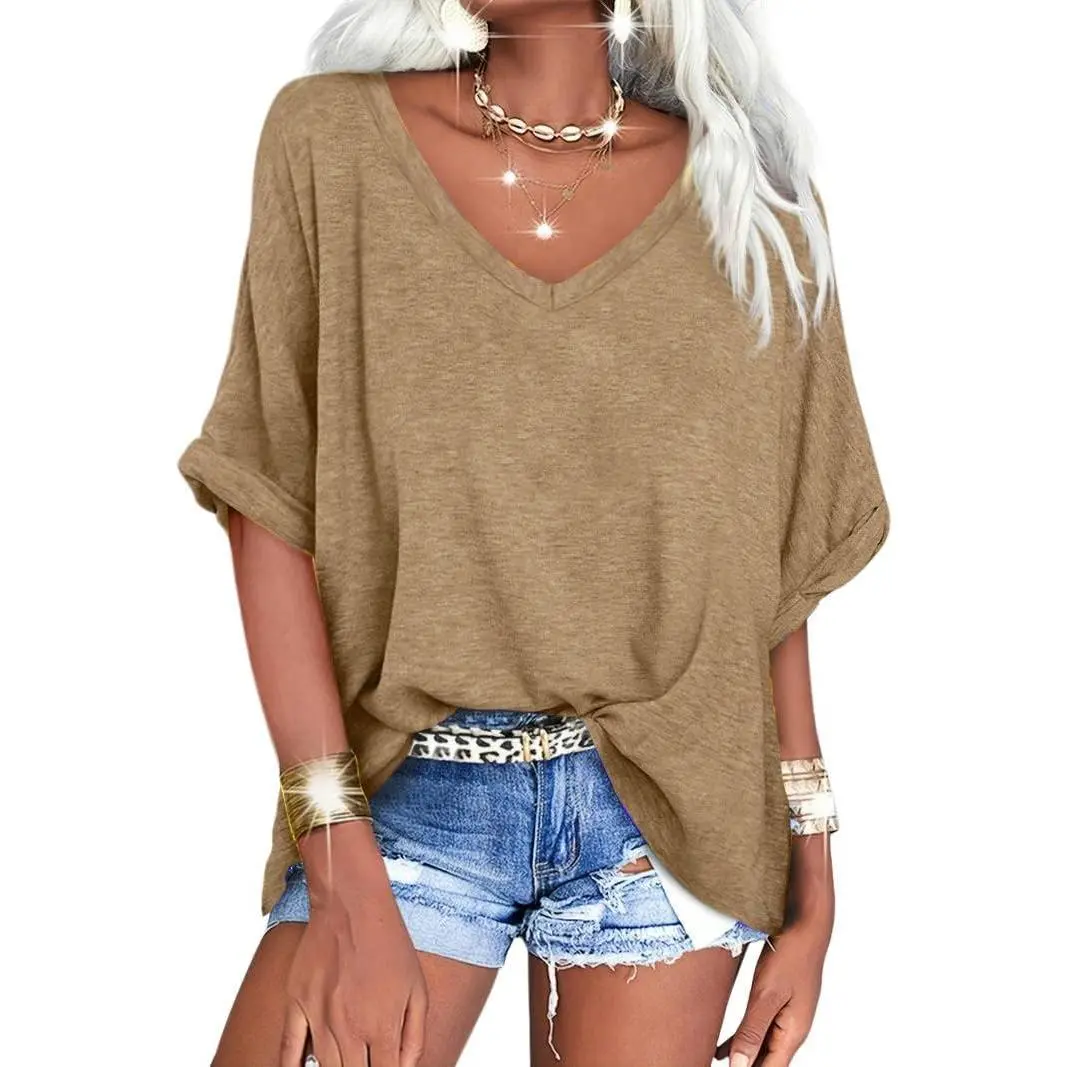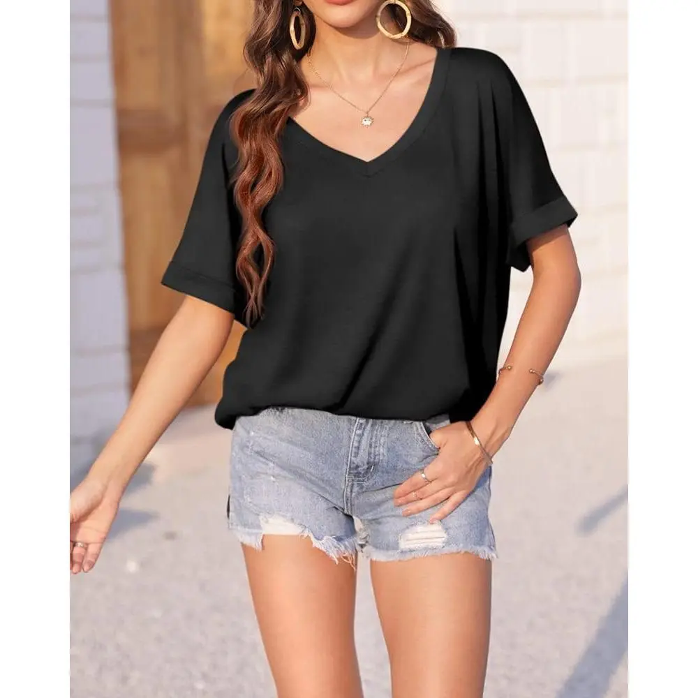 Womens Casual V Neck Plus Size T Shirts Summer Tops Tee