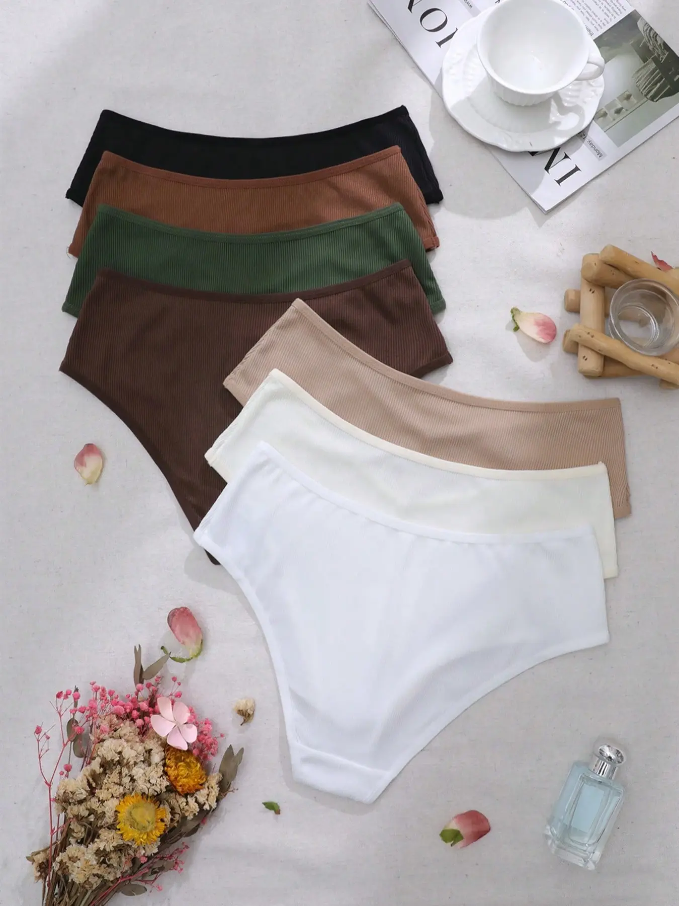 5. 7pcs Comfortable Women's Thong Panties, Breathable Underwear Set, Casual Style, Medium Stretch, All Seasons Wear, Soft Comfy Panties
