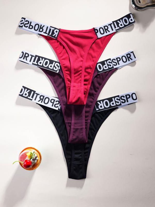 3 Pack Sexy Women's Thong Panties, Comfortable Skin-Friendly Plus Size Underwear, Letter Waistband Design, Casual Style