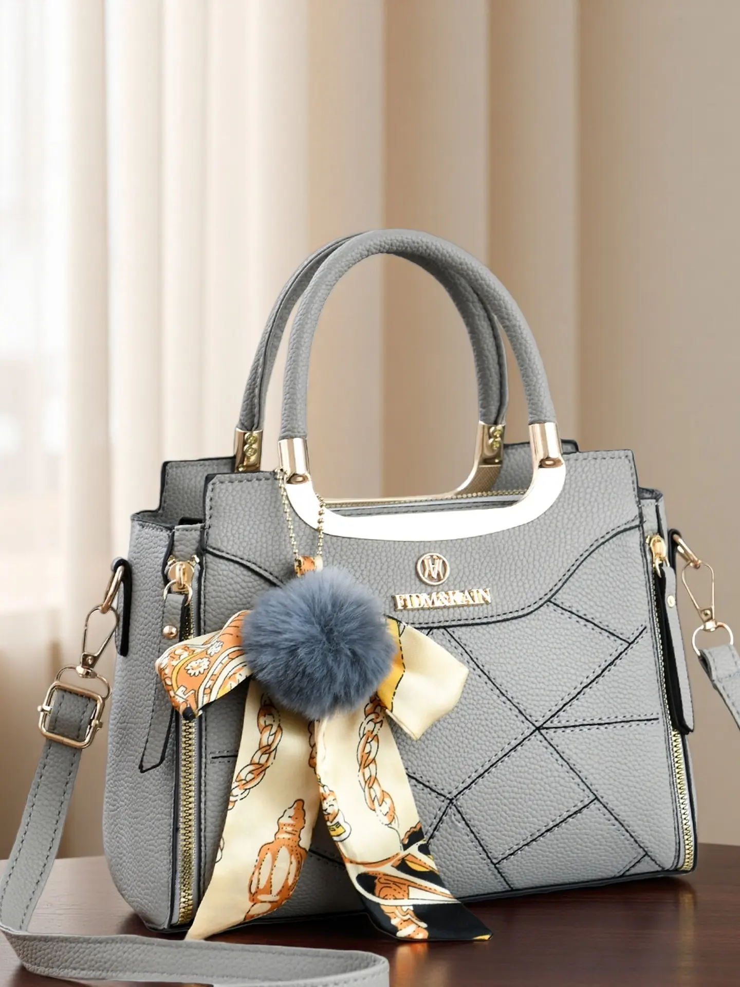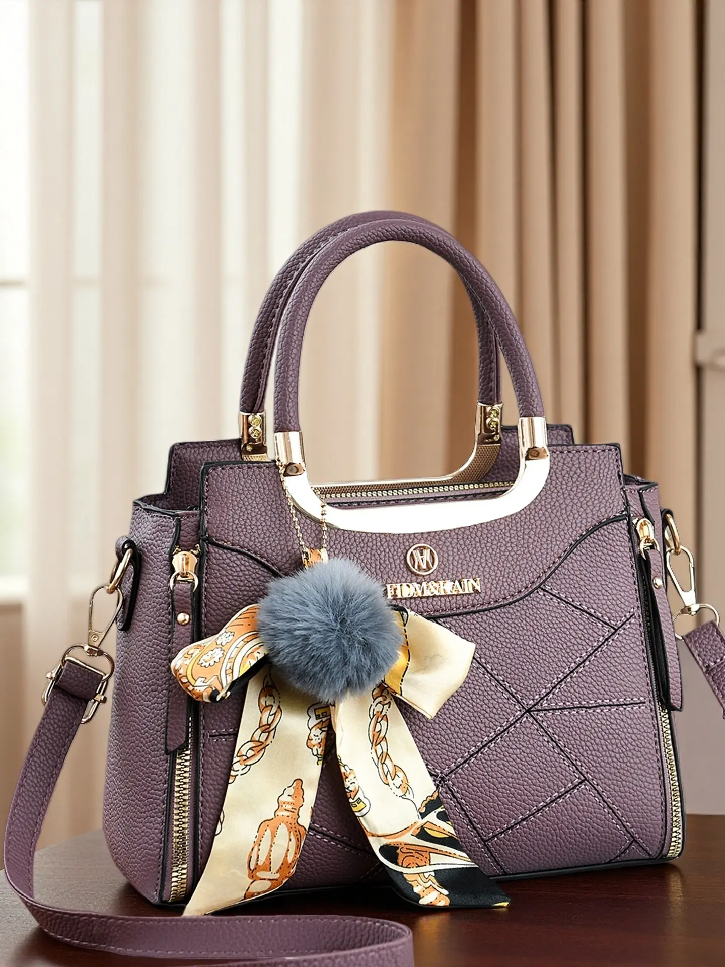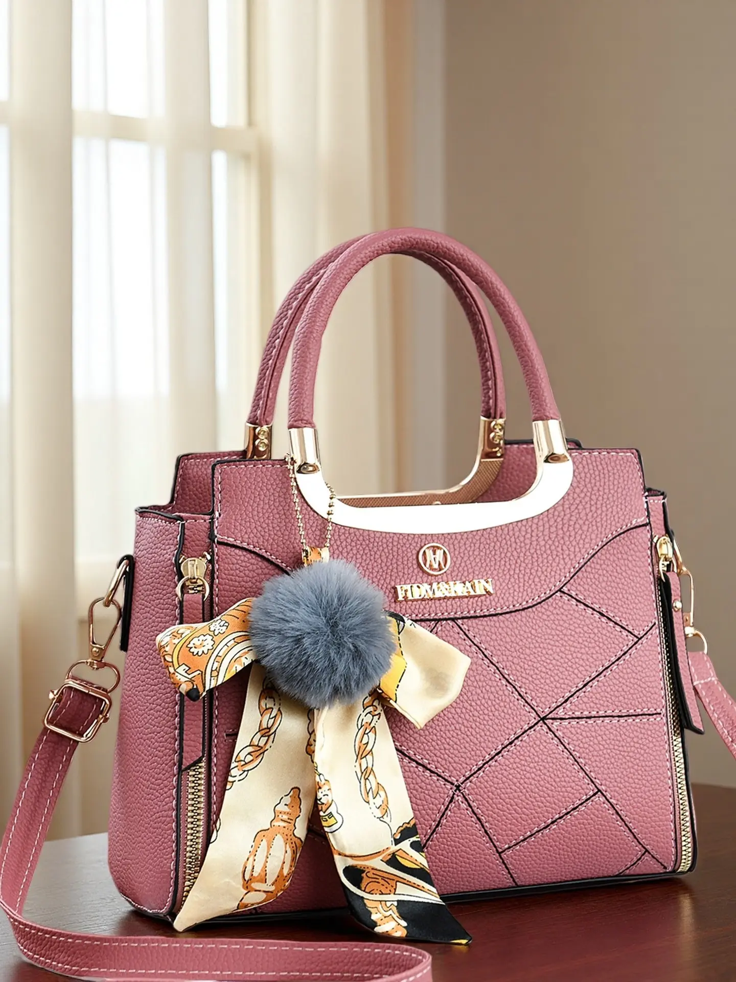 Large Capacity Women's Handbag, Stylish Durable Satchel for Daily Use, Elegant Plush Pendant, Available in Multiple Colors