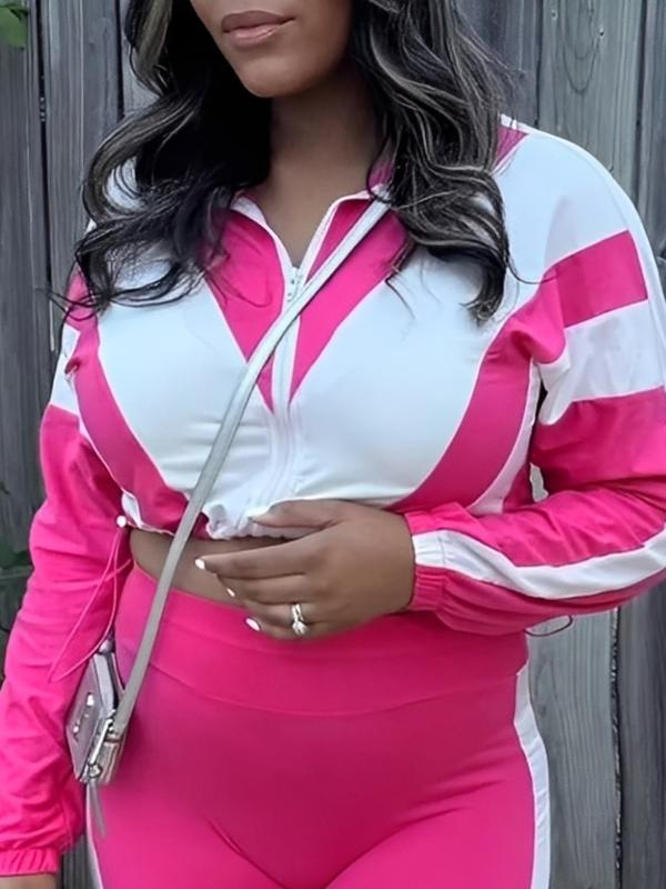 Women's Patchwork Casual Long Sleeve Jacket,  No Pants Included,Zipper Drawstring Sportswear, Fitted All Seasons Outerwear #womenspajamass #vintageactivewear #womensweartrend #womenspantssuit #womenfashionusa #onepieceactivewear #cuteoutfitswithboots #menshoodiejacket #womensfalltops #winterpajamasset