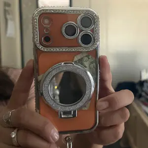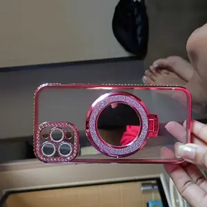 Women's Phone Case with Mirror & Stand for iPhone 12/13/14/15/16/17 Pro Max,17Air,14/15/16 Plus. Features a shiny frame, high-definition transparent material, and full-body drop-resistant design.