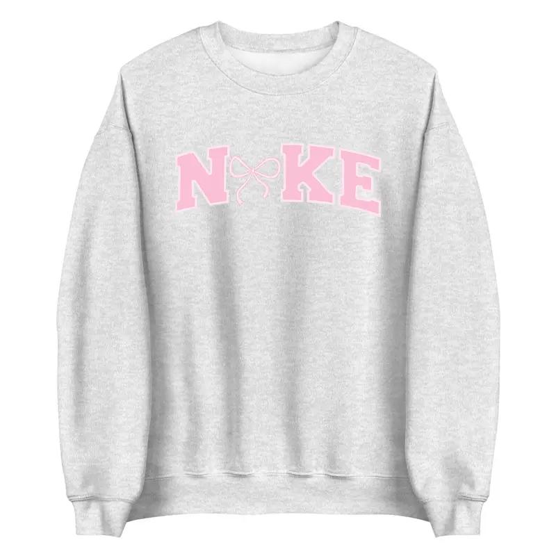 Women's Pink Bow Pullover Sweatshirt, Crewneck Sweatshirt with Bow Graphic, Graphic Tee - LORA ATCHER