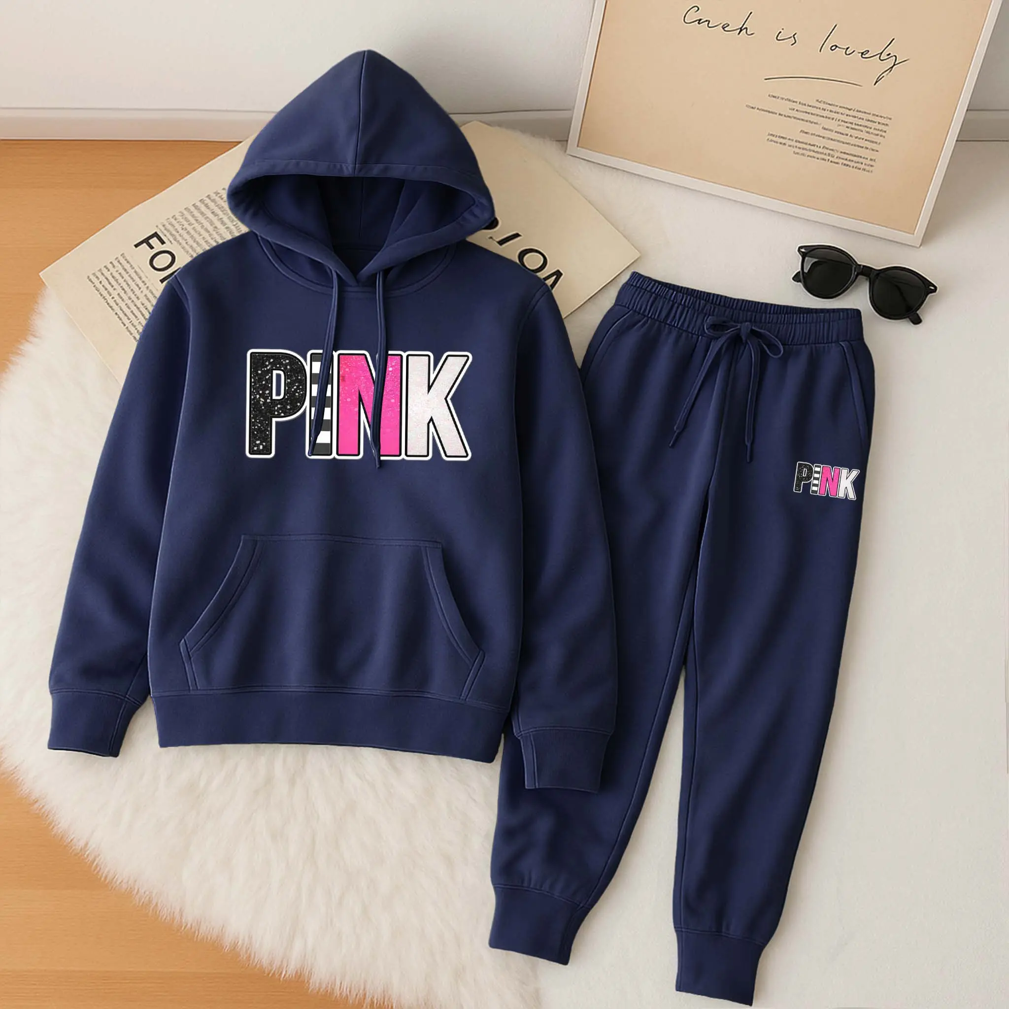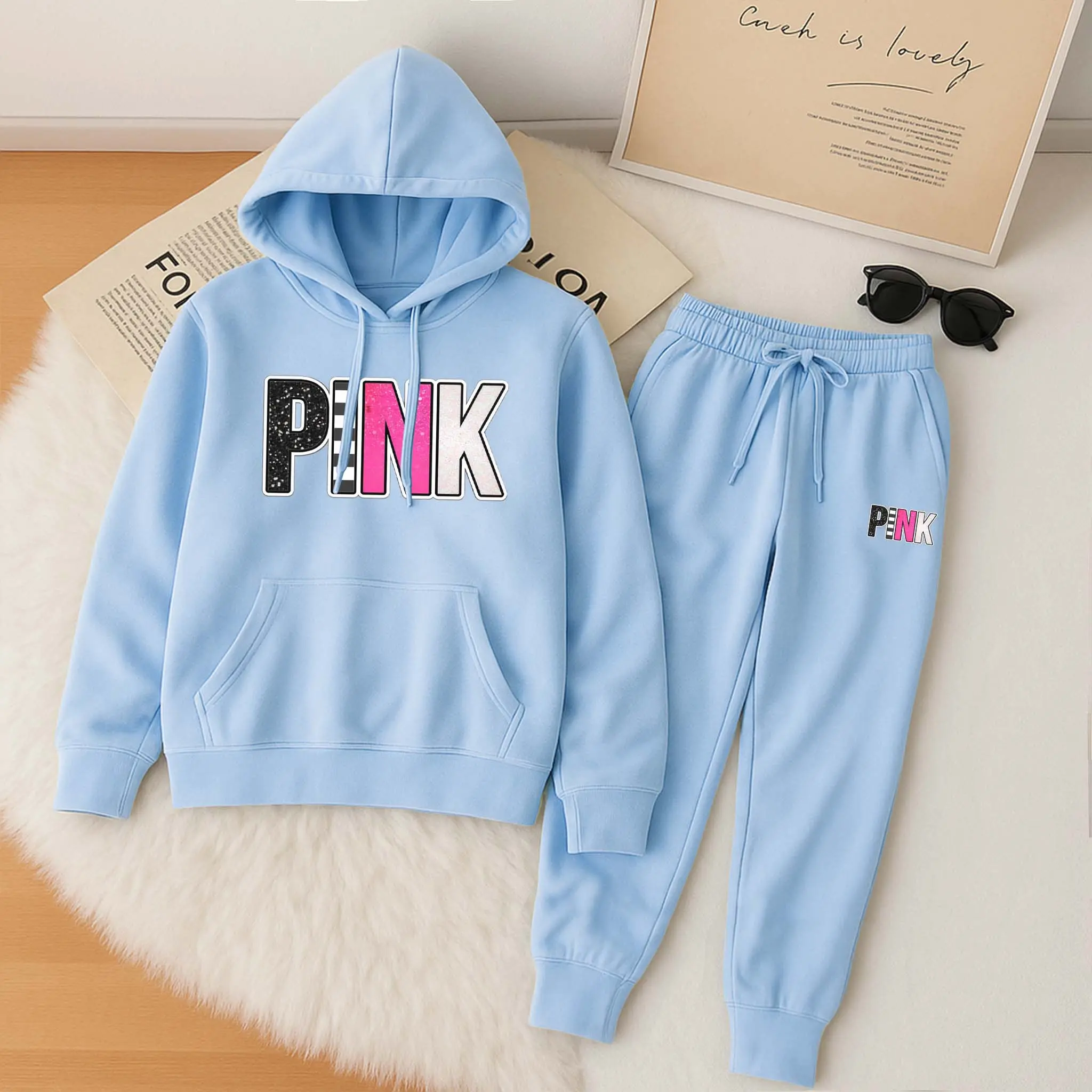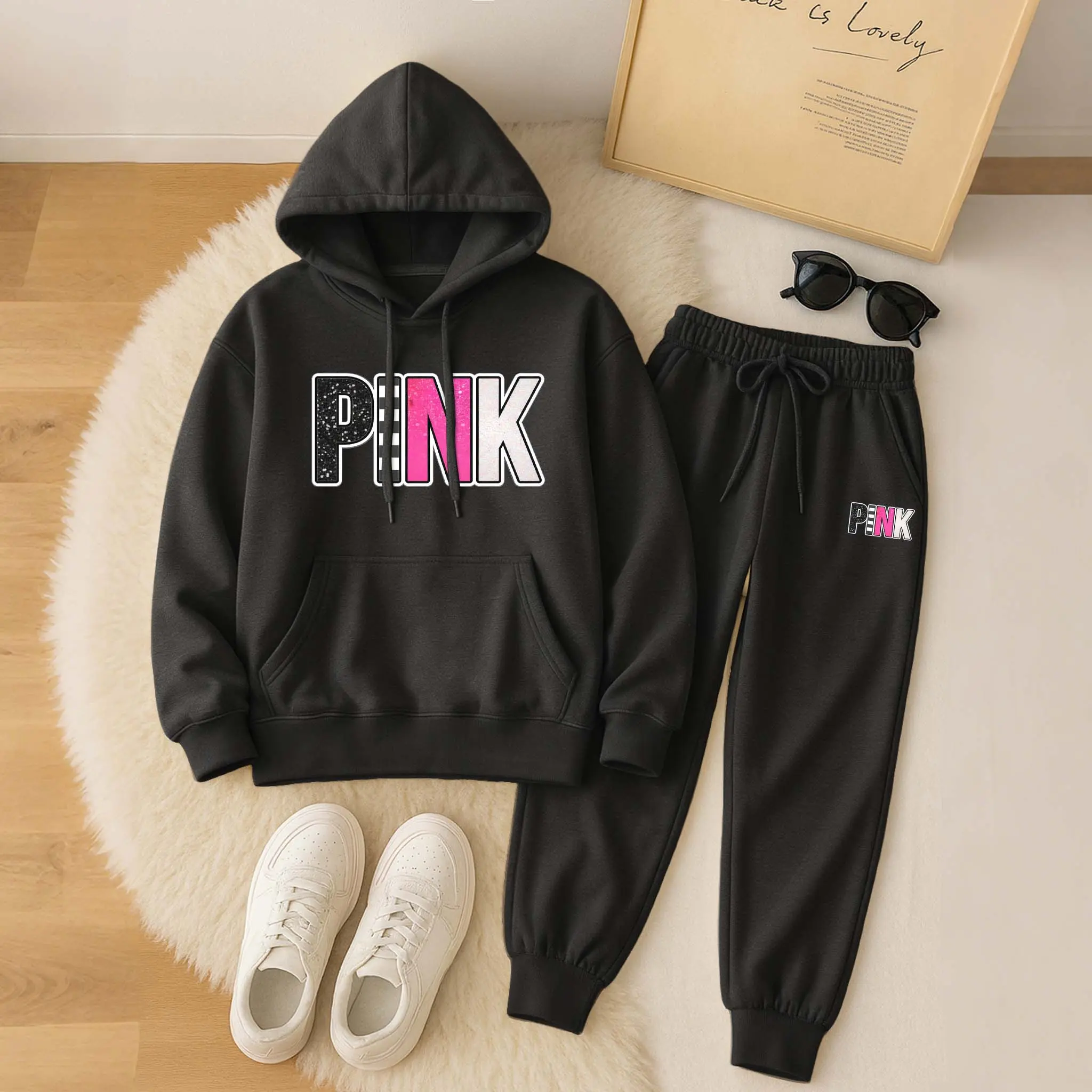 Women's Printed Hoodie & Drawstring Sweatpants Set