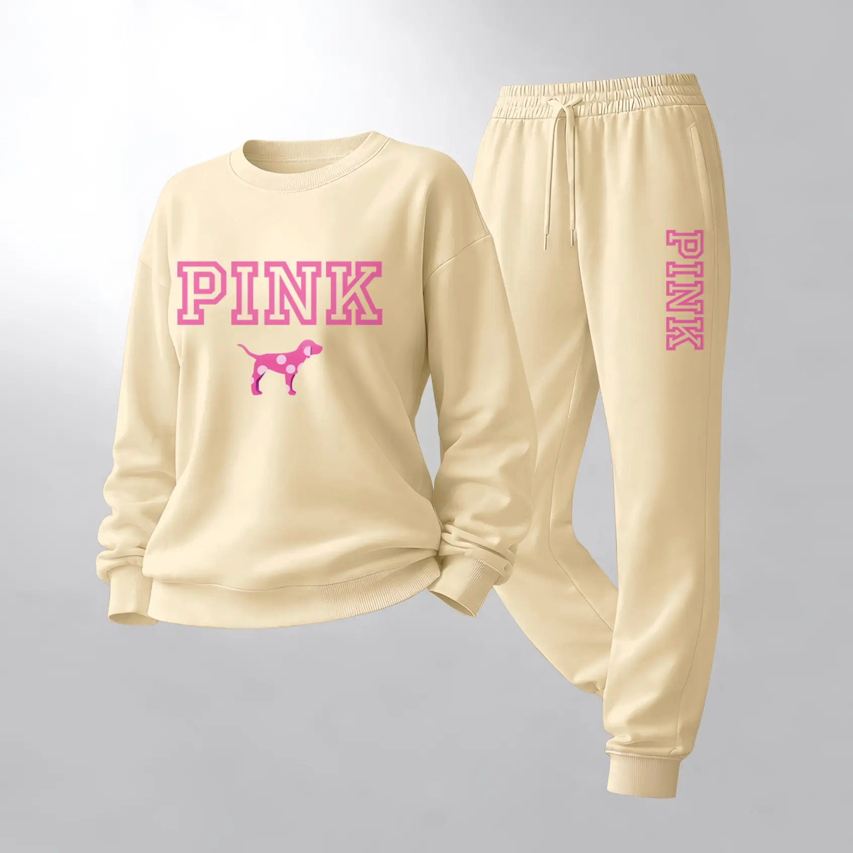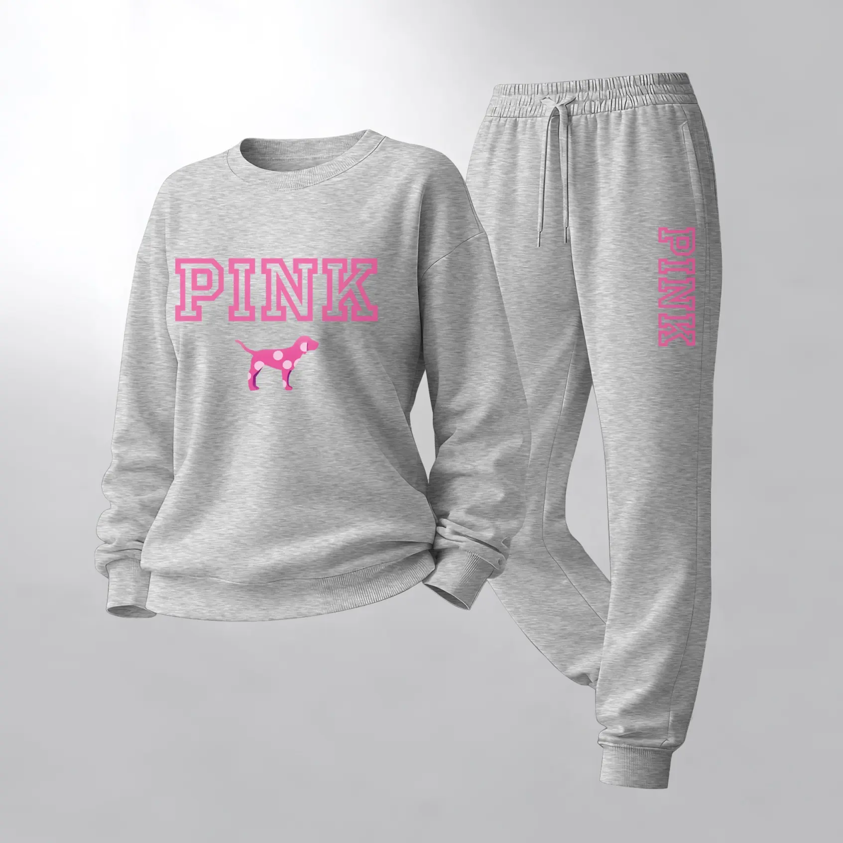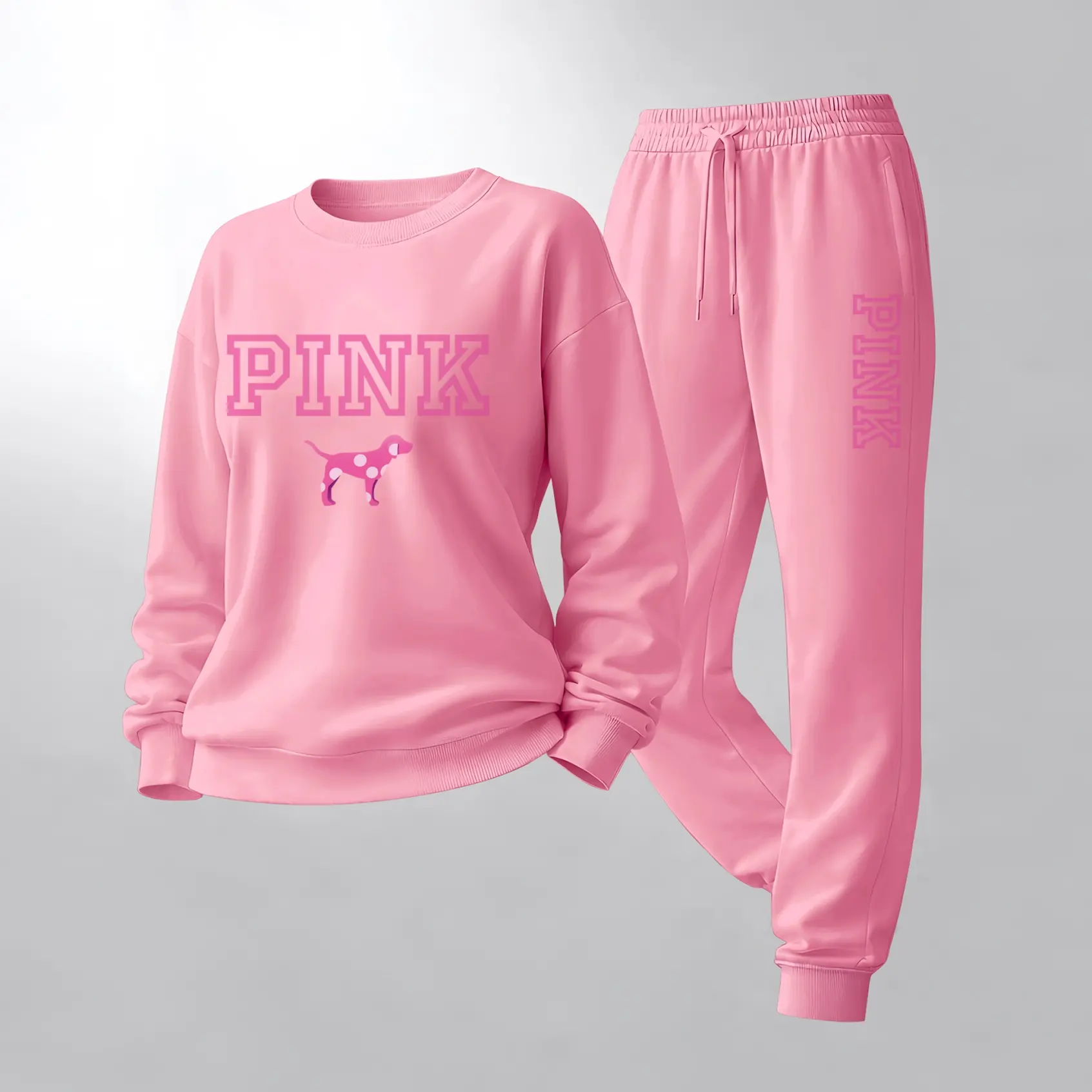 Fits ok but it is NOT an actual pink set. The logo was put on cheap sweats