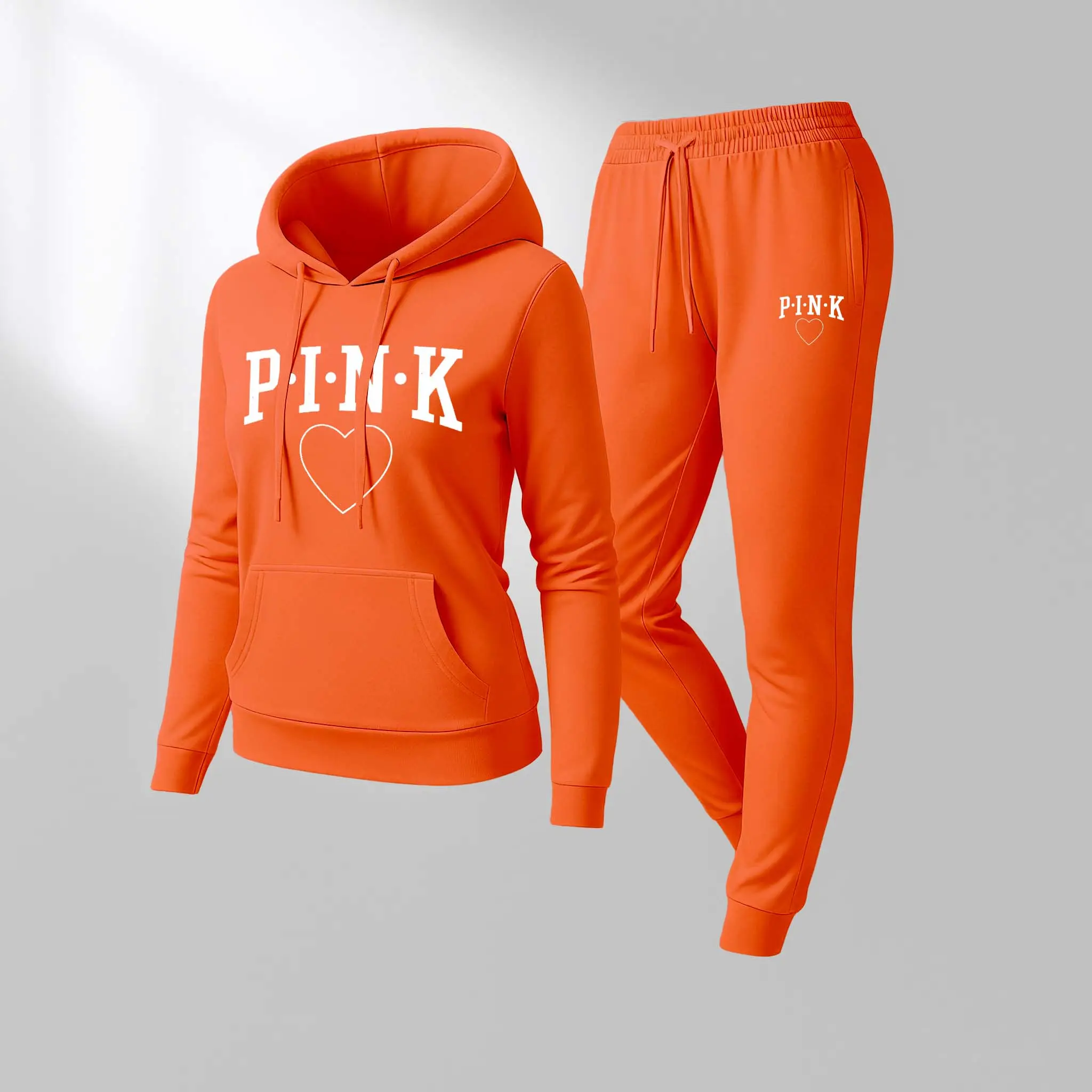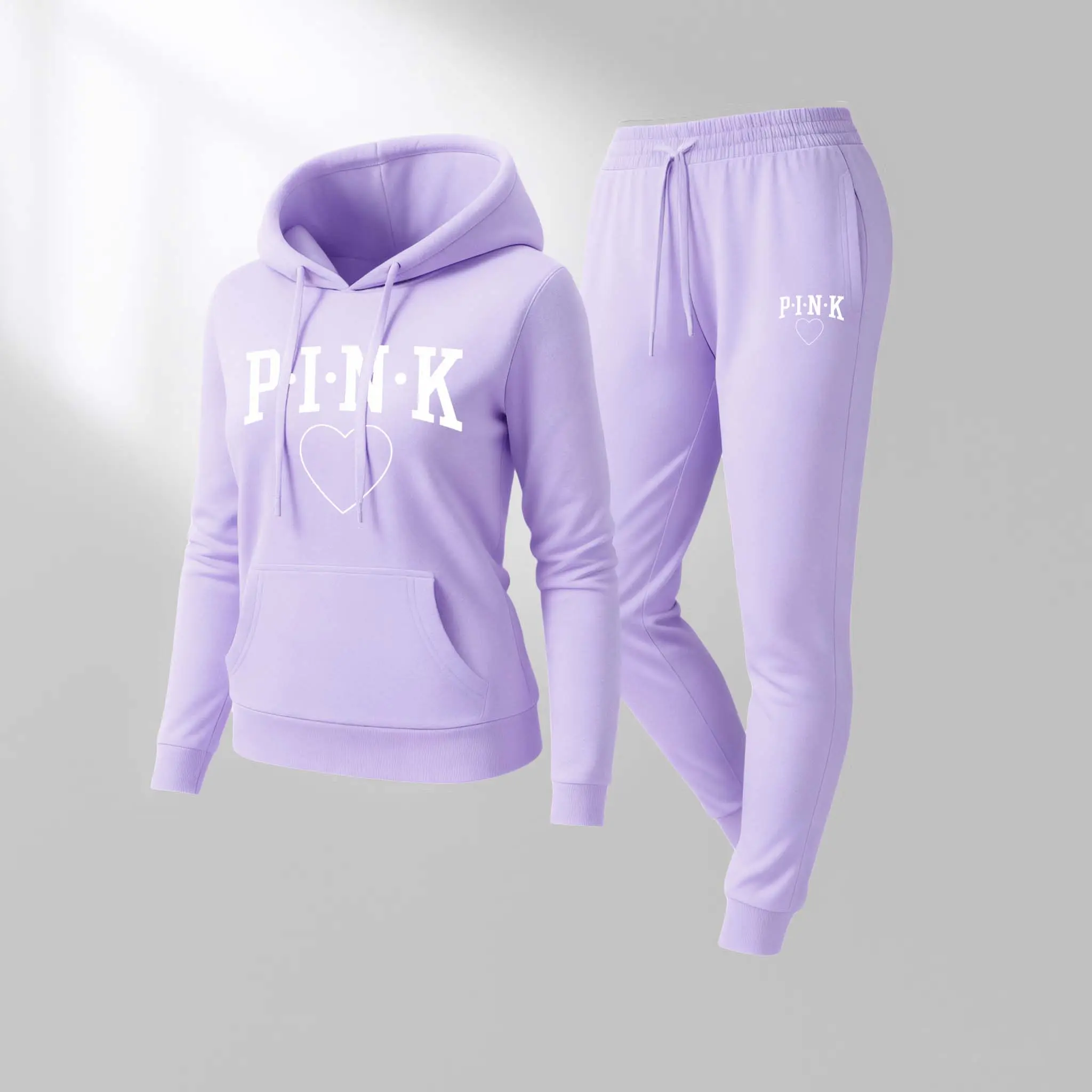 Women's Printed Hoodie & Drawstring Sweatpants Set