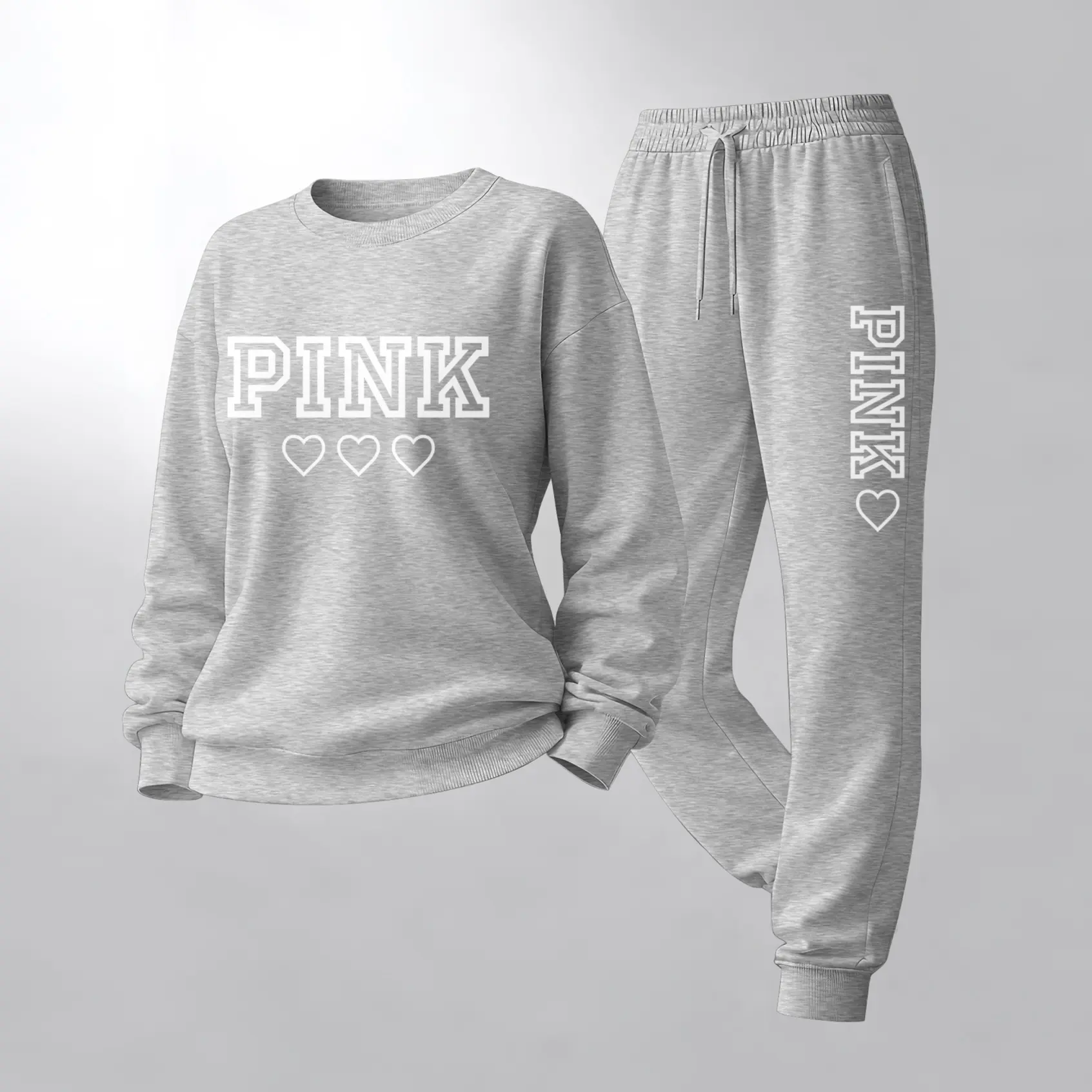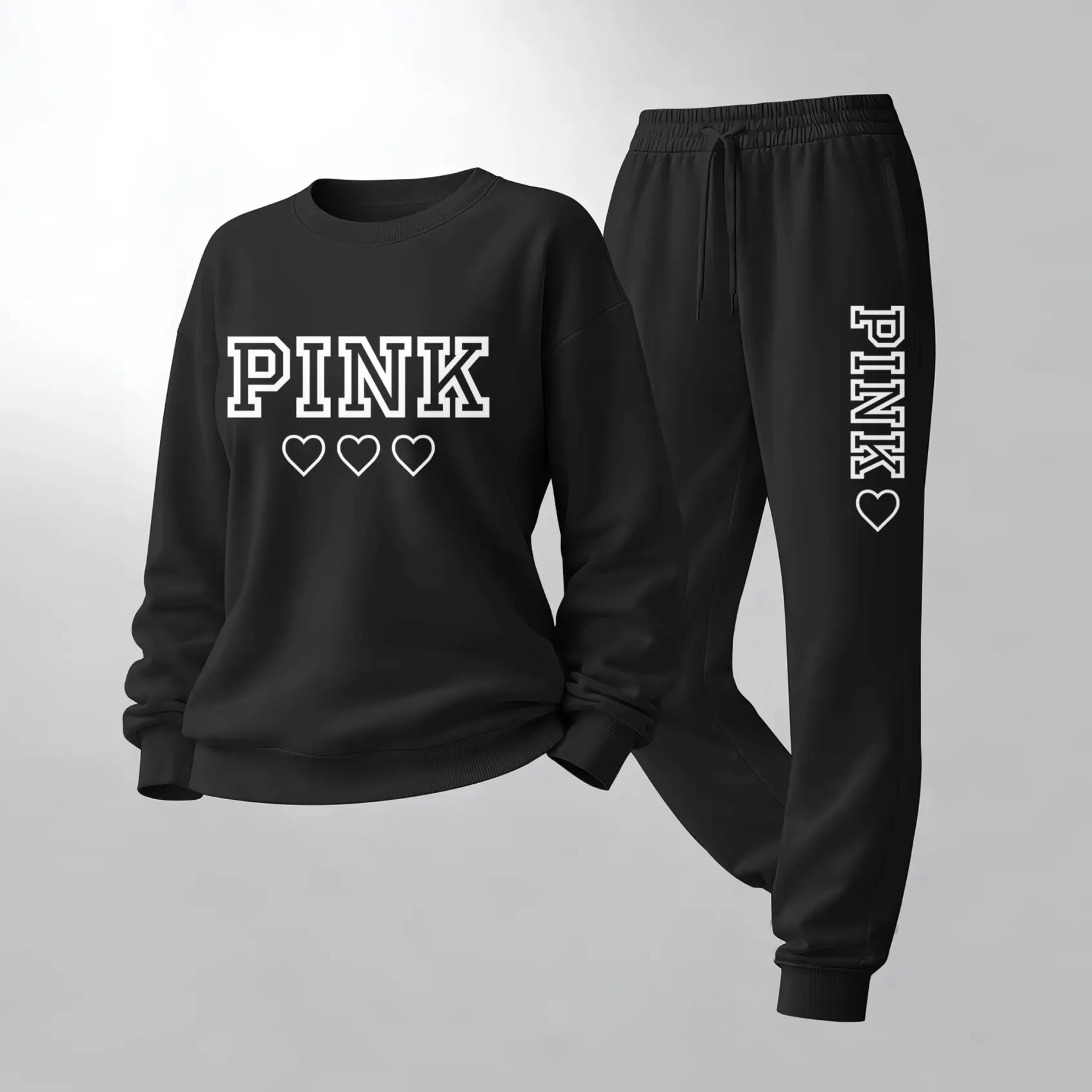 Women's Letter And Heart Print Crewneck Sweatshirt and Drawstring Track Pants Set, Casual Sportswear, Long-Sleeve Round Neck Top and Pants, Suitable for Spring, Autumn and Winter, Everyday Wear