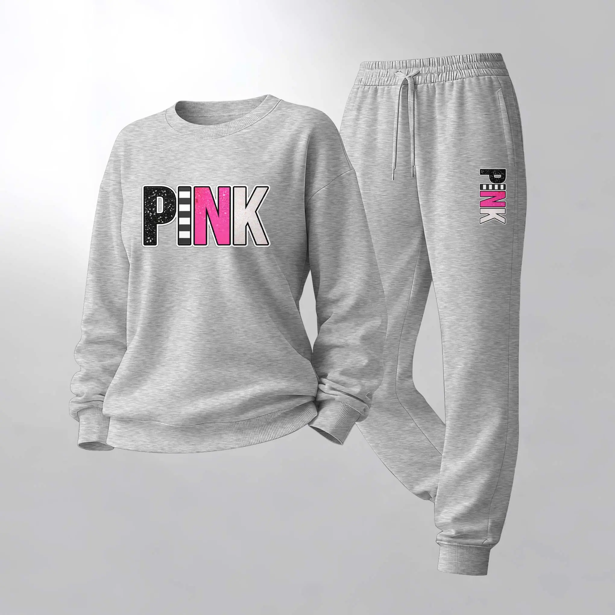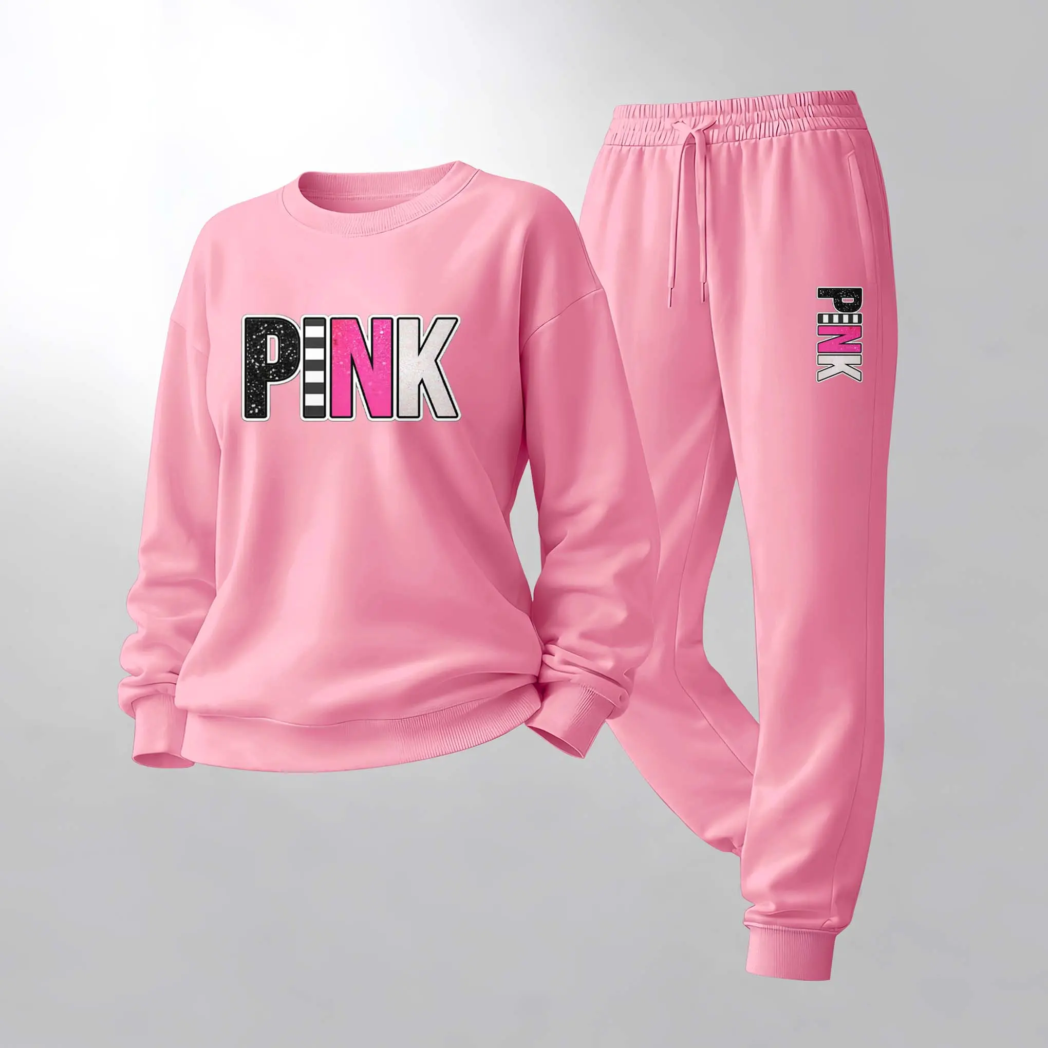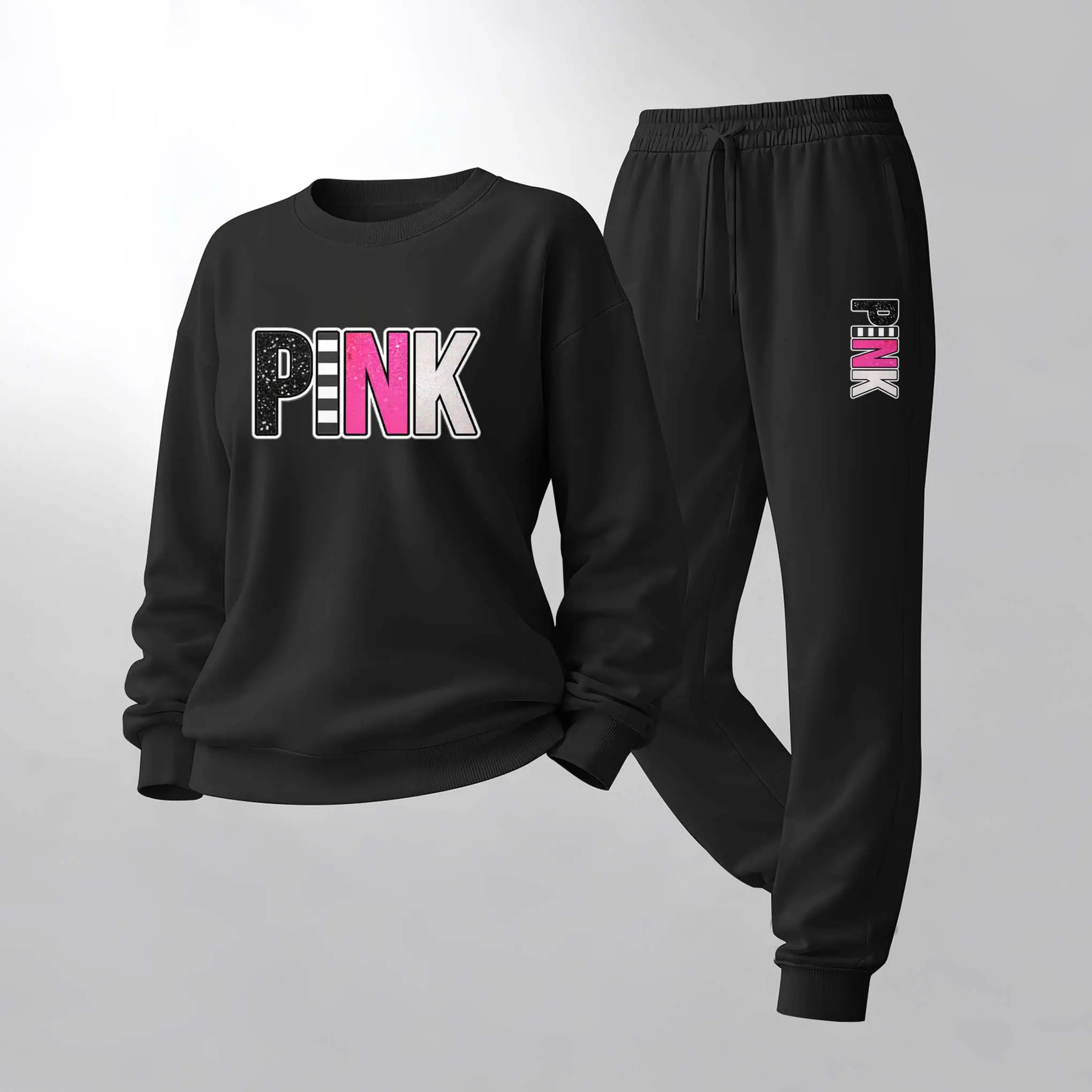 Women's Pink Letter Print Crewneck Sweatshirt and Drawstring Track Pants Set, Casual Sportswear, Long-Sleeve Round Neck Top and Pants, Suitable for Spring, Autumn and Winter, Everyday Wear SpringStatementsWomen's Pink Letter Print Crewneck Sweatshirt and Drawstring Track Pants Set, Casual Sportswear, Long-Sleeve Round Neck Top and Pants, Suitable for Spring, Autumn and Winter, Everyday Wear SpringStatementsWomen's Pink Letter Print Crewneck Sweatshirt and Drawstring Track Pants Set, Casual Sportswear, Long-Sleeve Round Neck Top and Pants, Suitable for Spring, Autumn and Winter, Everyday Wear SpringStatements