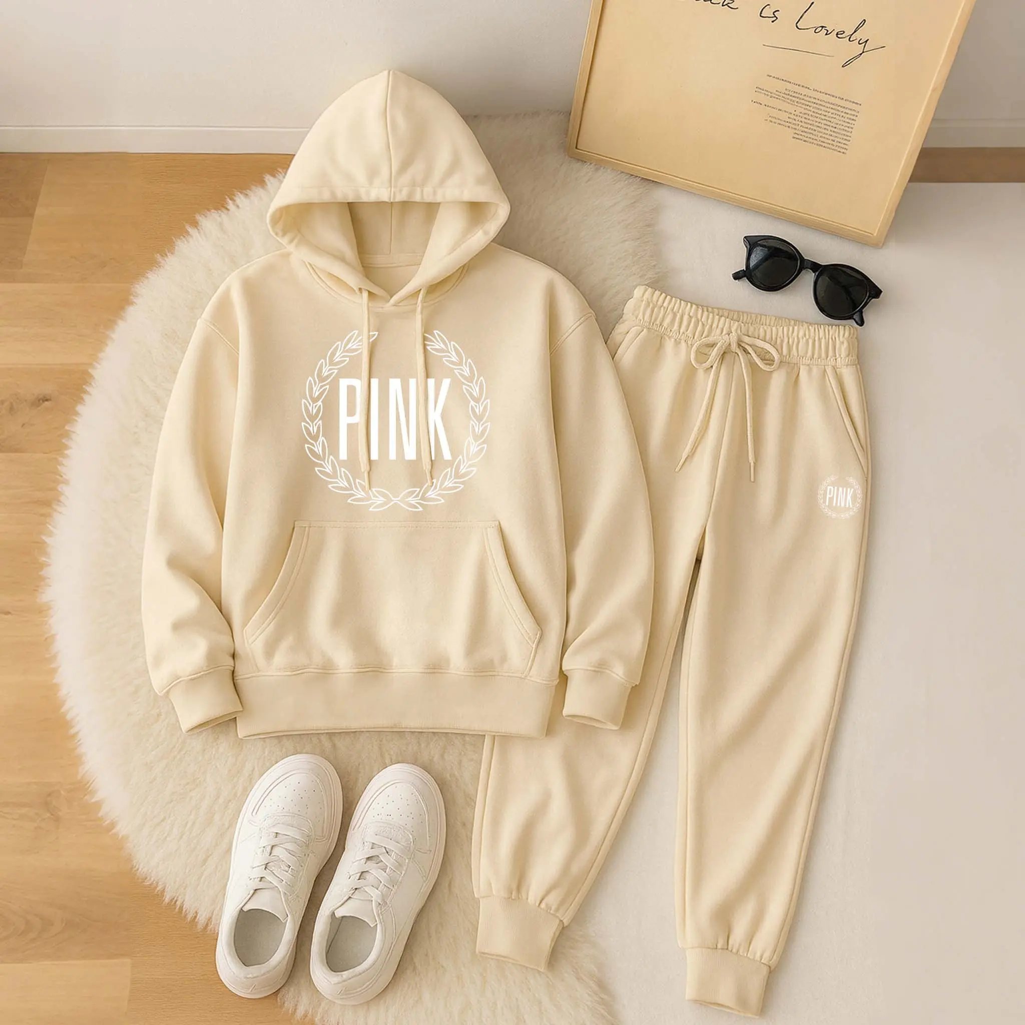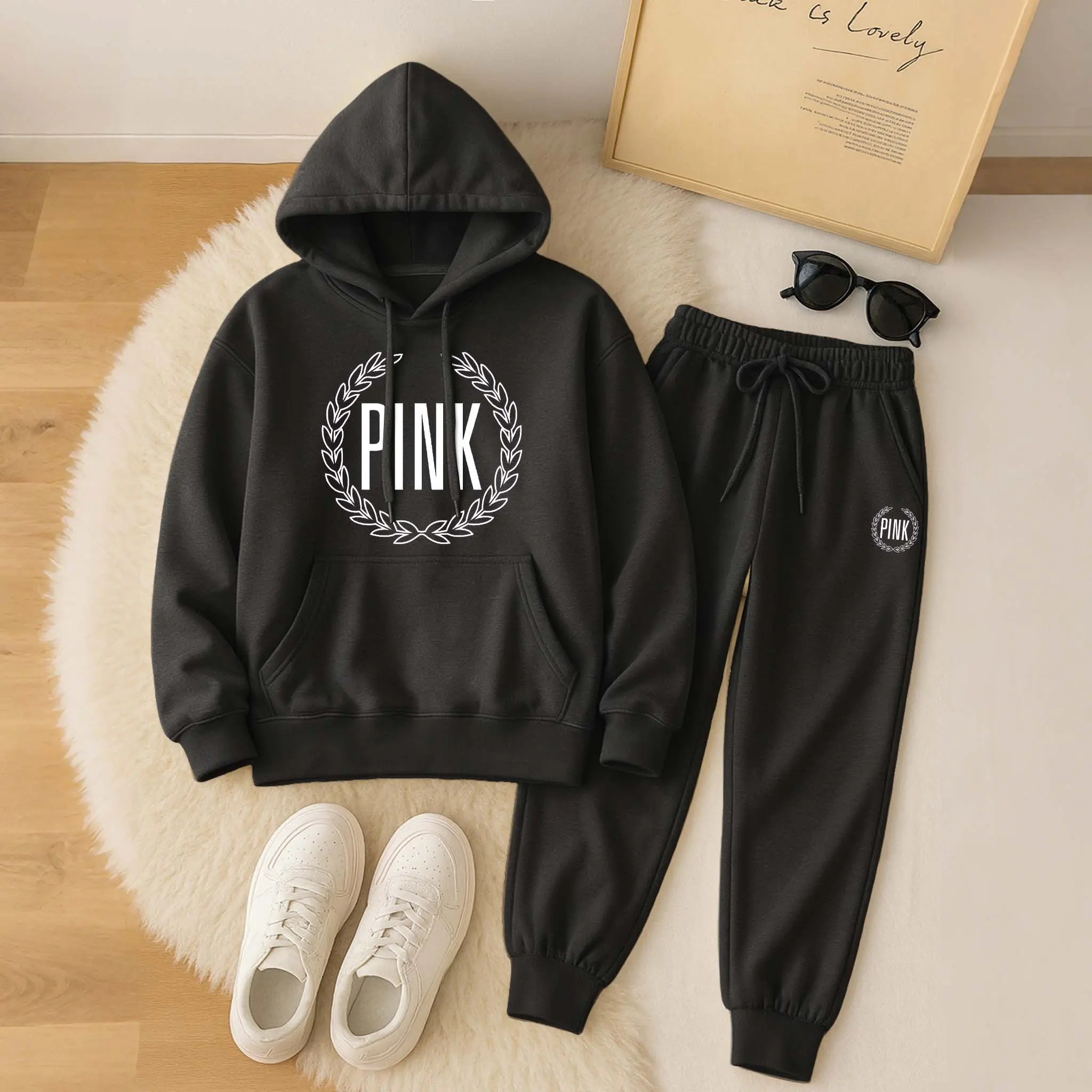 Printed Hoodie & Drawstring Sweatpants Set