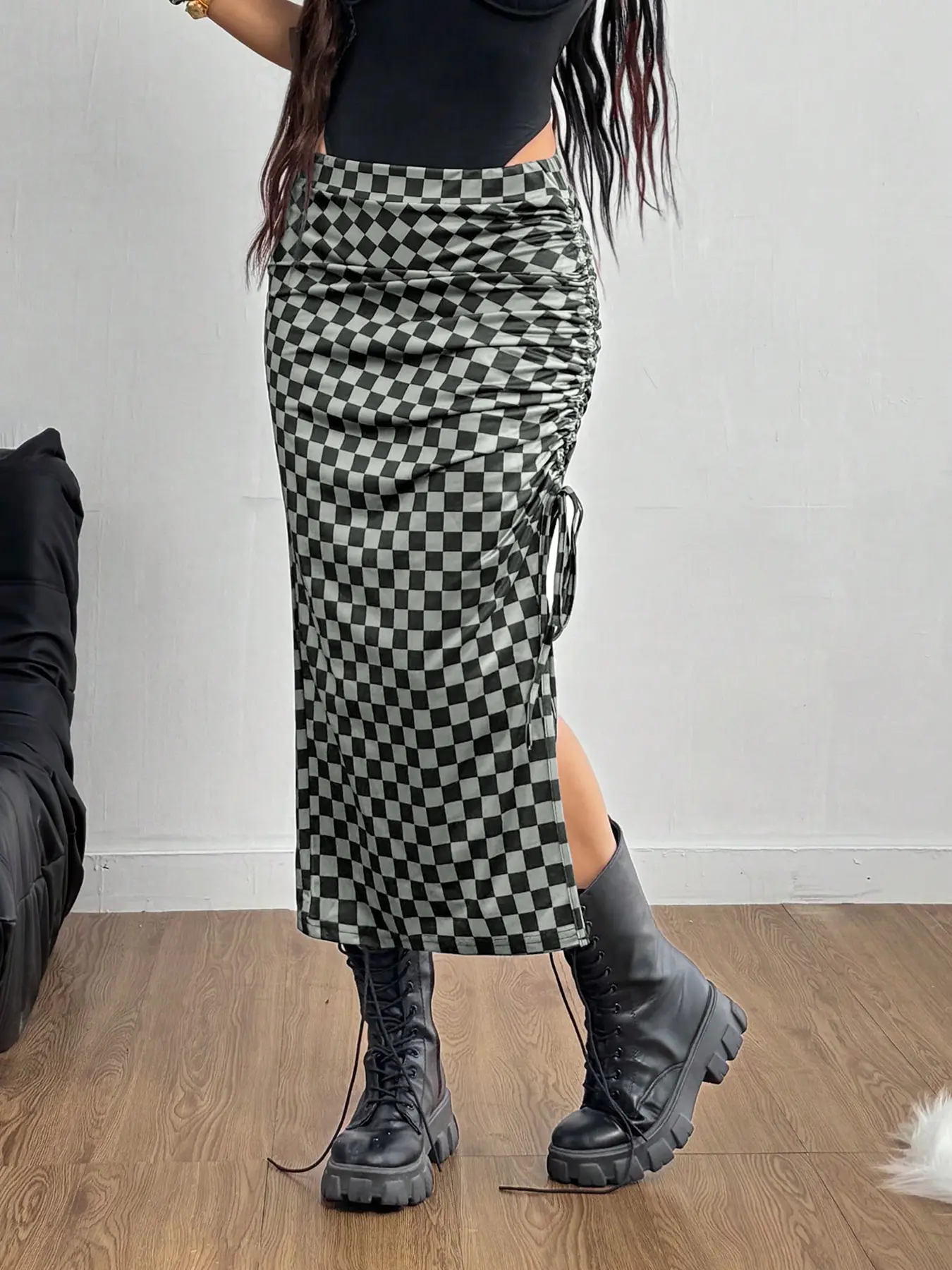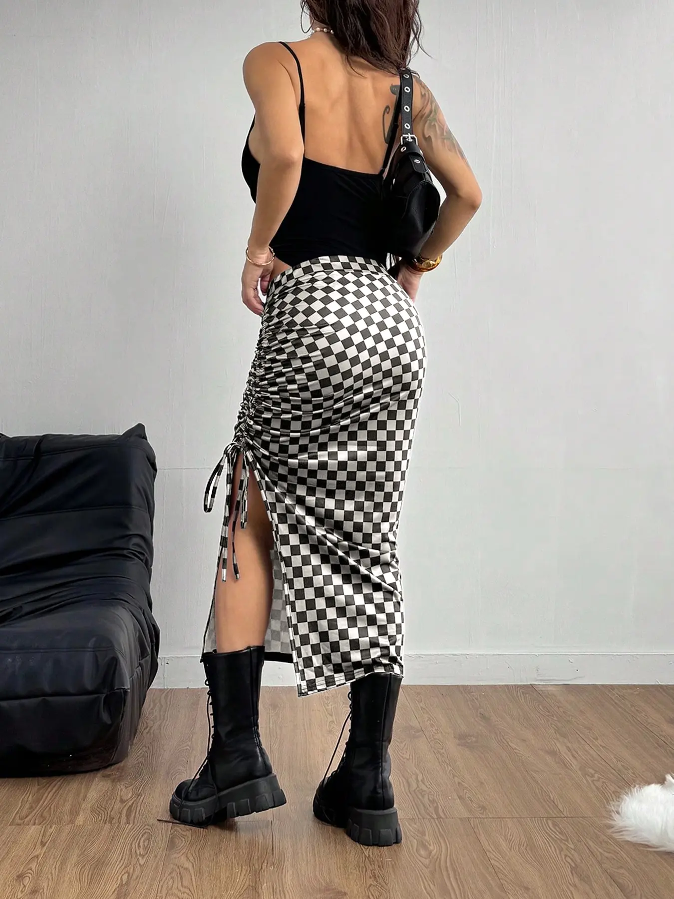 ◦ Checkerboard drawstring midi skirt, retro and fashionable, unique design makes your outfit stand out! 😋#TikTokShopBlackFriday #TikTokShopCyberMonday #spotlightfinds #Checkerboard #MidiSkirt
