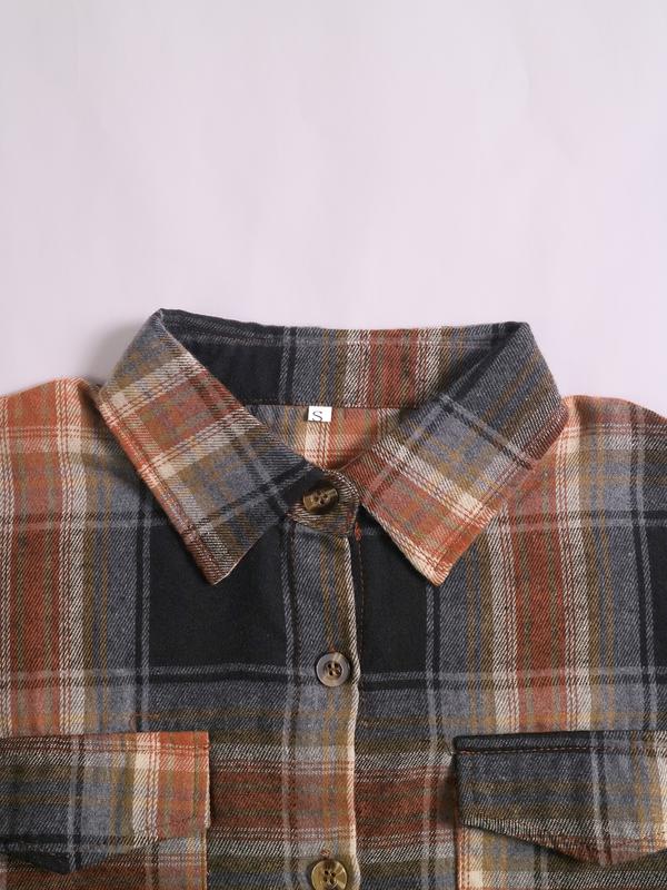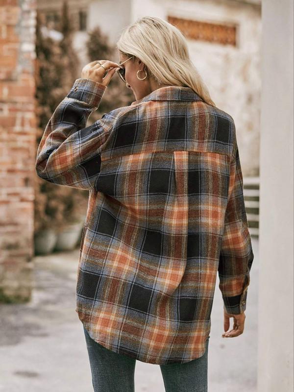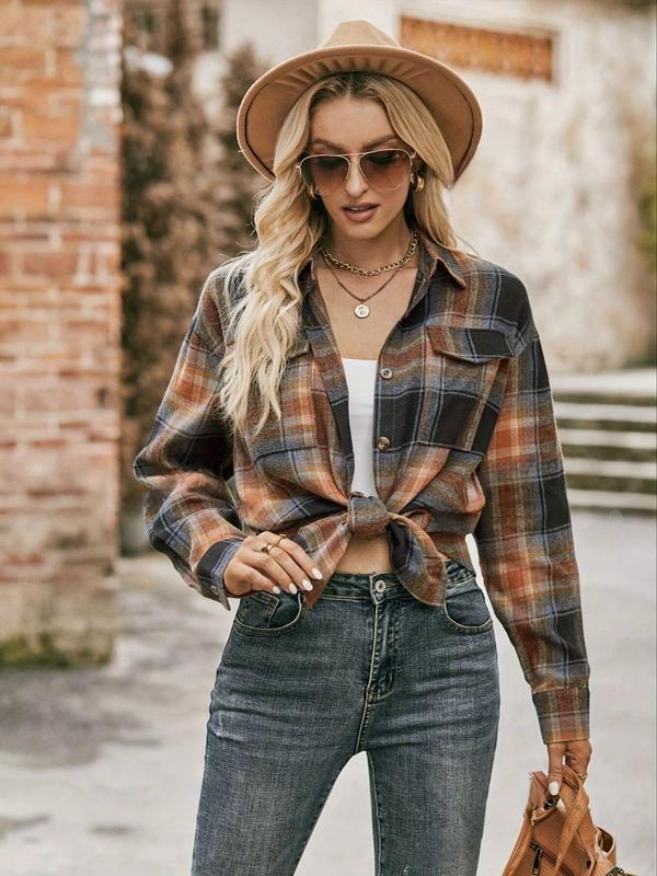 Women's Plaid Shirt, Casual Long Sleeve Button Front Top, All-Season Wearable Blouse, Stylish Female Outerwear Clothing