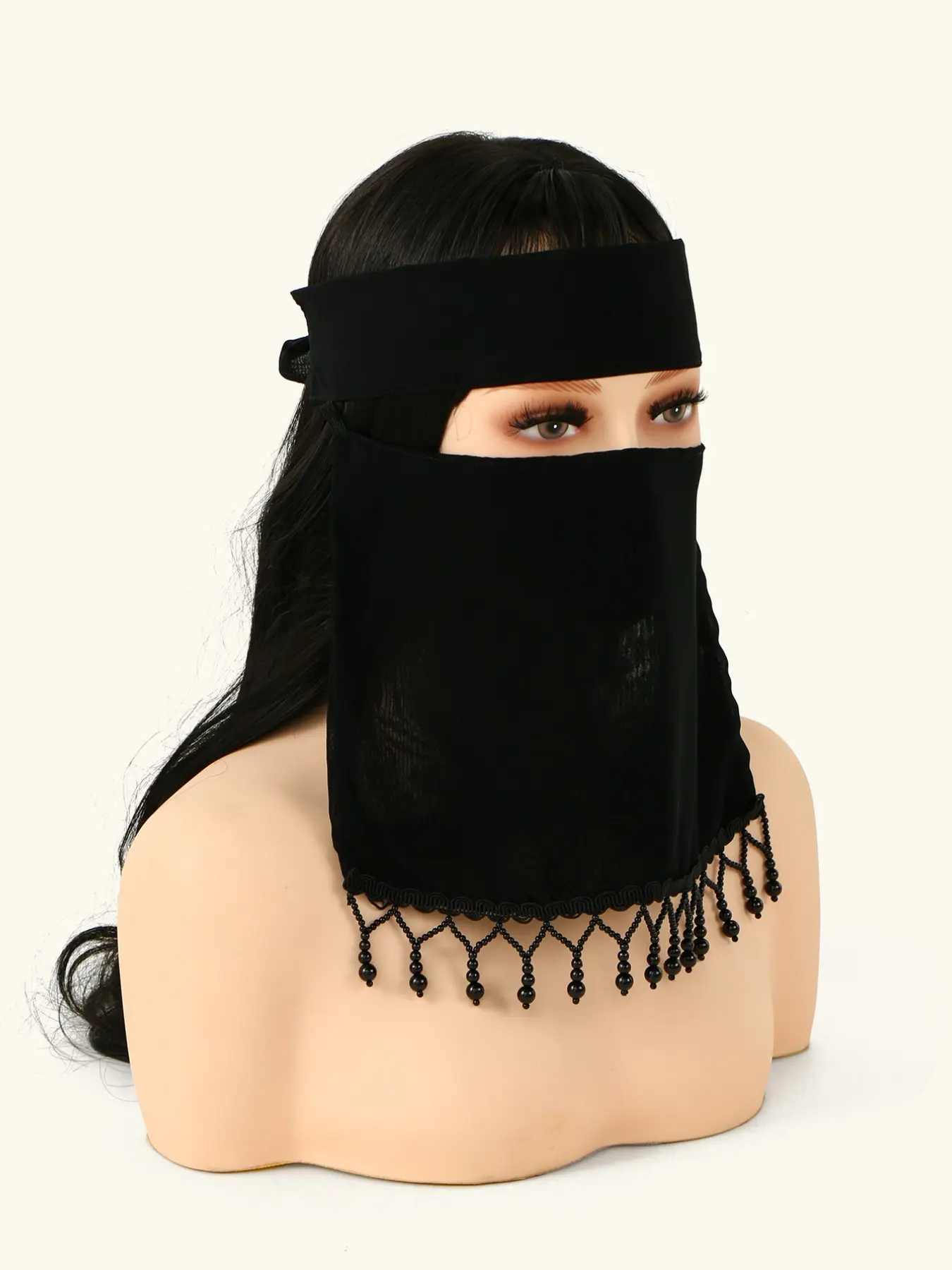 Women's Plain Beaded Fringe Mask with Elastic Band, Daily Use Headscarf, Sparkling Casual Hijab, Niqab, 1pc Ladies Face Covering