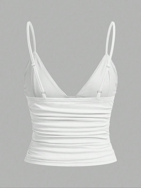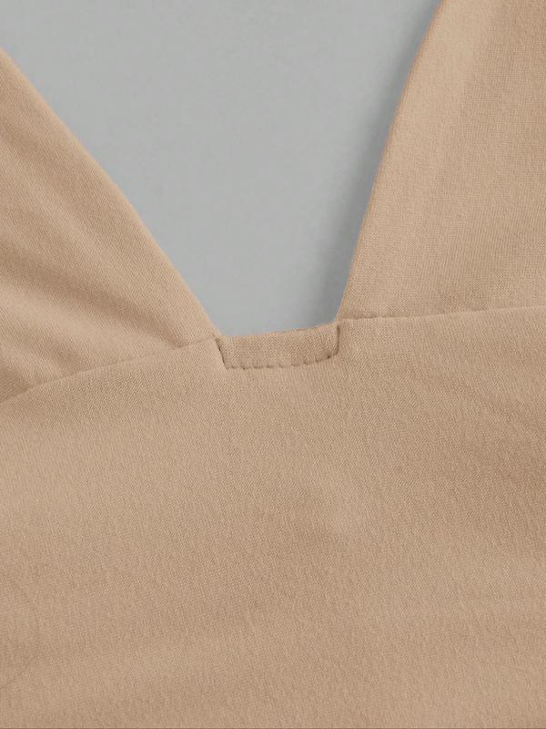 Women's Plain Deep V Neckline Slim-Fitting Backless Top, Perfect for Daily Wear & Versatile Styling, Comfortable Everyday Essential