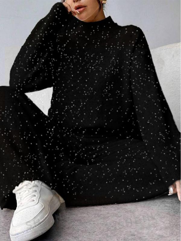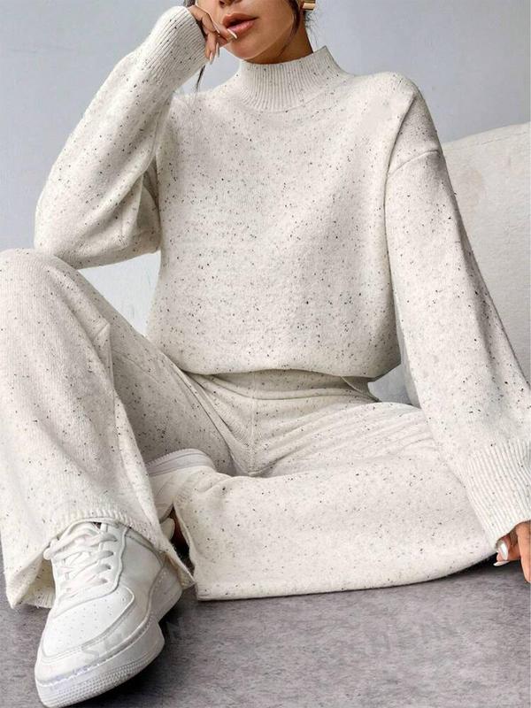 Women's Plain Drop Shoulder Sweater & Wide Leg Pants Set, Casual Cozy Knitwear for Fall & Winter, Daily Outdoor Wear #cozyloungewearset #womens2piecesets #loungewearsets #womenssweats #womensjumpsuit #womensclothingtiktokshop #plussizesweats #wooljumpsuit #activewearset #jumpsuitset