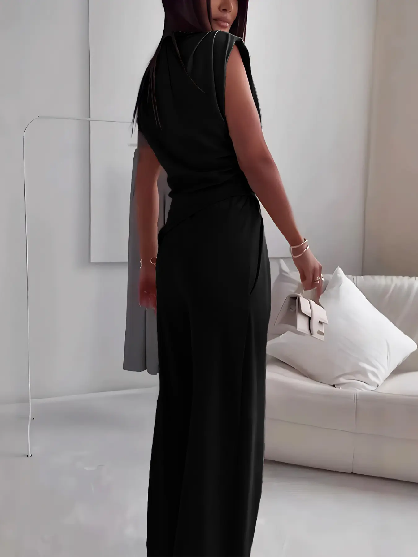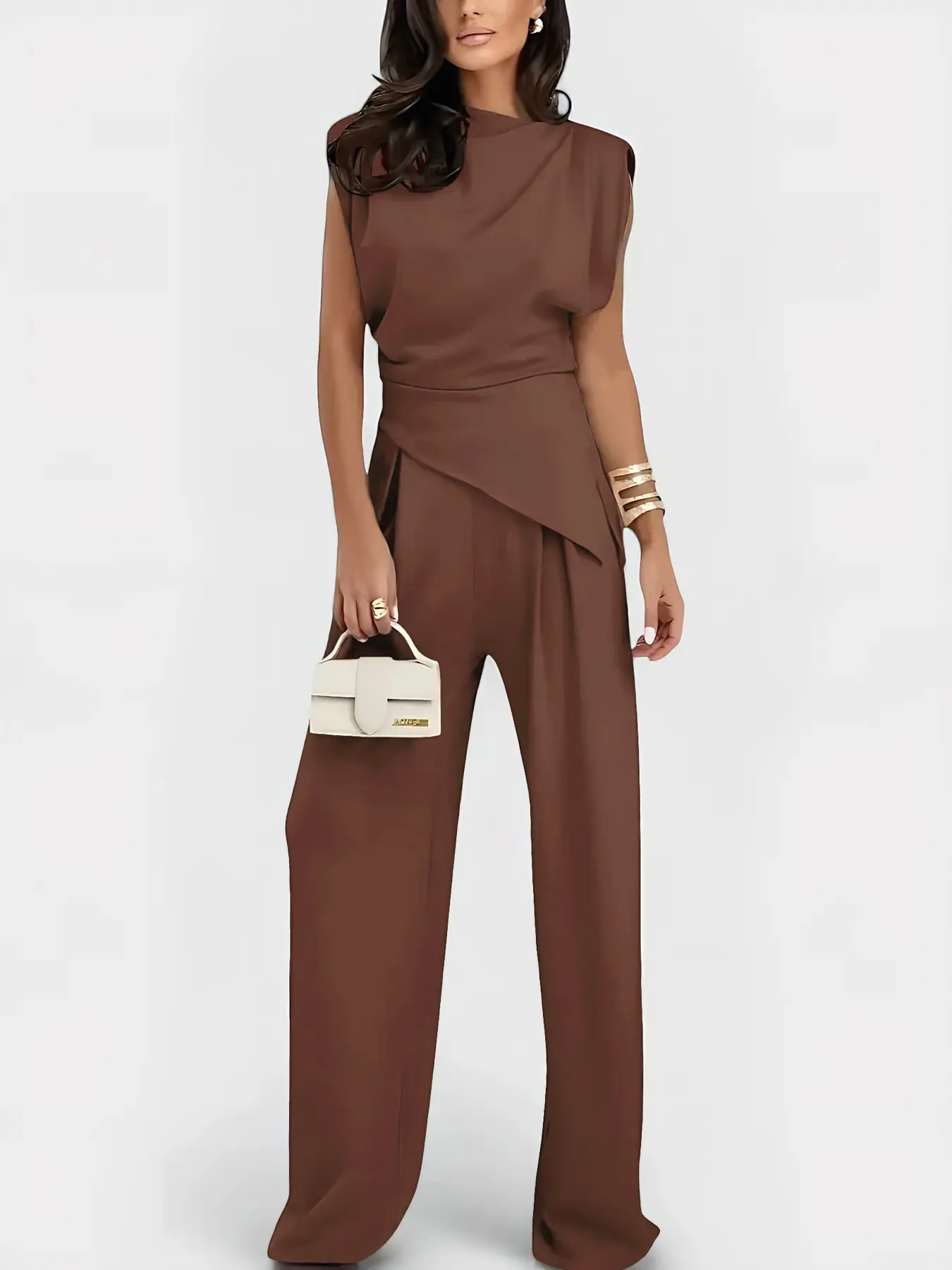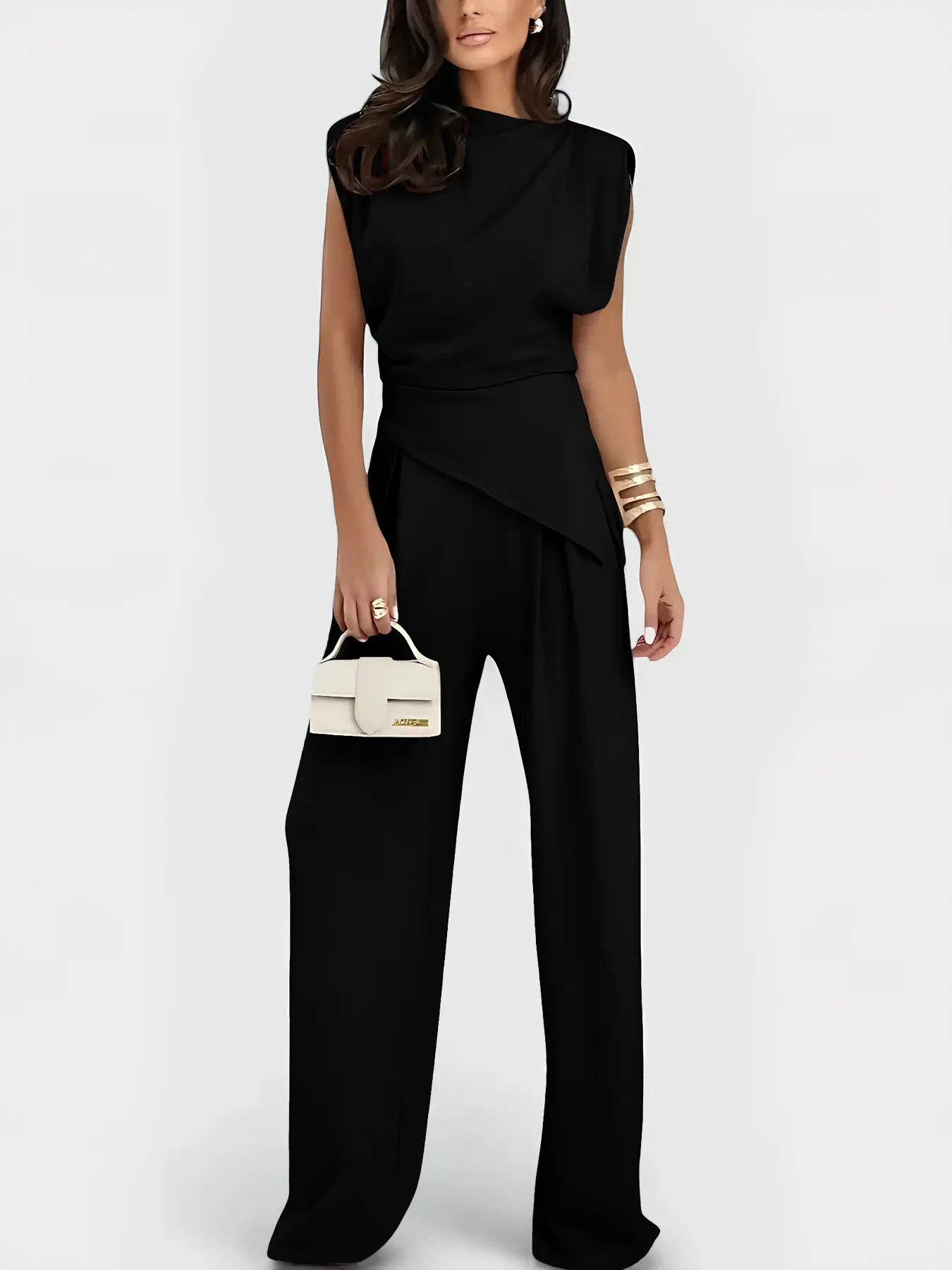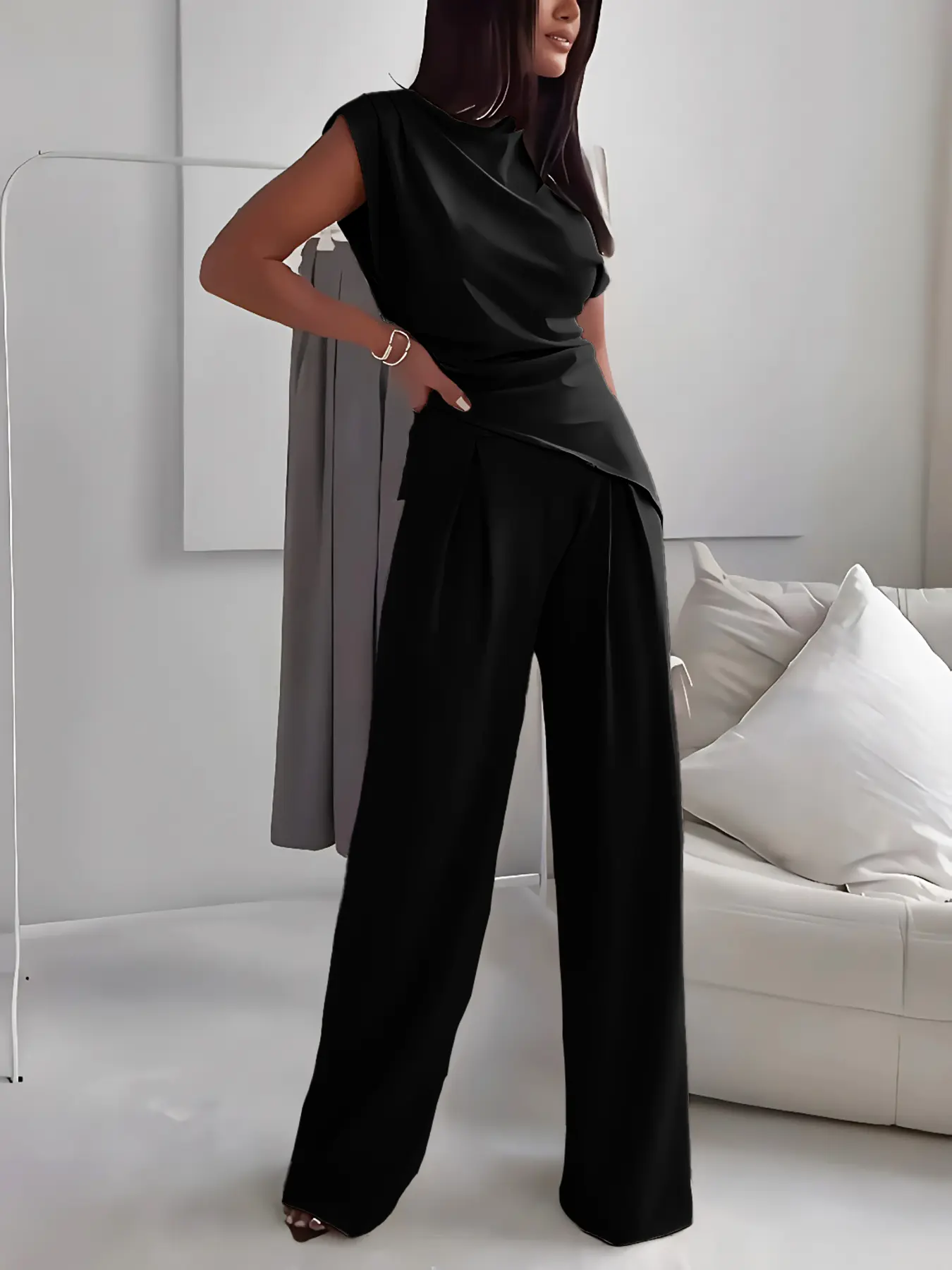 Women's Plain Elegant Asymmetrical Hem Sleeveless Top & Long Pants Set, Stylish Casual for Daily Wear, Comfortable and Trendy Look #womens2piecesets #zaraoutfit #womenssweatshirtset #sweatsuitset #flatteringtwopieceset #jumpsuitset #backlessjumpsuit #womensjumpsuit #newyearseveoutfitwithjeans #longsleevejumpsuit