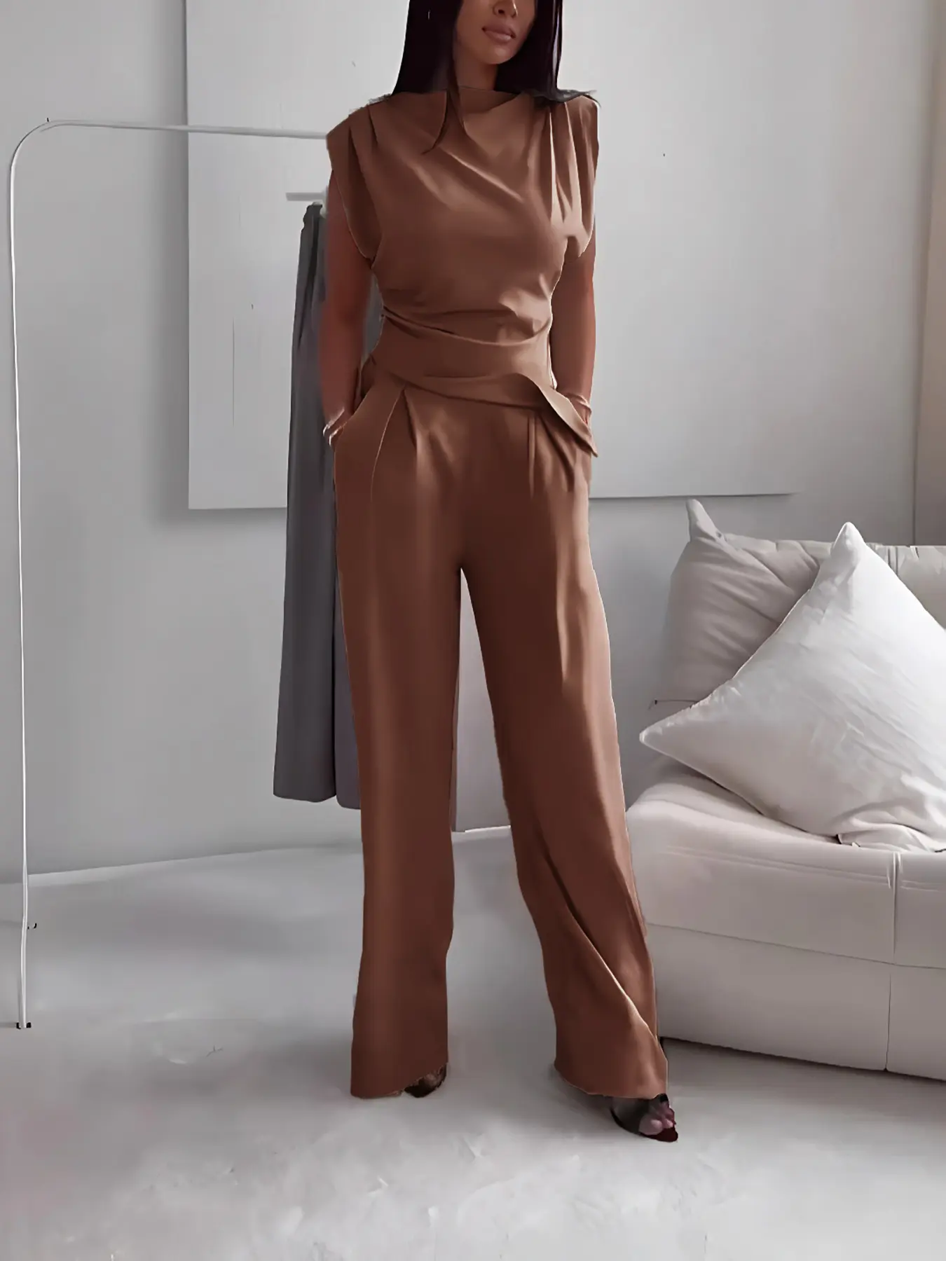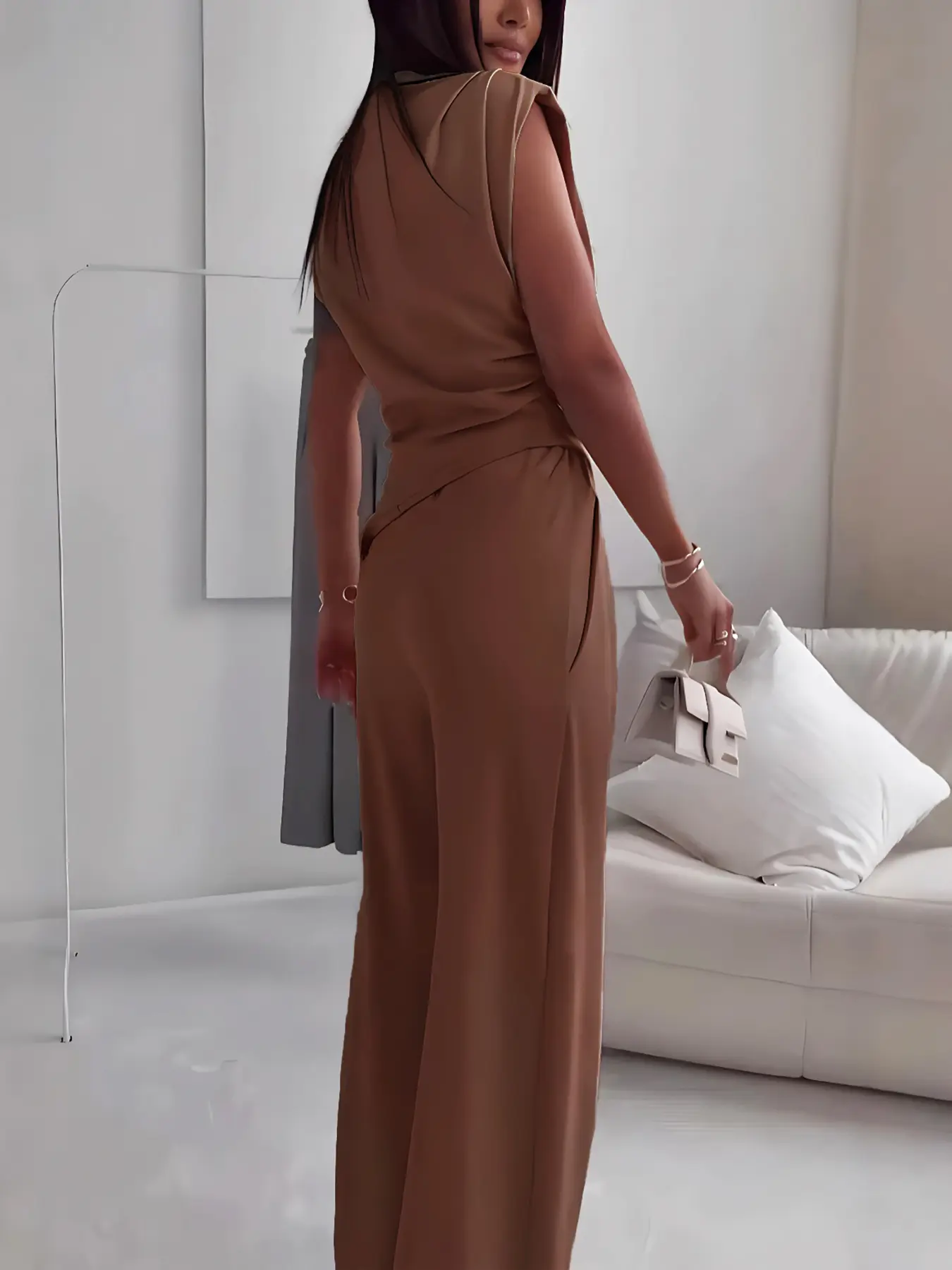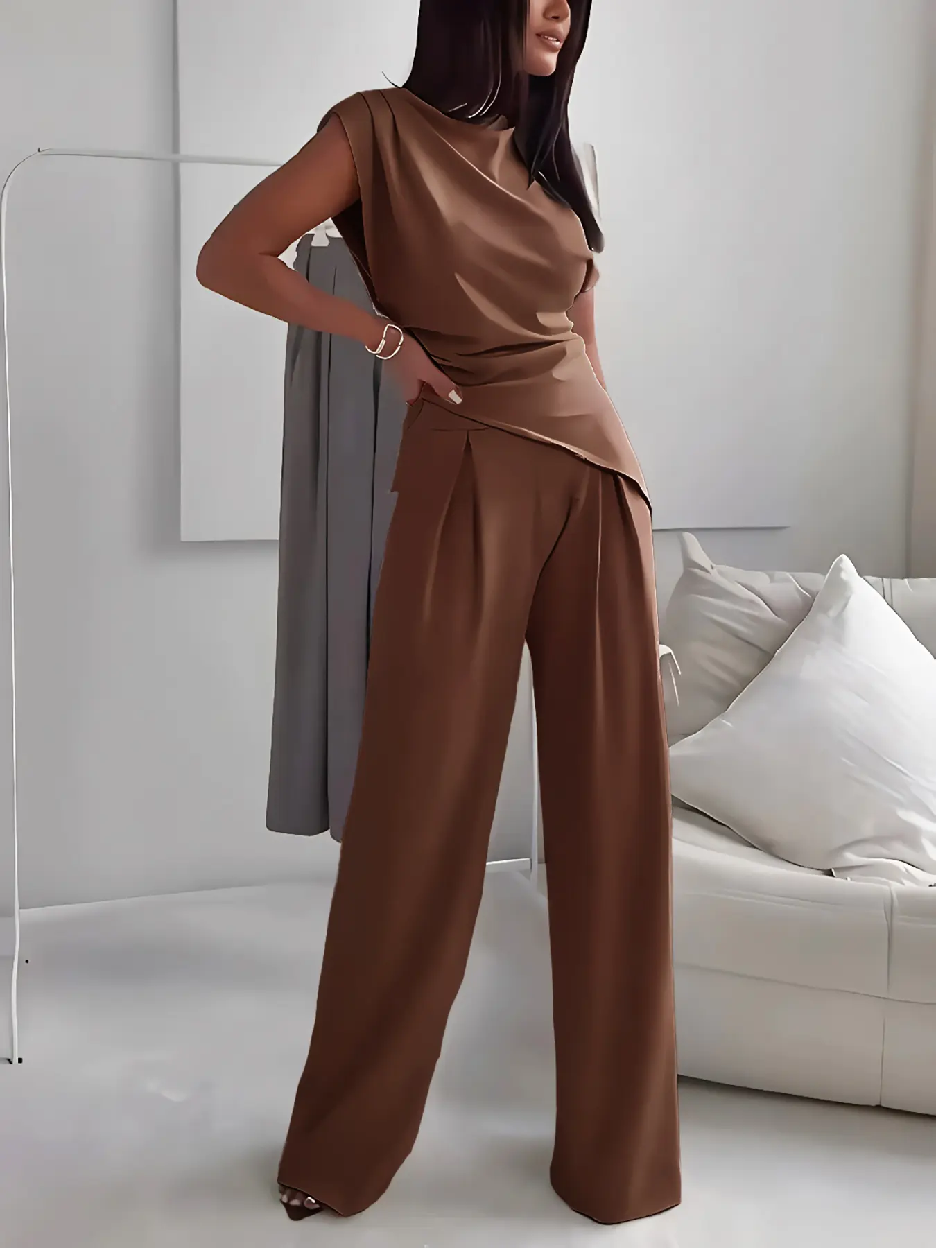 5. Women's Plain Elegant Asymmetrical Hem Sleeveless Top Long Pants Set, Stylish Casual for Daily Wear, Comfortable, Trendy and Slim