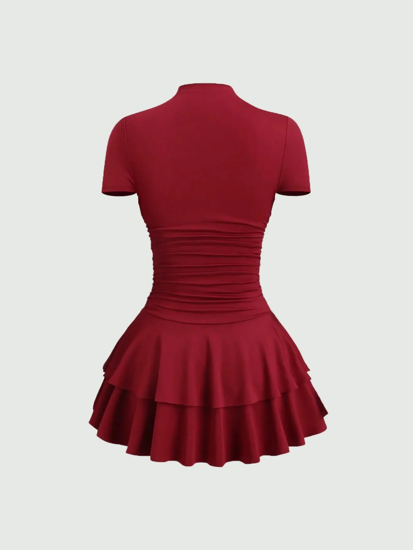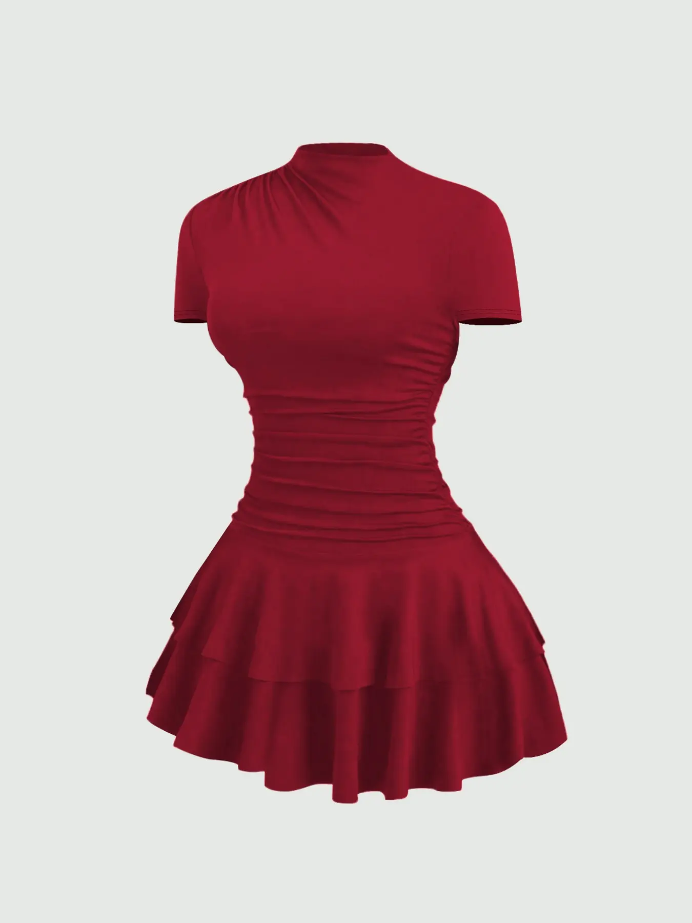 #reddress #rufflehem #mockneck #stretchy