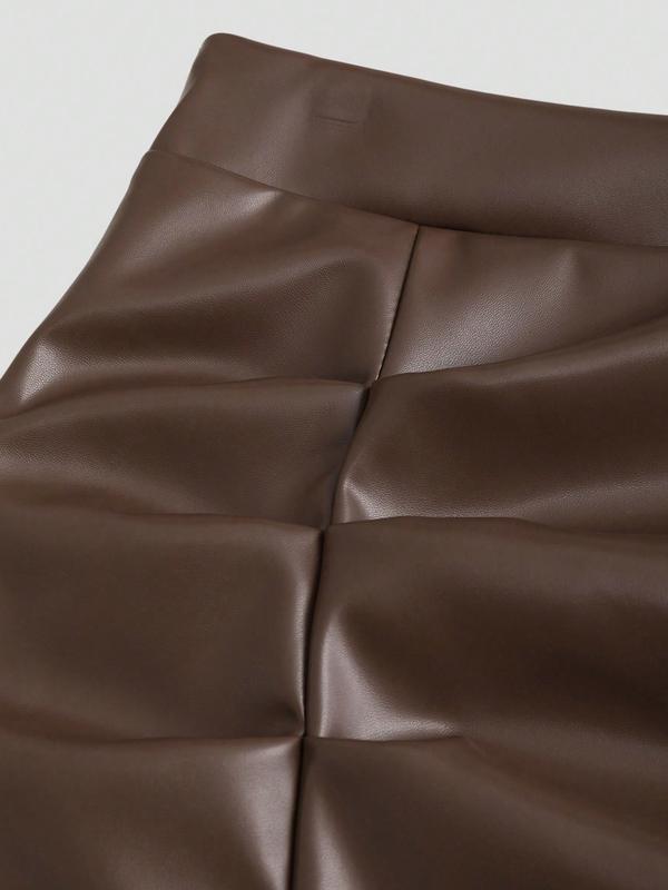 Women's High-Waisted Pleated Mini Skirt PU/Suede Leather Vintage Retro Y2K Side-Slit Flared A-Line for Spring Fall Brazilian Elegant Skirt Valentine's Day Date & Party