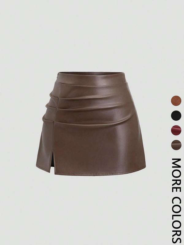 5. Women's High-Waisted Pleated Mini Skirt PU/Suede Leather Vintage Retro Y2K Side-Slit Flared A-Line for Spring Fall Brazilian Elegant Skirt Valentine's Day Date & Party
