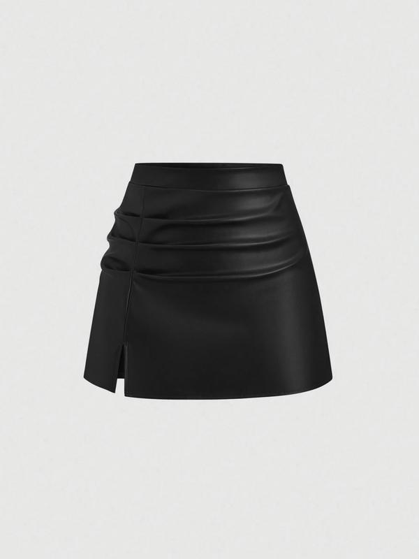 Women's High-Waisted Pleated Mini Skirt PU/Suede Leather Vintage Retro Y2K Side-Slit Flared A-Line for Spring Fall Brazilian Elegant Skirt  Valentine's Day Date & Party