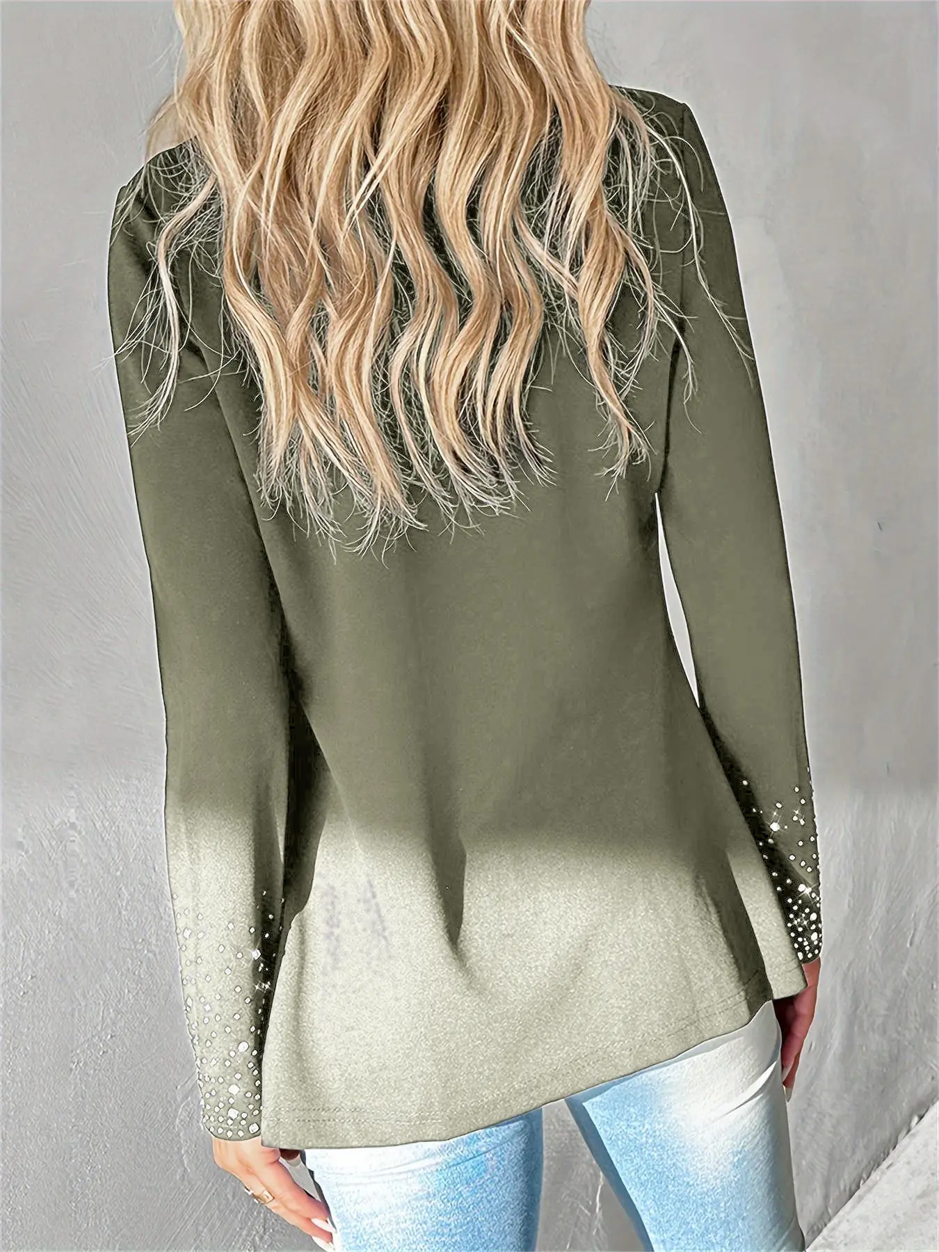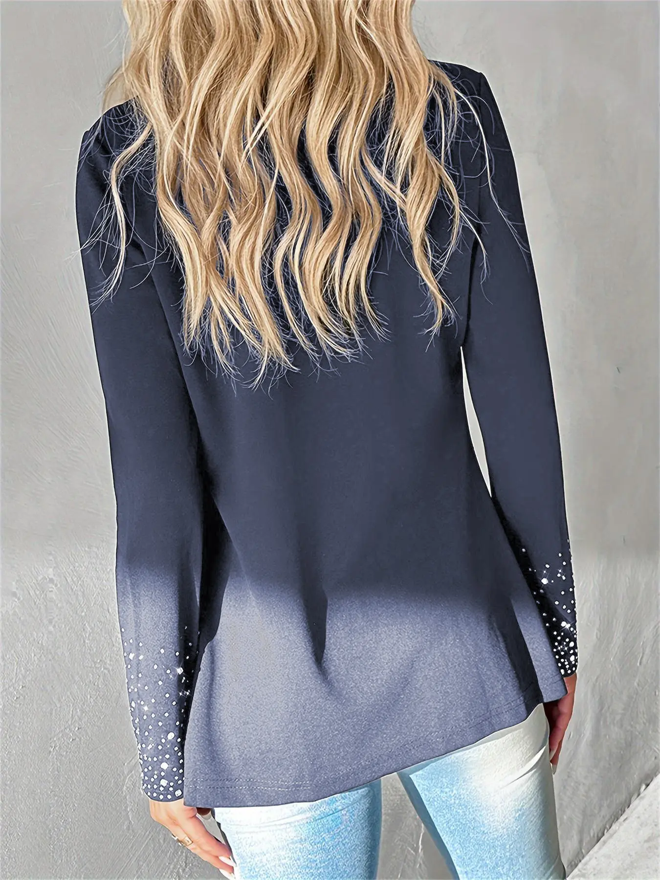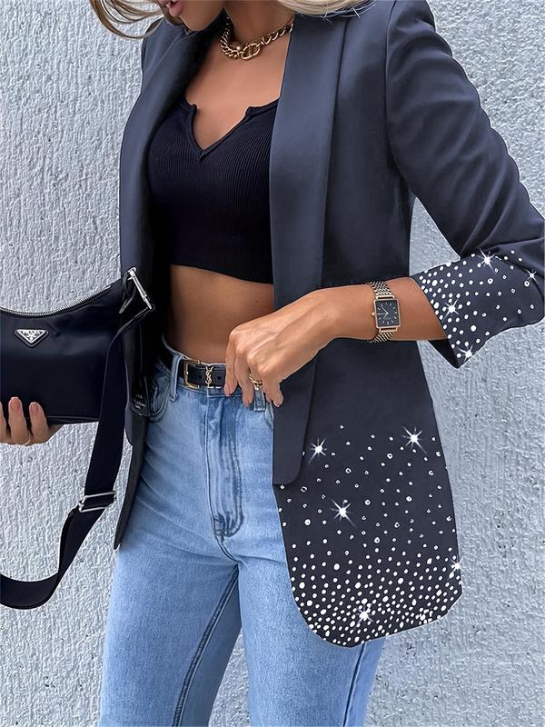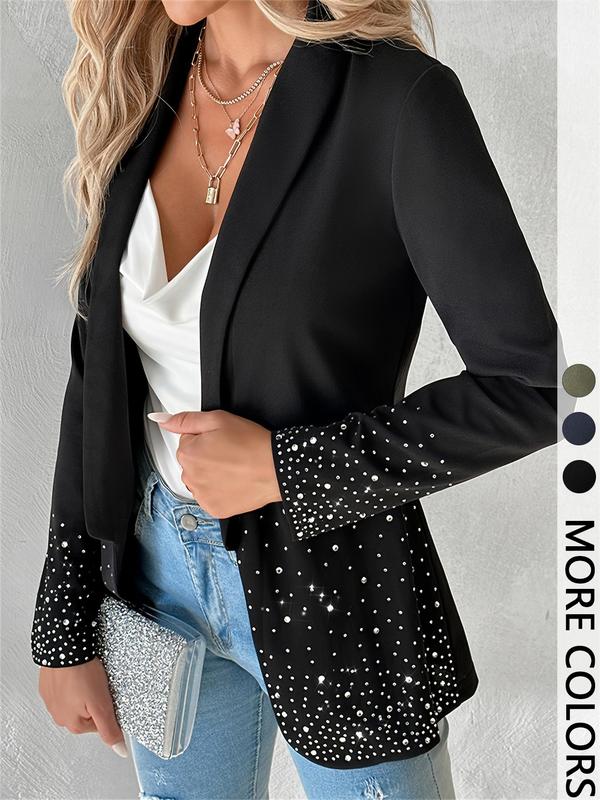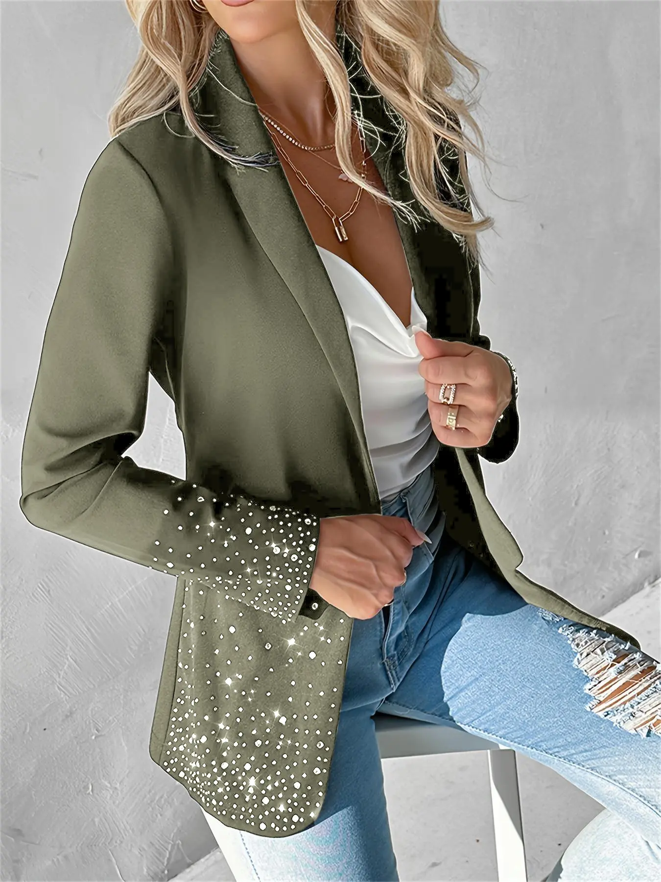 Women's Plain Long Sleeve Blazer Jacket, Elegant Water Drill Decoration, Stylish Business Casual Outerwear for Women