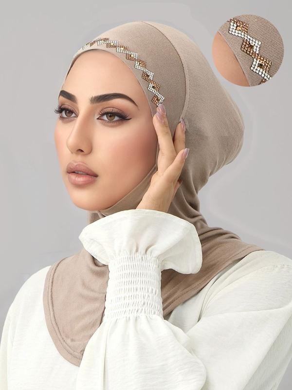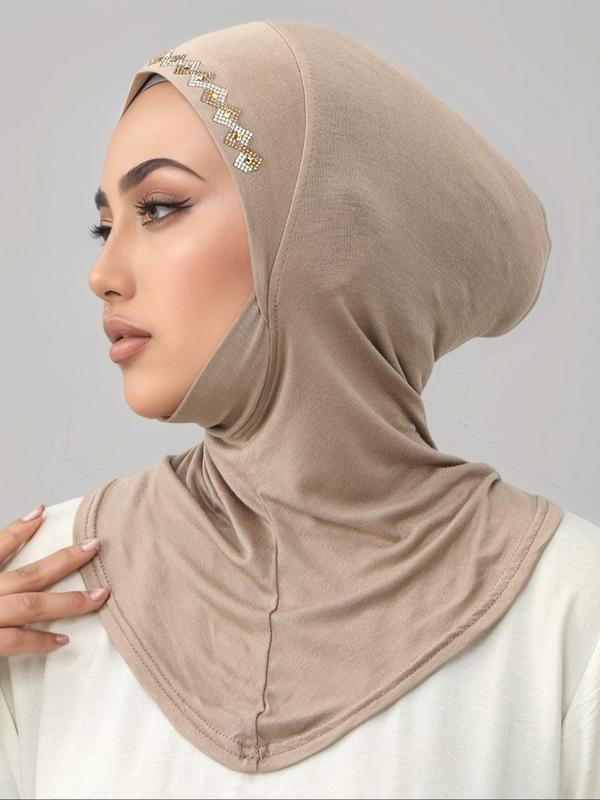Women's Plain Rhinestone Hijab Cap, Modest Hijab, Lazy Headscarf Wrap, Soft Windproof, Ideal for Daily Prayer and Outdoor Use
