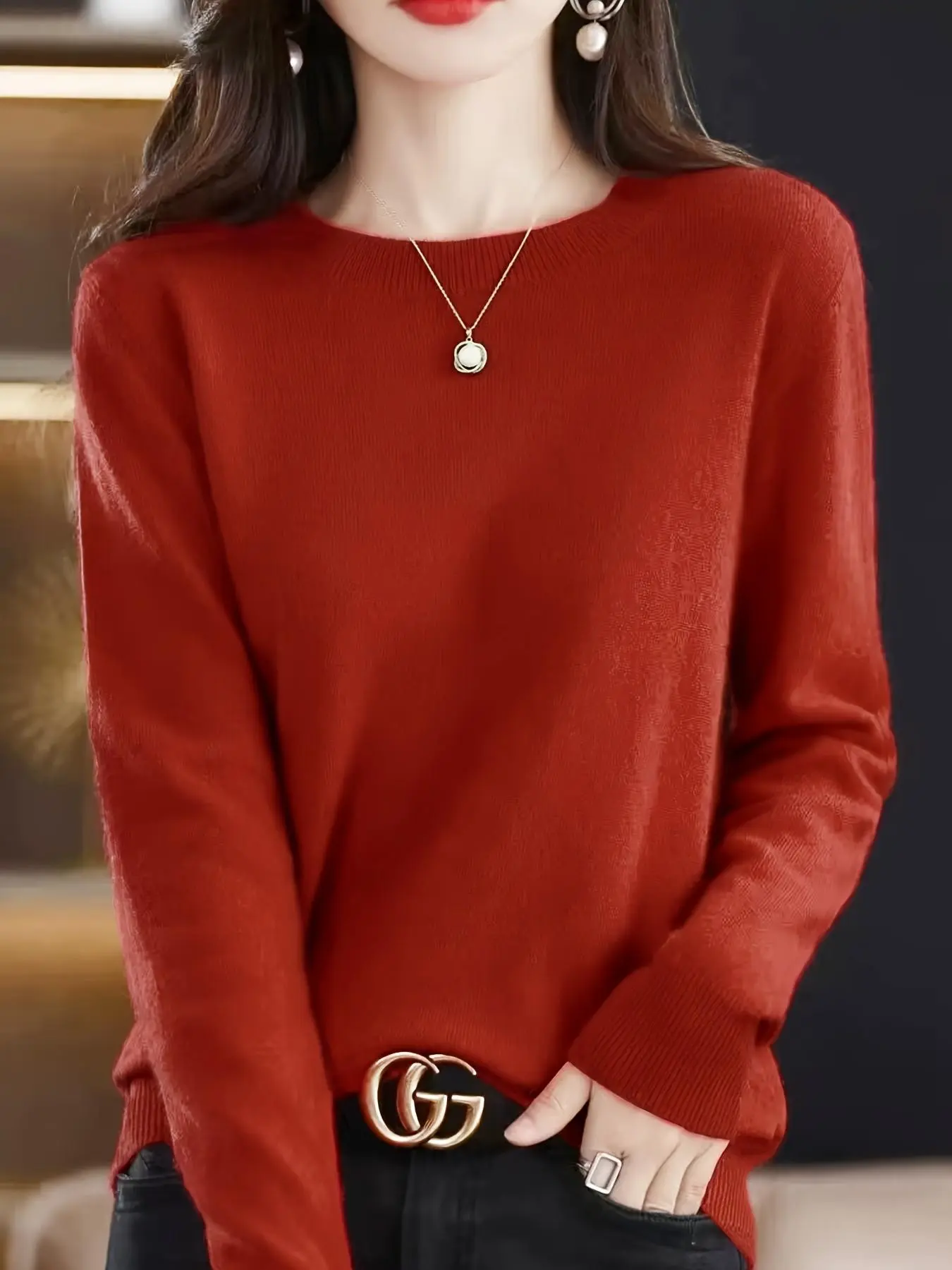 5. Women's Plain Round Neck Sweater, Casual Fit Long Sleeve Crew Neck Jumper for Fall & Winter, Fashion Ladies' Knitwear for Daily Wear