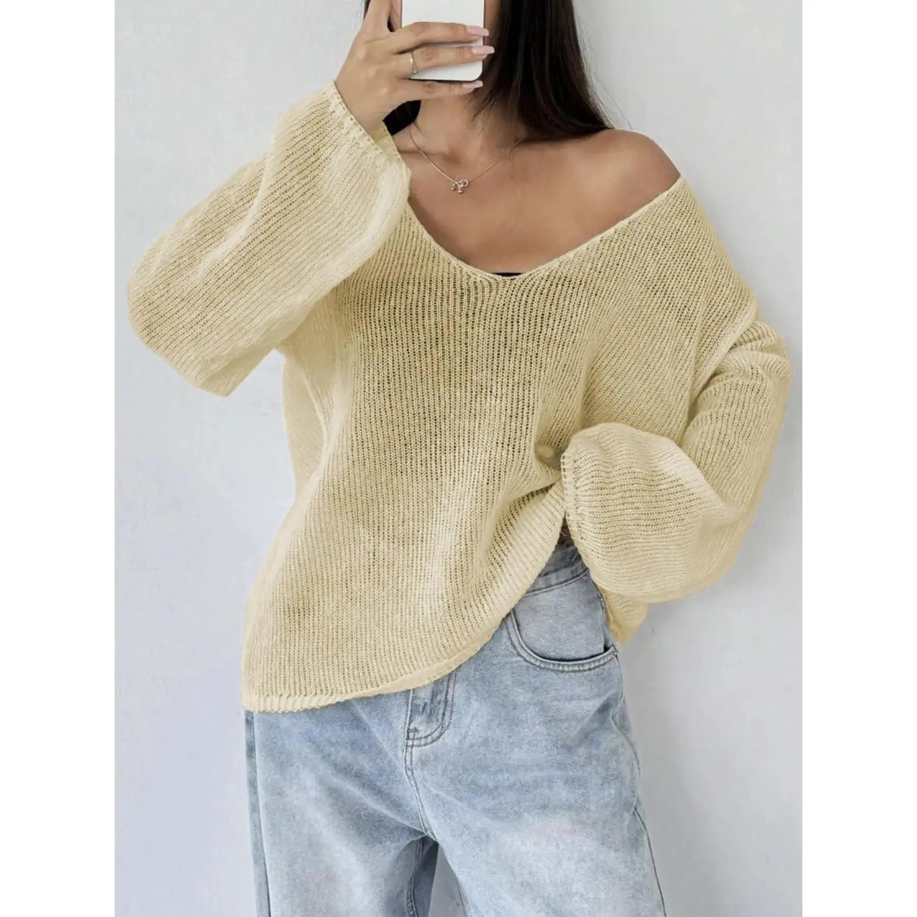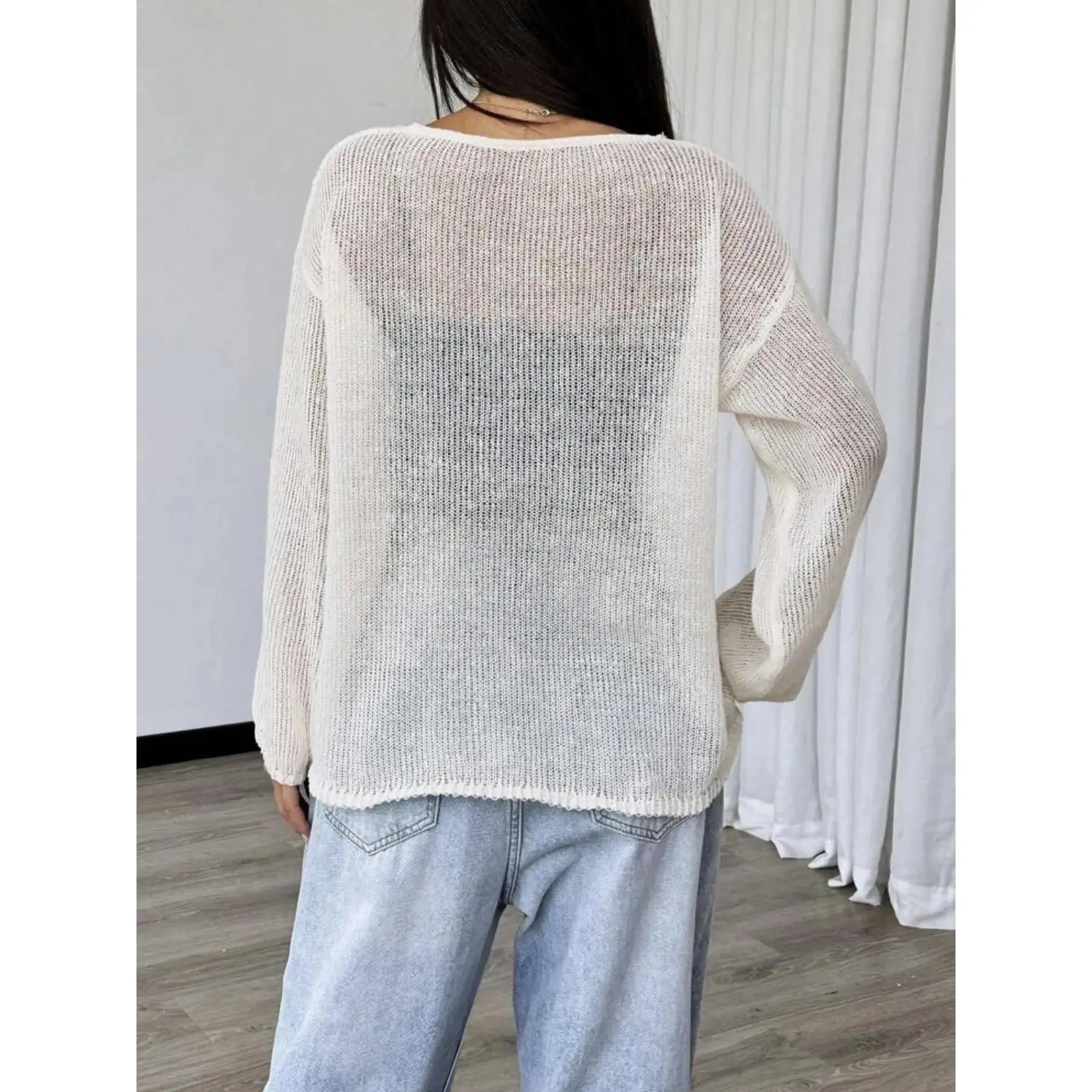 Women's Plain Sheer Sweater Pullover, Casual Basic Long Sleeve Jumper for Daily Wear, Ladies Knitwear for All Seasons