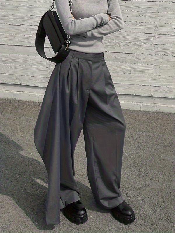 Women's Pure Color Straight Leg Pants with Pockets, Casual Fashion Bottoms, Comfortable and Stylish, Perfect for Daily Wear