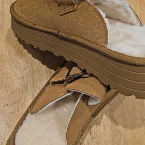 Very cute very soft, very elegant. I love the way they look. I love the texture and the fabric of the inside of the shoe very comfortable to wear around the house or outside.