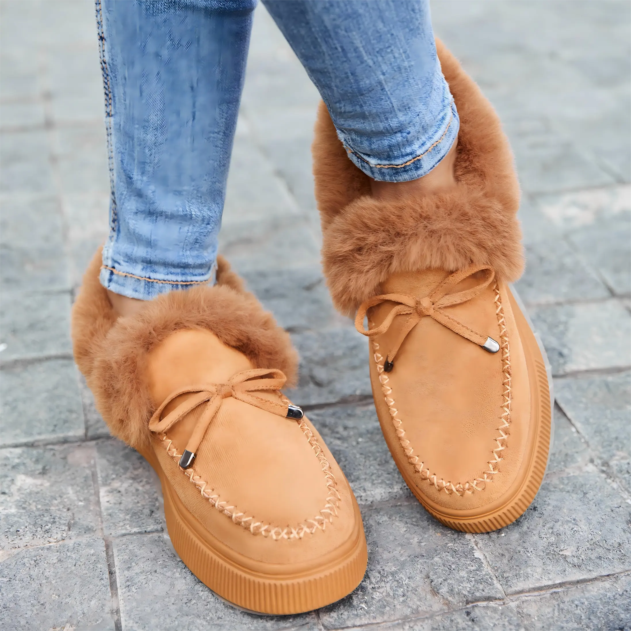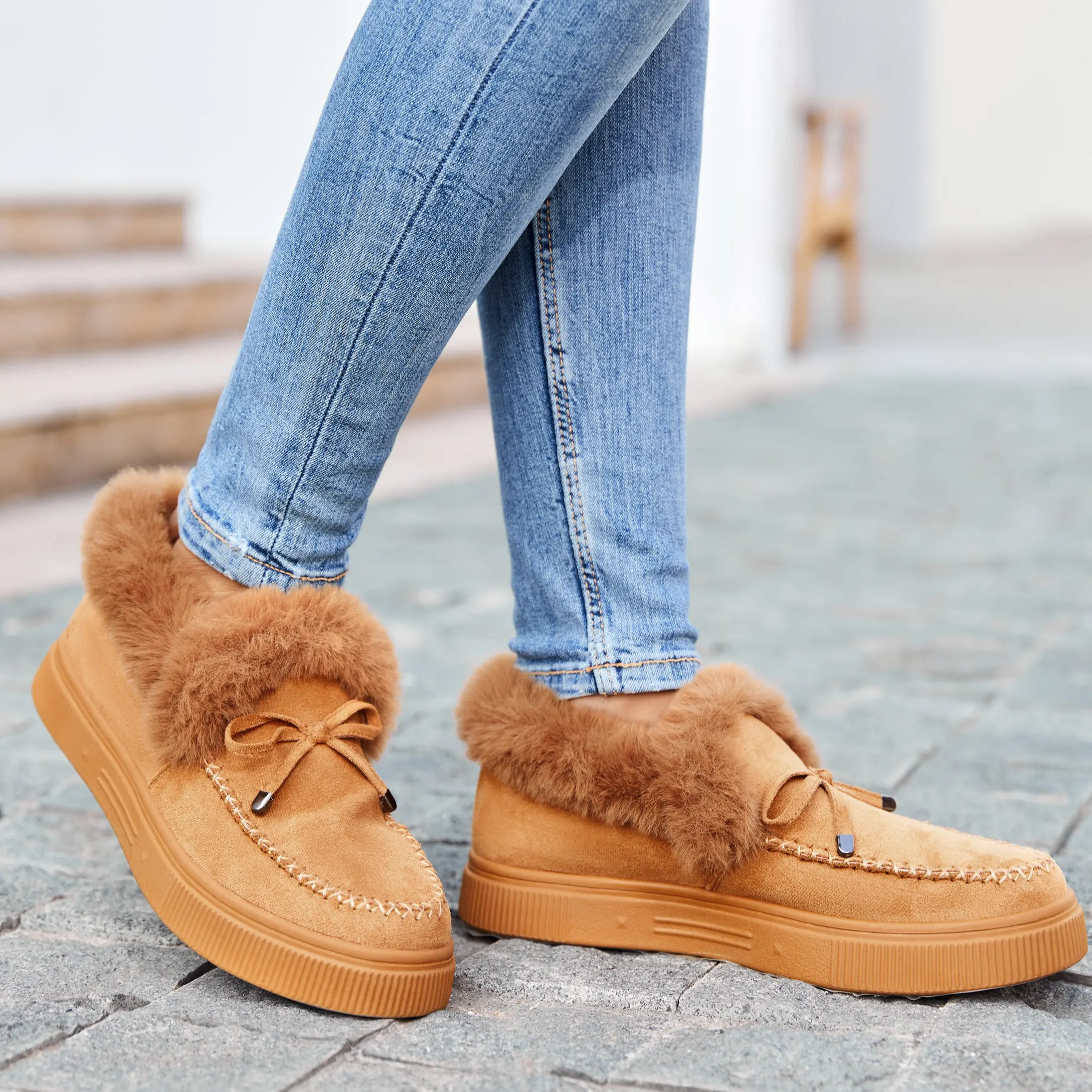 Warm Fleece Loafers - To give you a better wearing experience in the cold winter, we have increased the length of the inner fluff and the thickness of the insole,this platform ankle snow boots keeps warm and comfortable when wear it!