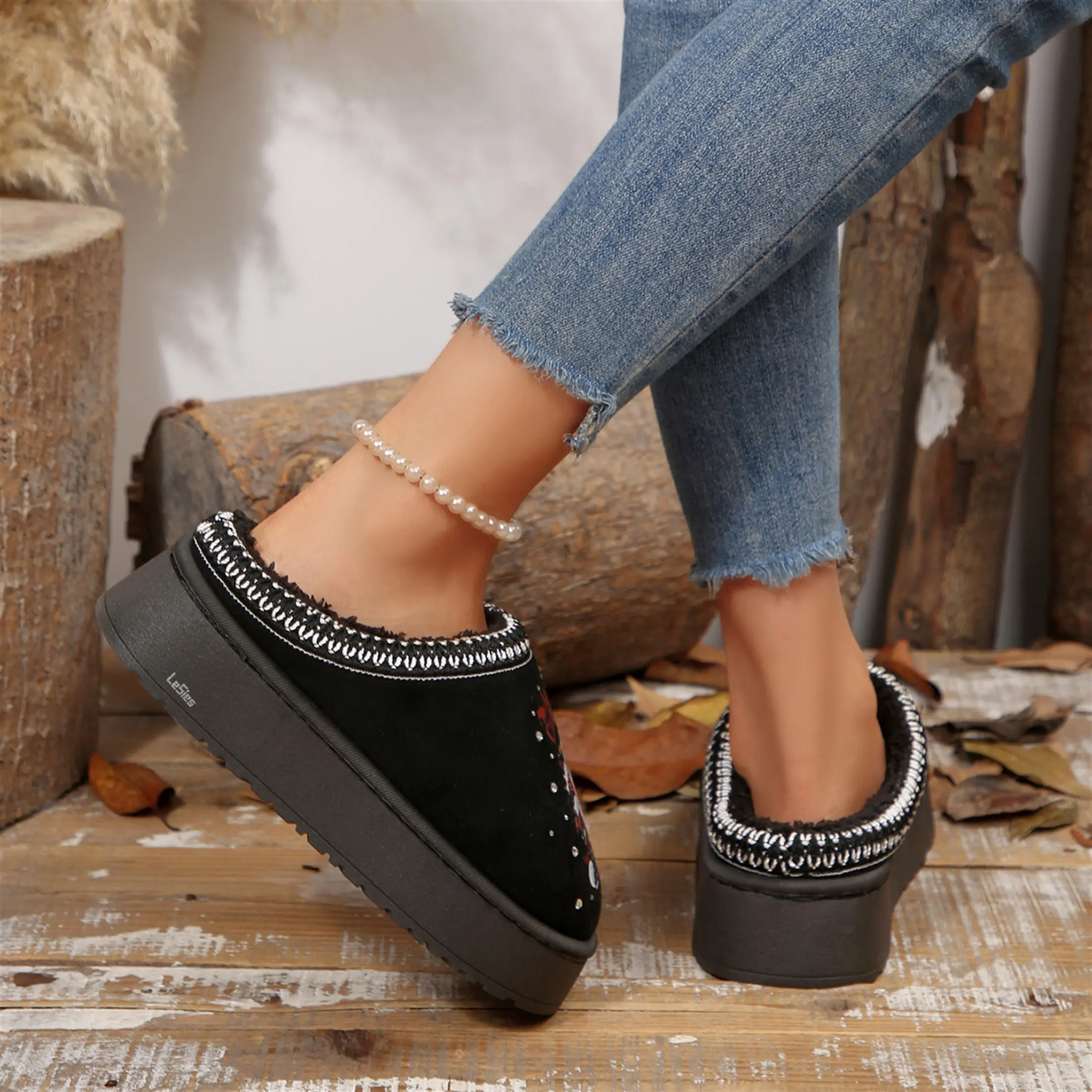 Anti-Slip Rubber Sole: The platform shoes boast a rubber sole designed with a tire pattern, providing excellent moisture and water resistance. With this sturdy grip, you can confidently navigate various surfaces. The thickened sole, along with the liner, enhances thermal insulation, keeping your feet cozy in winter.