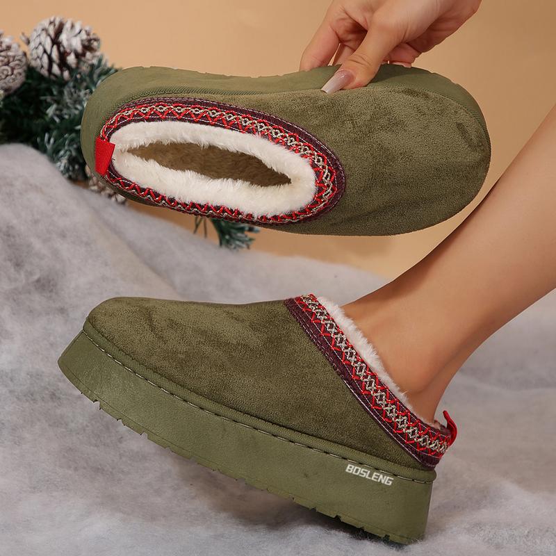 "[PLATFORM BOOT WARM SOFT FLUFFY LINED] Platform boots slippers for women soft and warm as sheepskin. Provide fluffy fuzzy comfortable feeling for your feet when also stop show and dust from dropped in. Especially for the one who has cold feet durning winter day