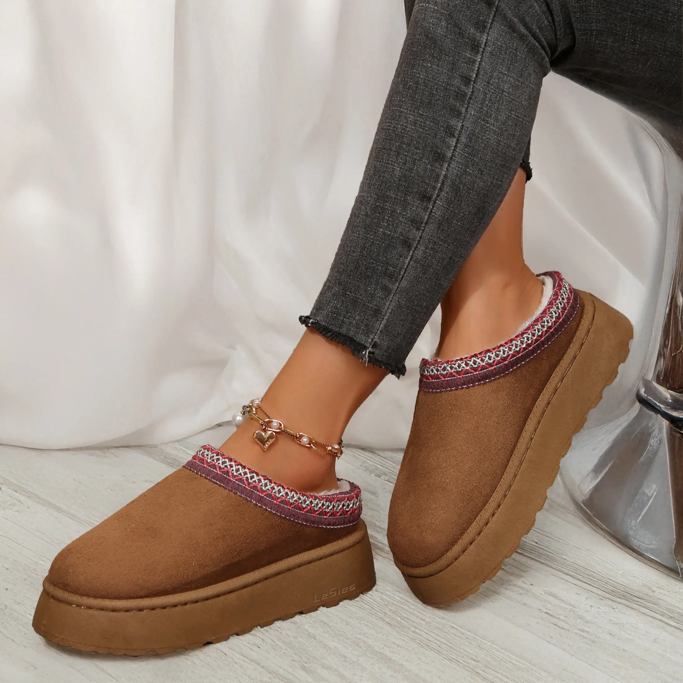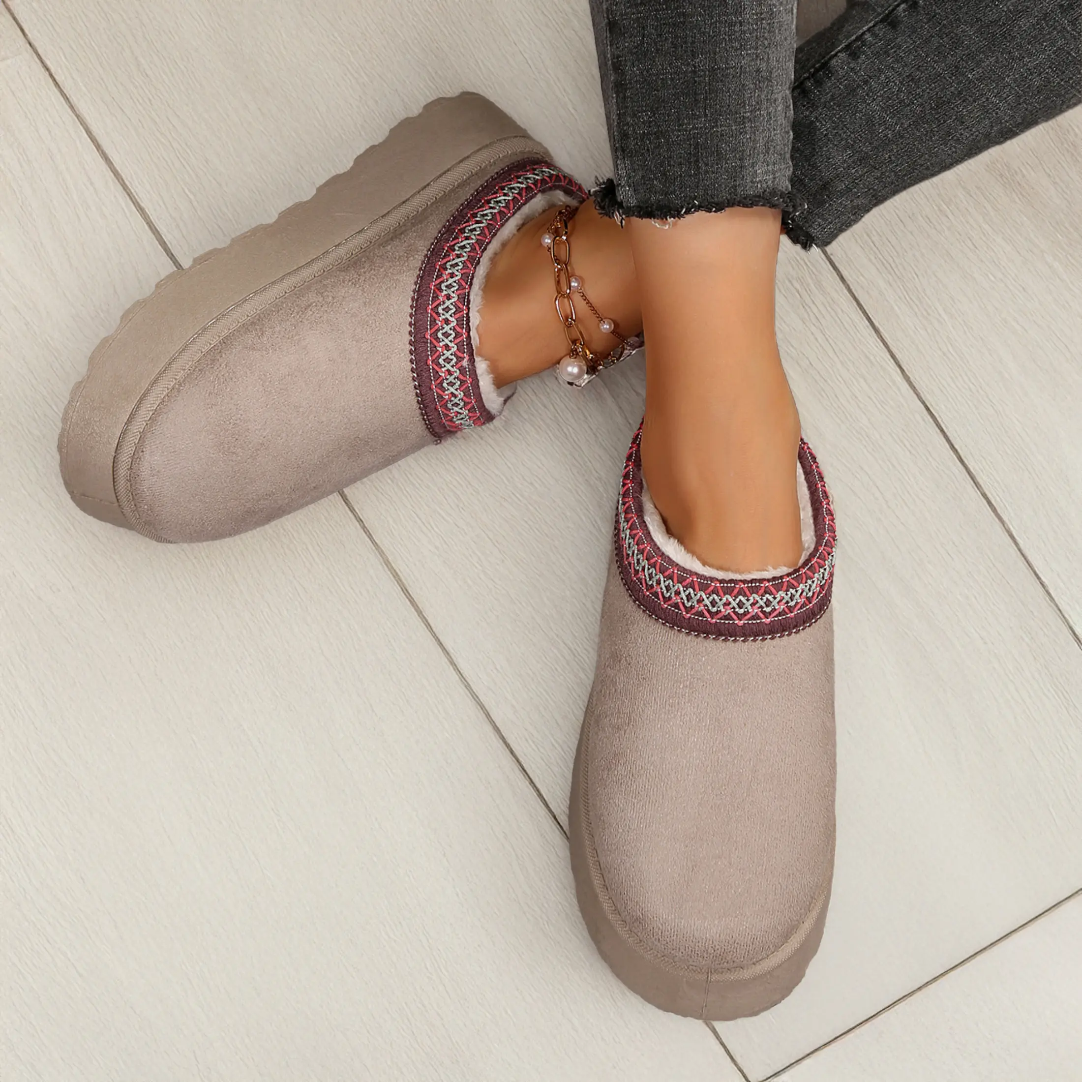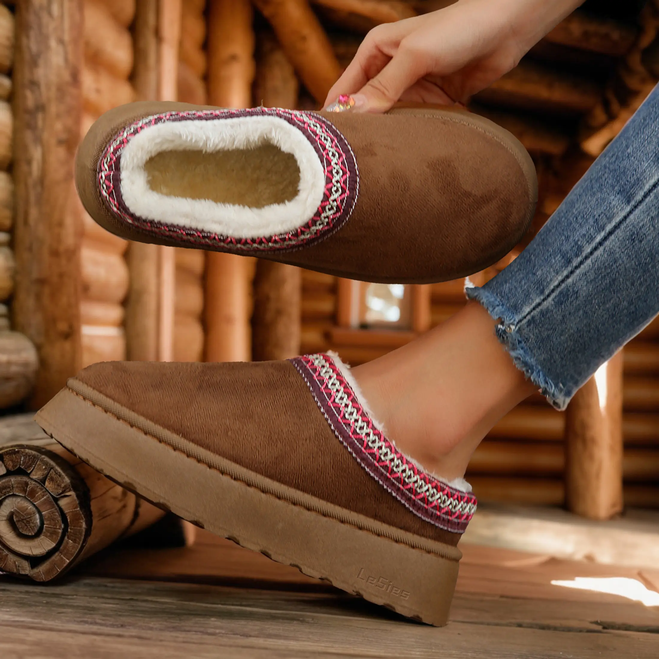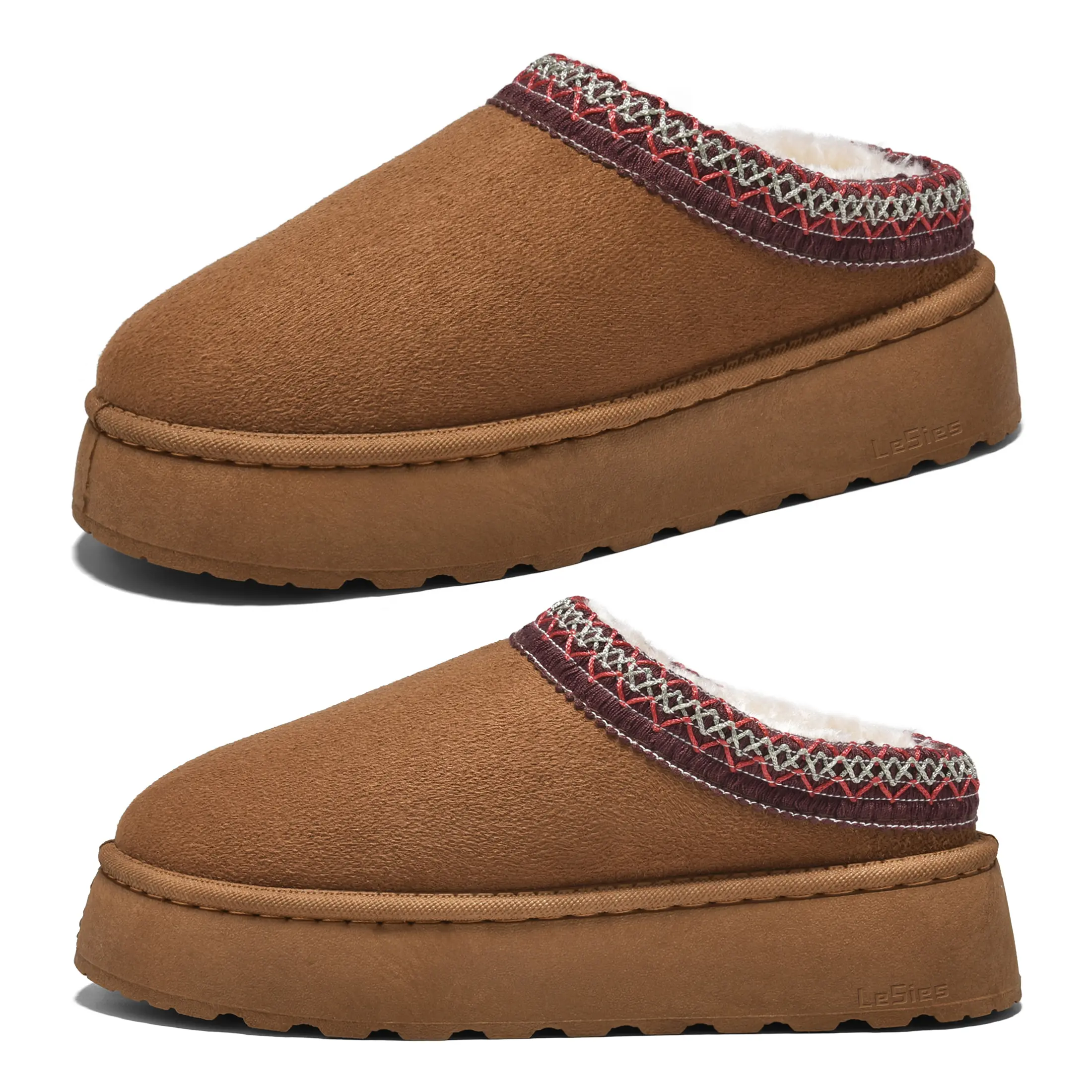 [PLATFORM BOOT WARM SOFT FLUFFY LINED] Platform boots slippers for women soft and warm as sheepskin. Provide fluffy fuzzy comfortable feeling for your feet when also stop show and dust from dropped in. Especially for the one who has cold feet durning winter day