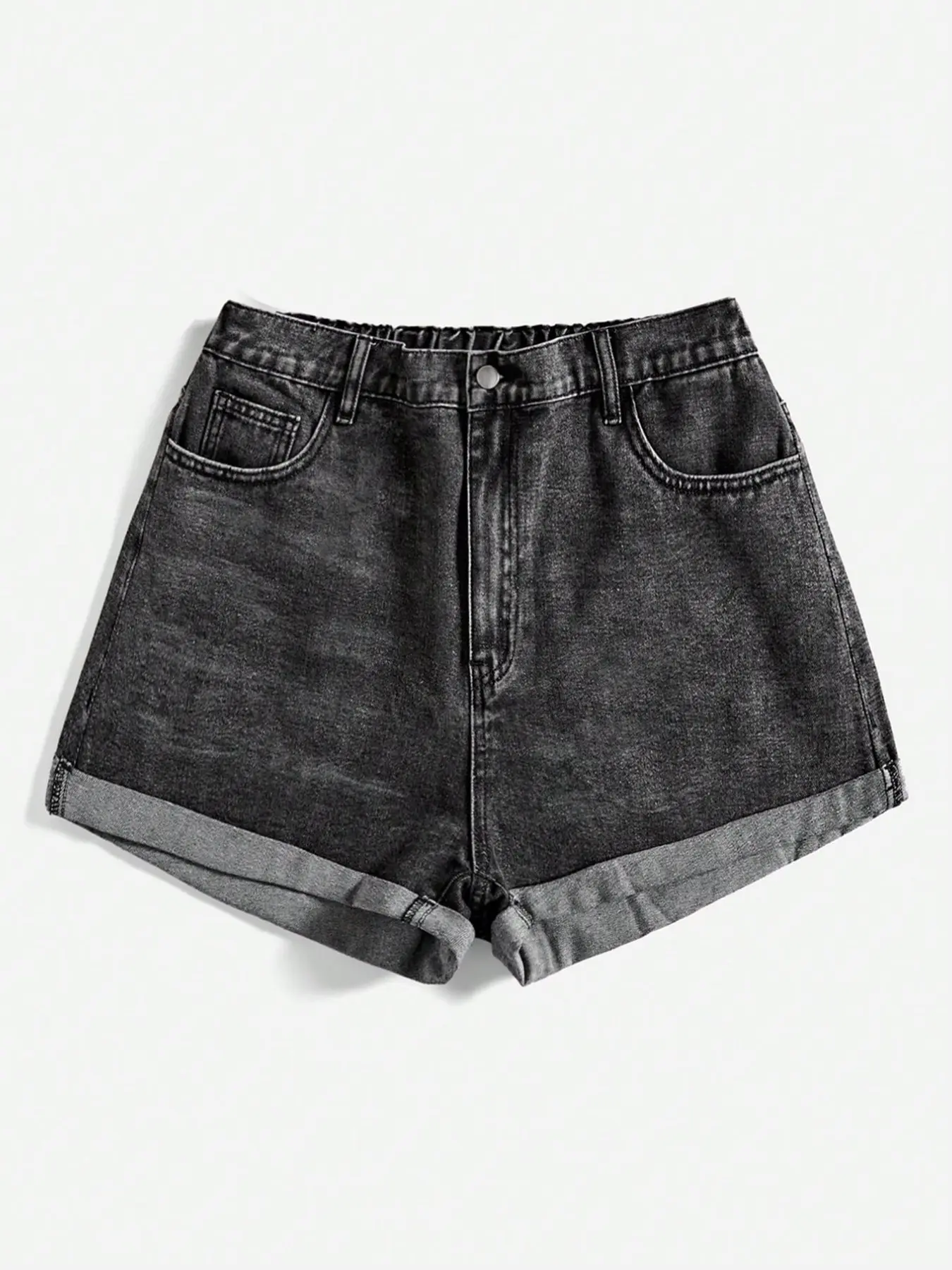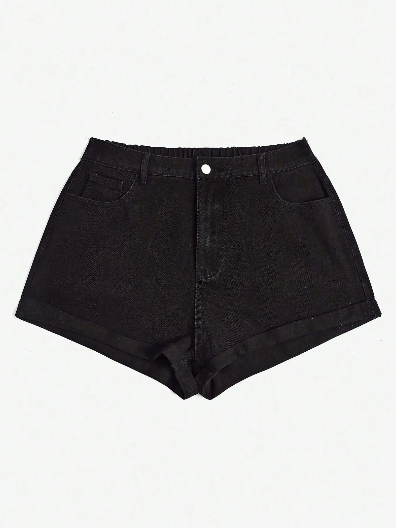 Women's Plus Size Basic Washed Denim Shorts, Denim Mom Shorts, Cuffed Denim Shorts, Folded Hem, Casual Summer Wear, Comfortable and Stylish, Perfect for Daily Use