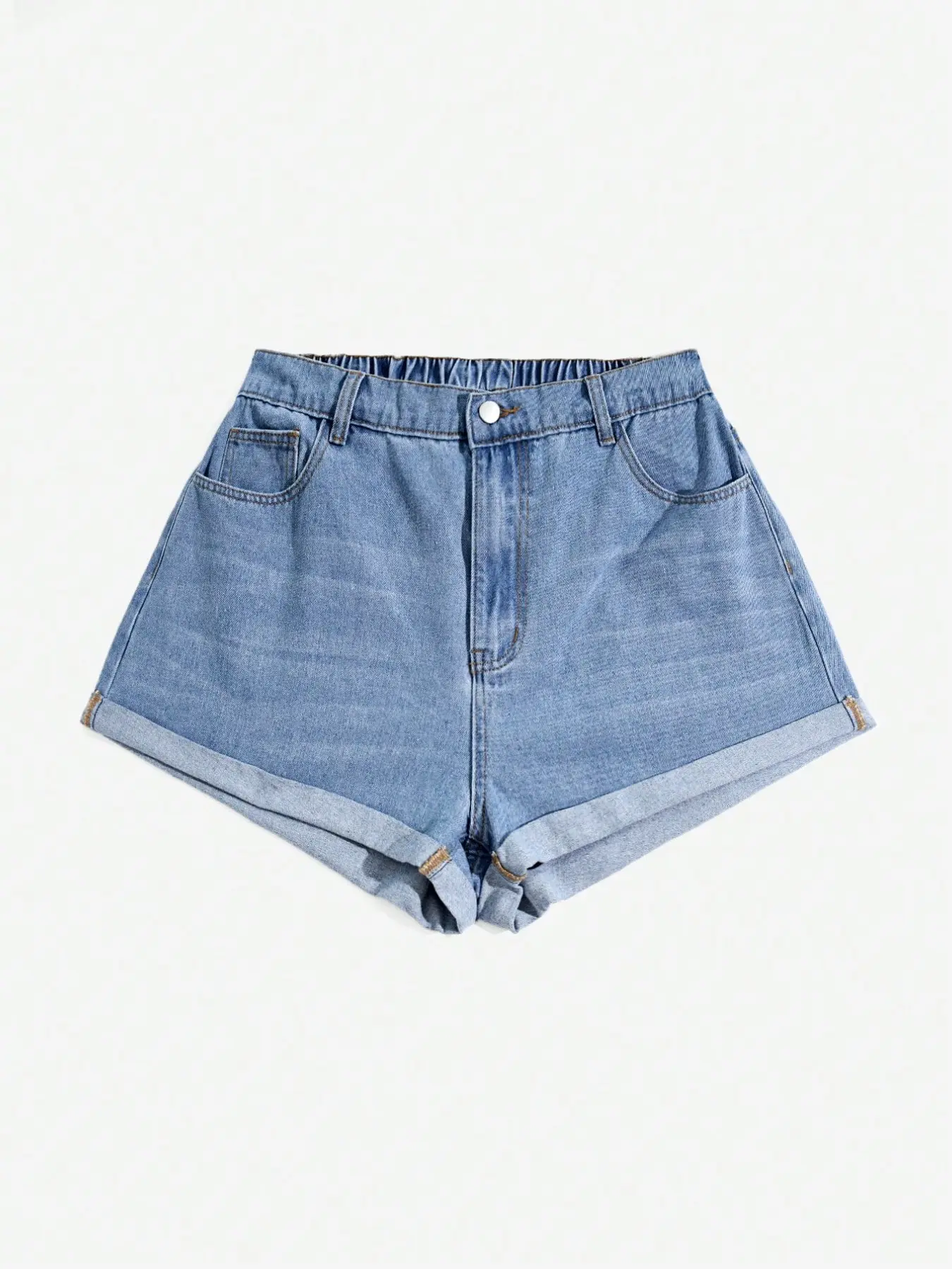 5. Women's Plus Size Basic Washed Denim Shorts, Denim Mom Shorts, Cuffed Denim Shorts, Folded Hem, Casual Summer Wear, Comfortable and Stylish, Perfect for Daily Use