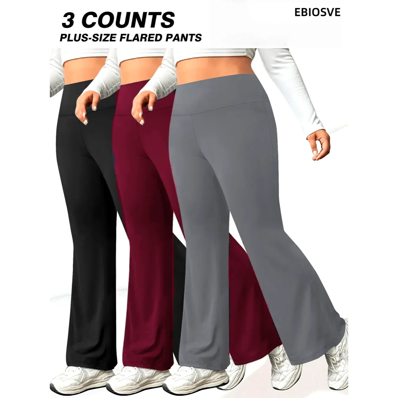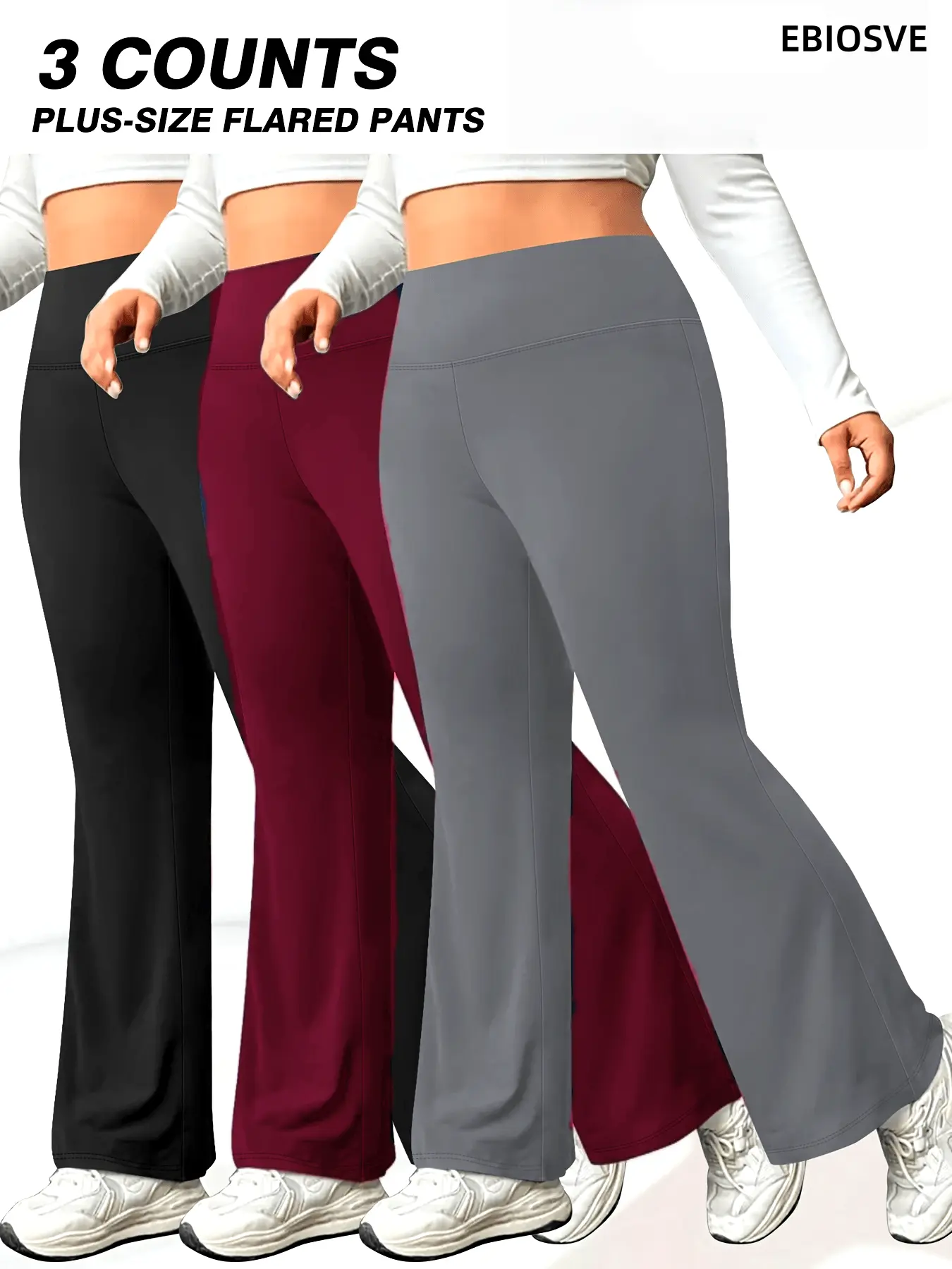 ·3pcs Set: Includes solid-color tummy control wide-leg flare pants. Perfect for all-season wear. 🌞