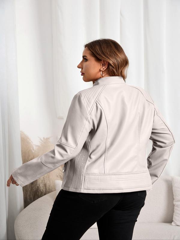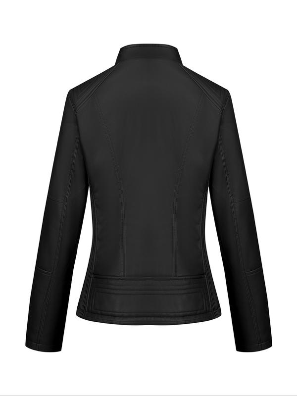 Women's PU Leather Motorcycle Jacket, Casual Fitted Design, All-Season Wear, Perfect for Commuting & Street Style