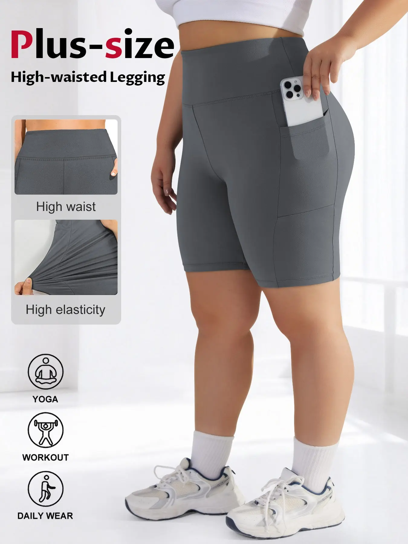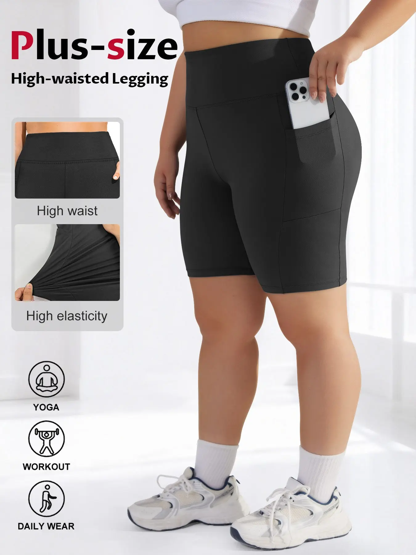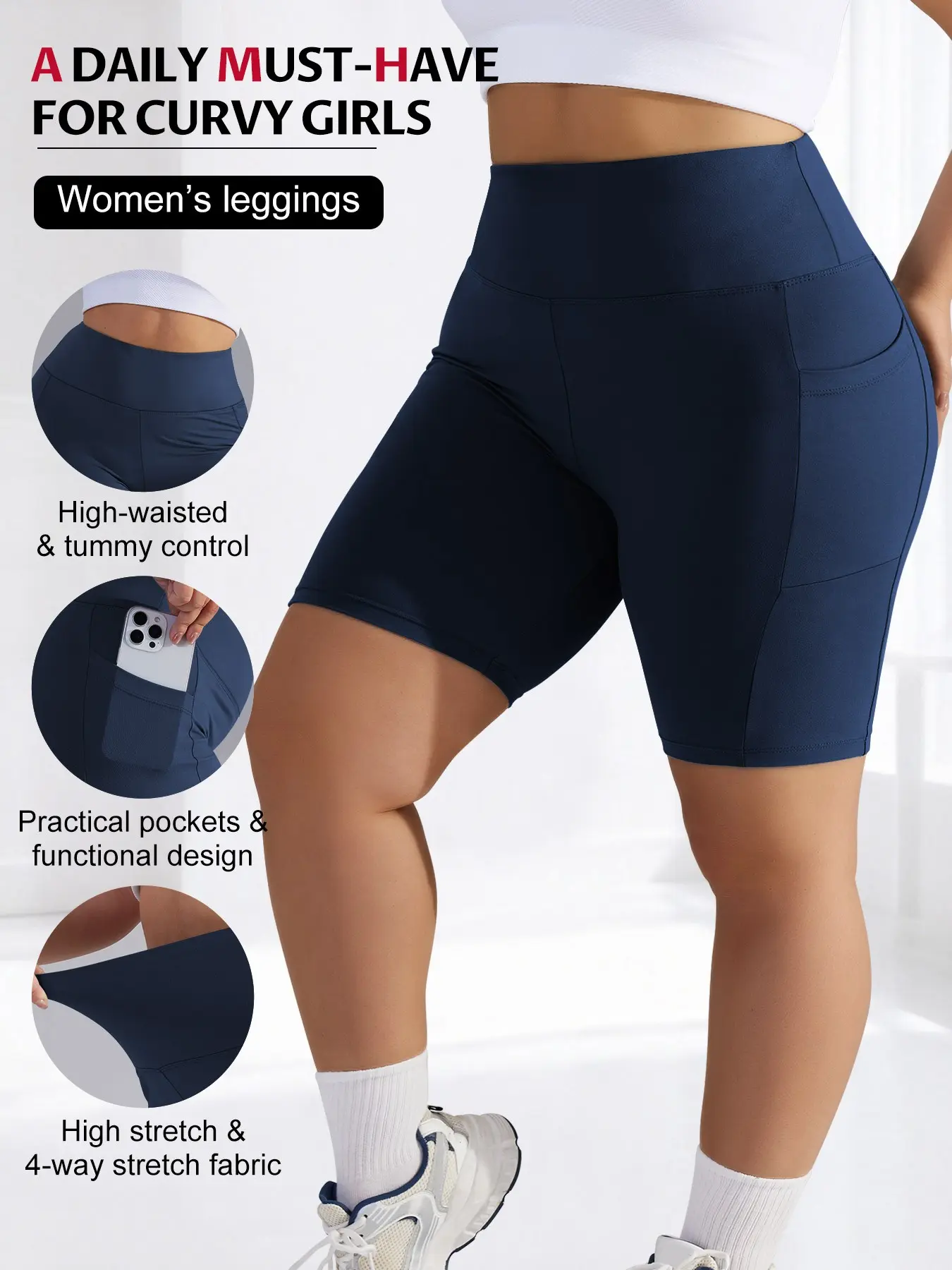 5. Women's Plus Size Casual Tight Fit Solid Color Shorts, Fitted Fashion Shorts, Side Pockets, Comfortable Daily Wear, Fashion Design, Perfect for Everyday Use