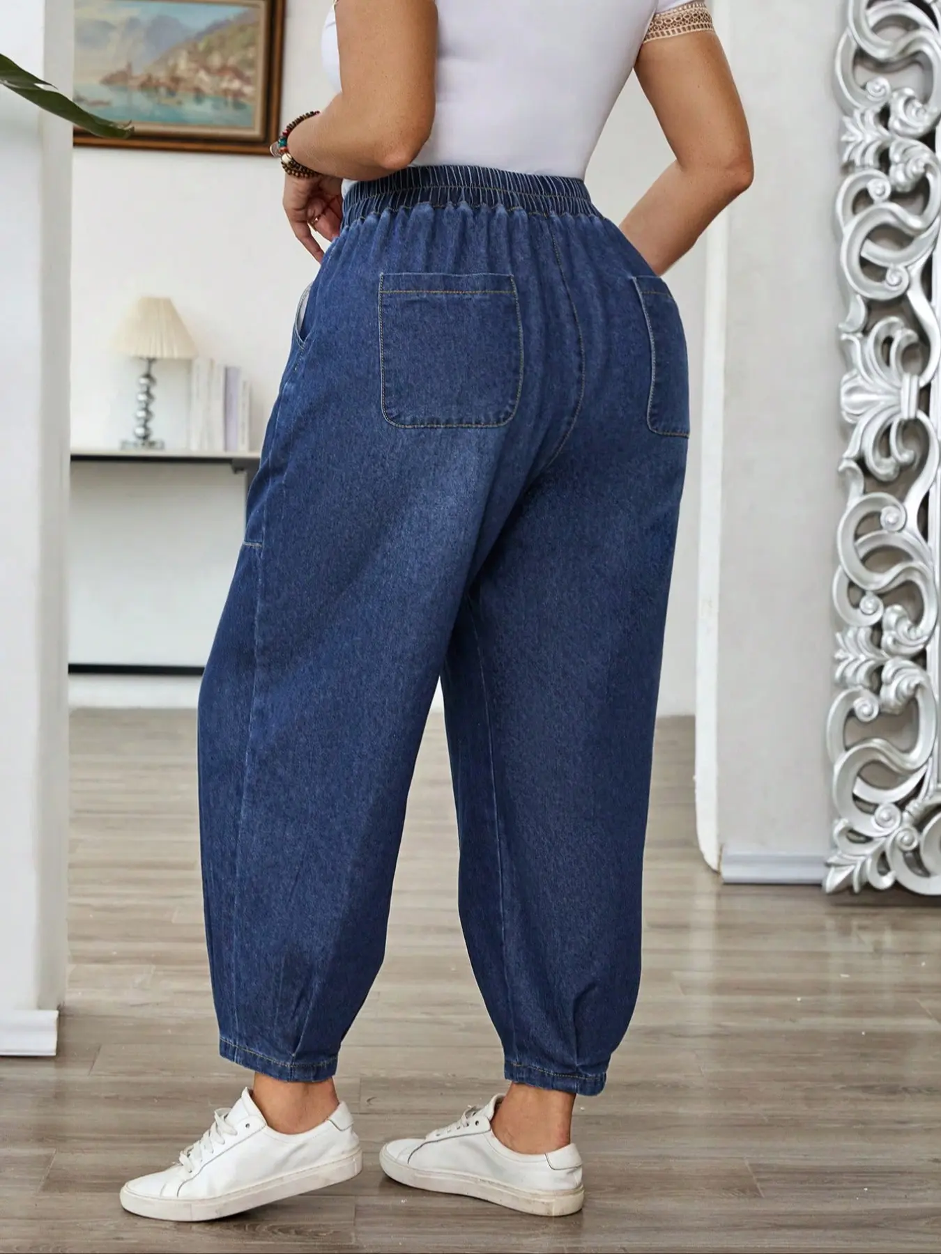 5. Women's Plus Size Classic Fitted Jeans, Comfortable Patchwork Design, Long Denim Jeans for All Seasons, Elegant Style