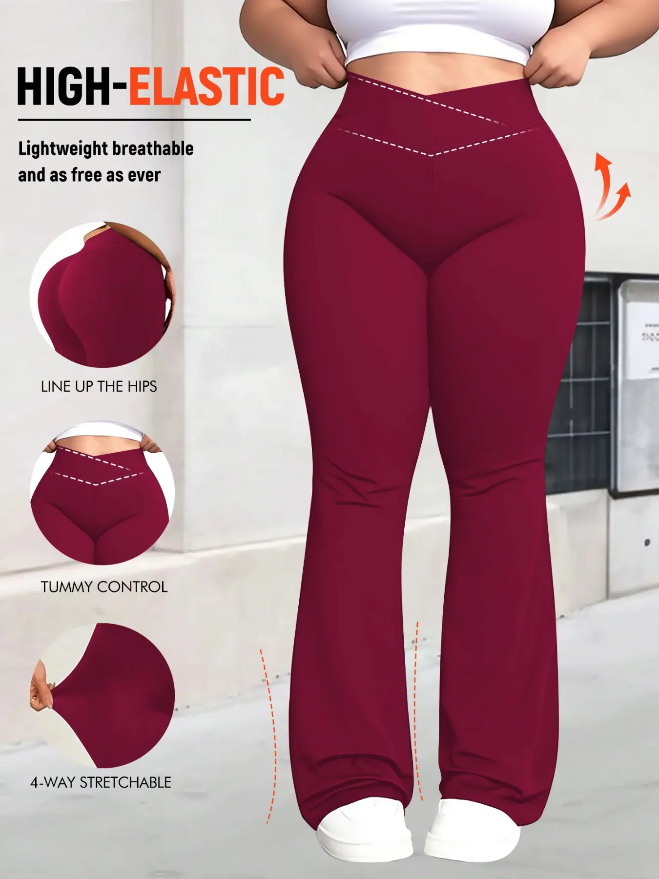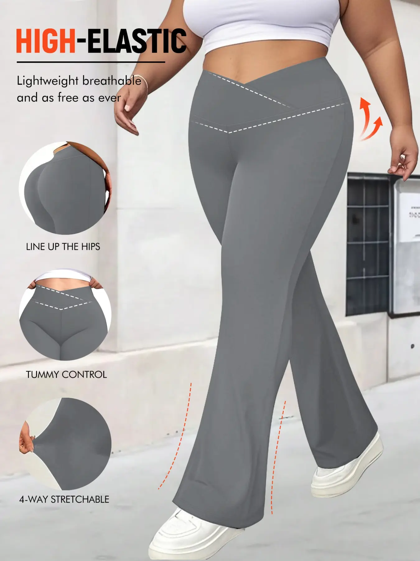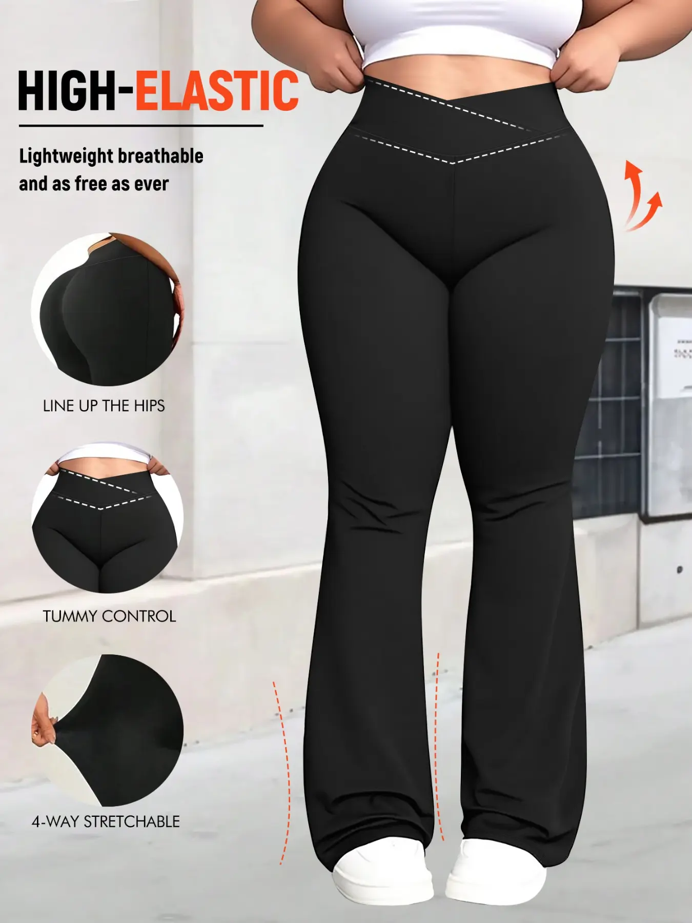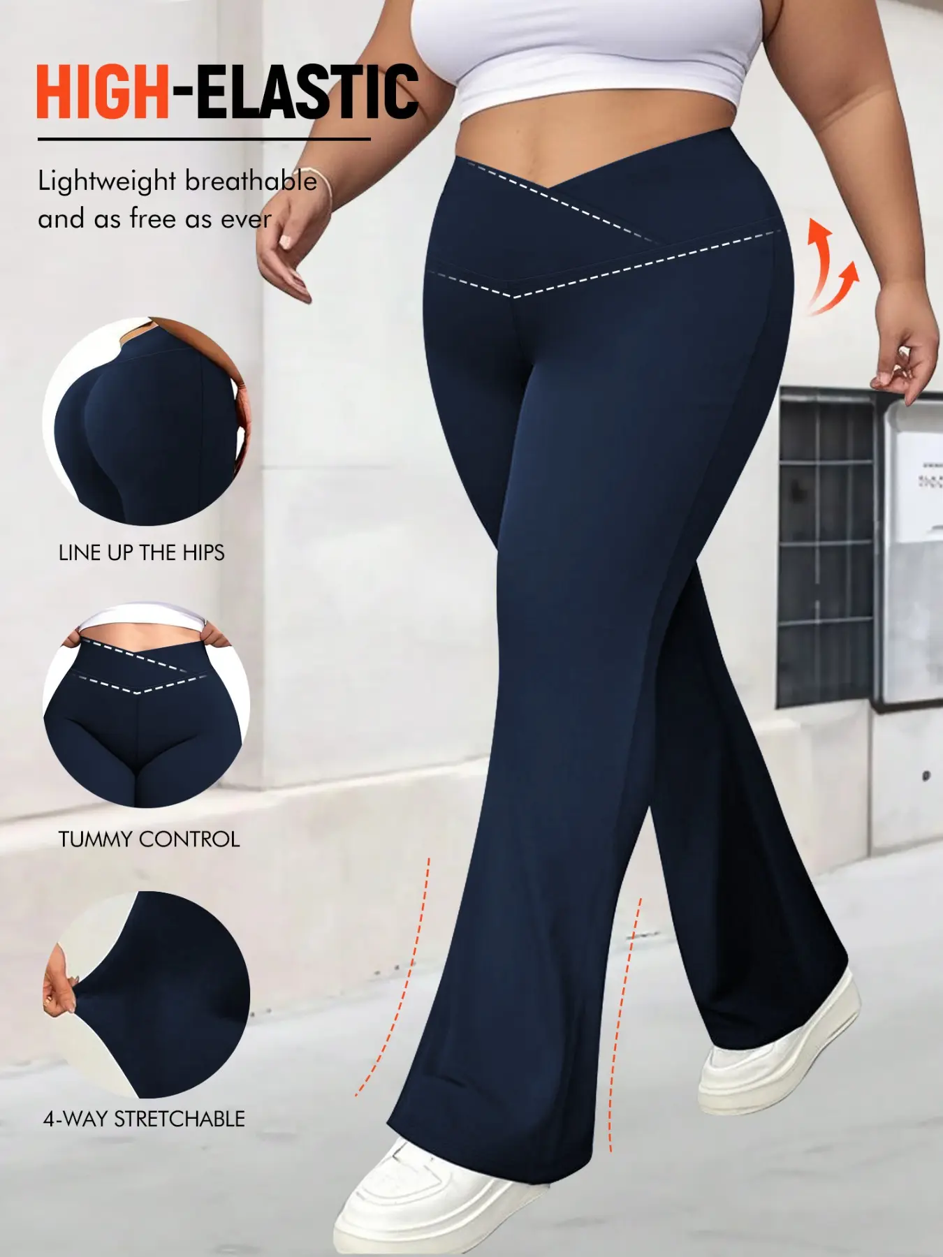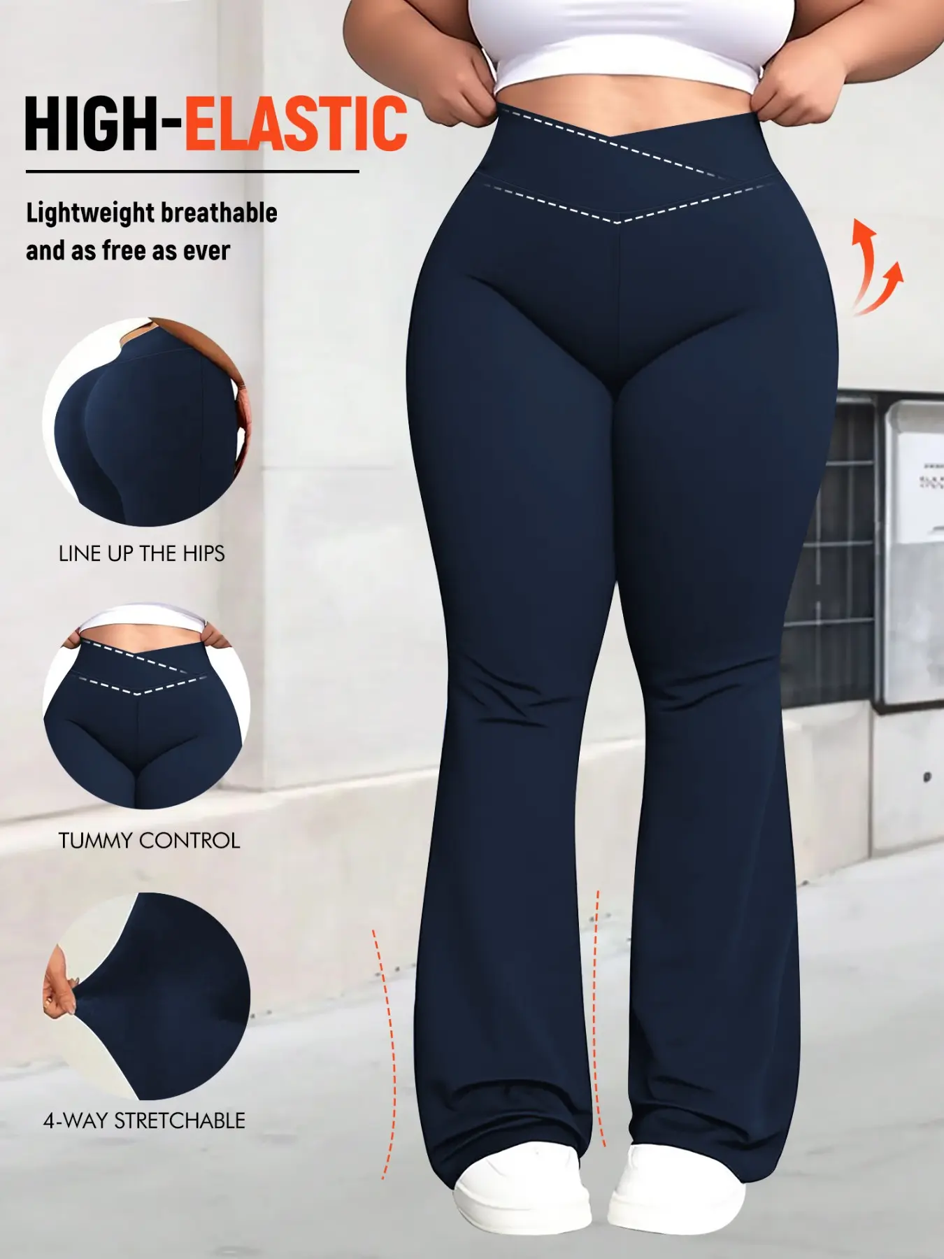 Women's Plus Size Cross Waist Flare Leg Pants, High Elasticity, Sweet Daily Wear, Commuter Pants, Fashionable Comfort, All Seasons Best Choice