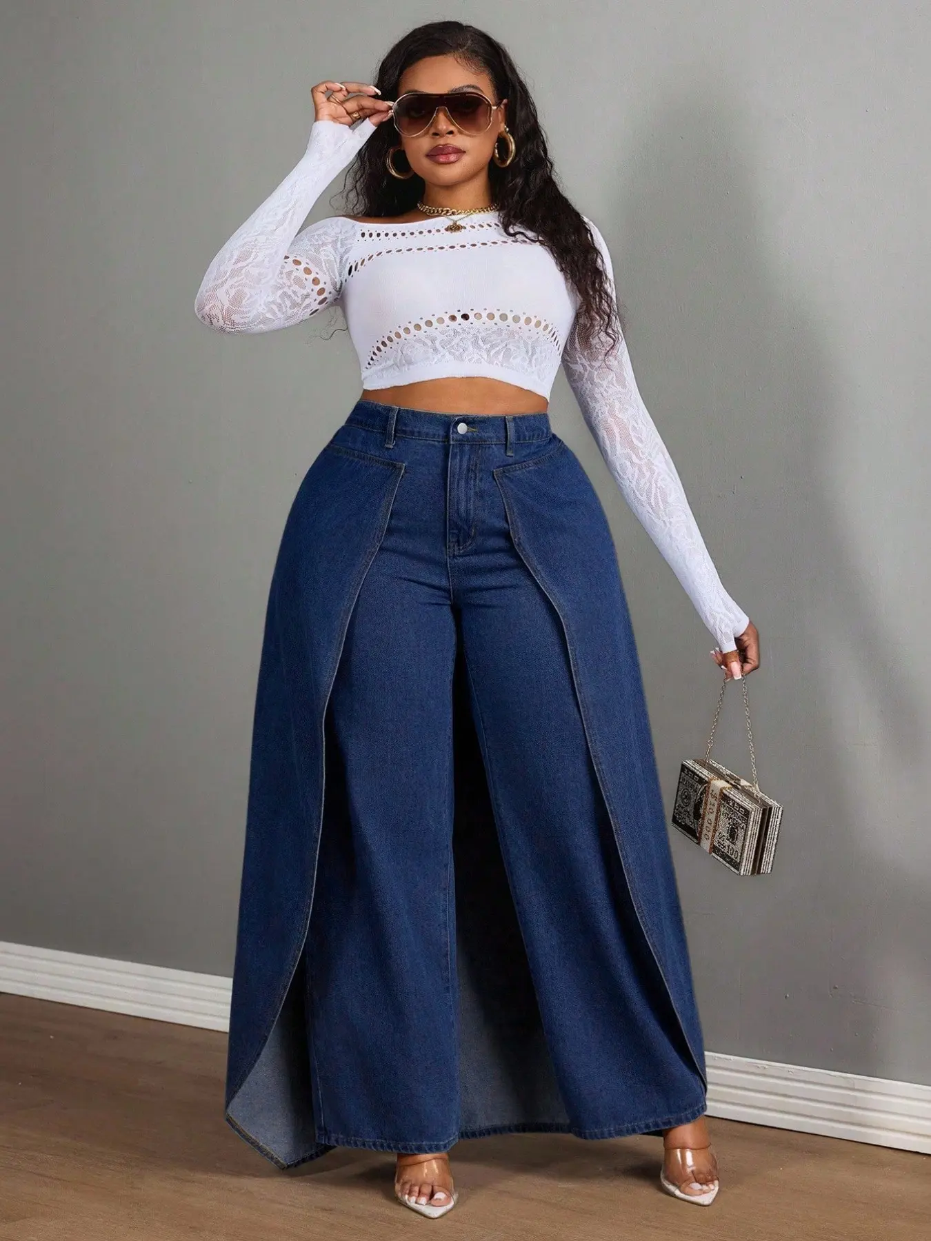 Women's Plus Size Two-Piece Denim Jeans, Casual Faux Two-Piece Design, Comfortable and Stylish Jeans for Everyday Wear #tiktokviral #outfitideas #outfitideas