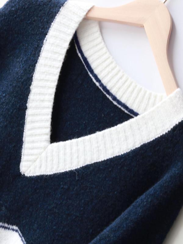 5. 【Plus Size】 Figure Pattern Knit Sweater, Casual Long Sleeve V Neck Jumper for Fall & Winter, Women's Plus Clothing for Daily Wear
