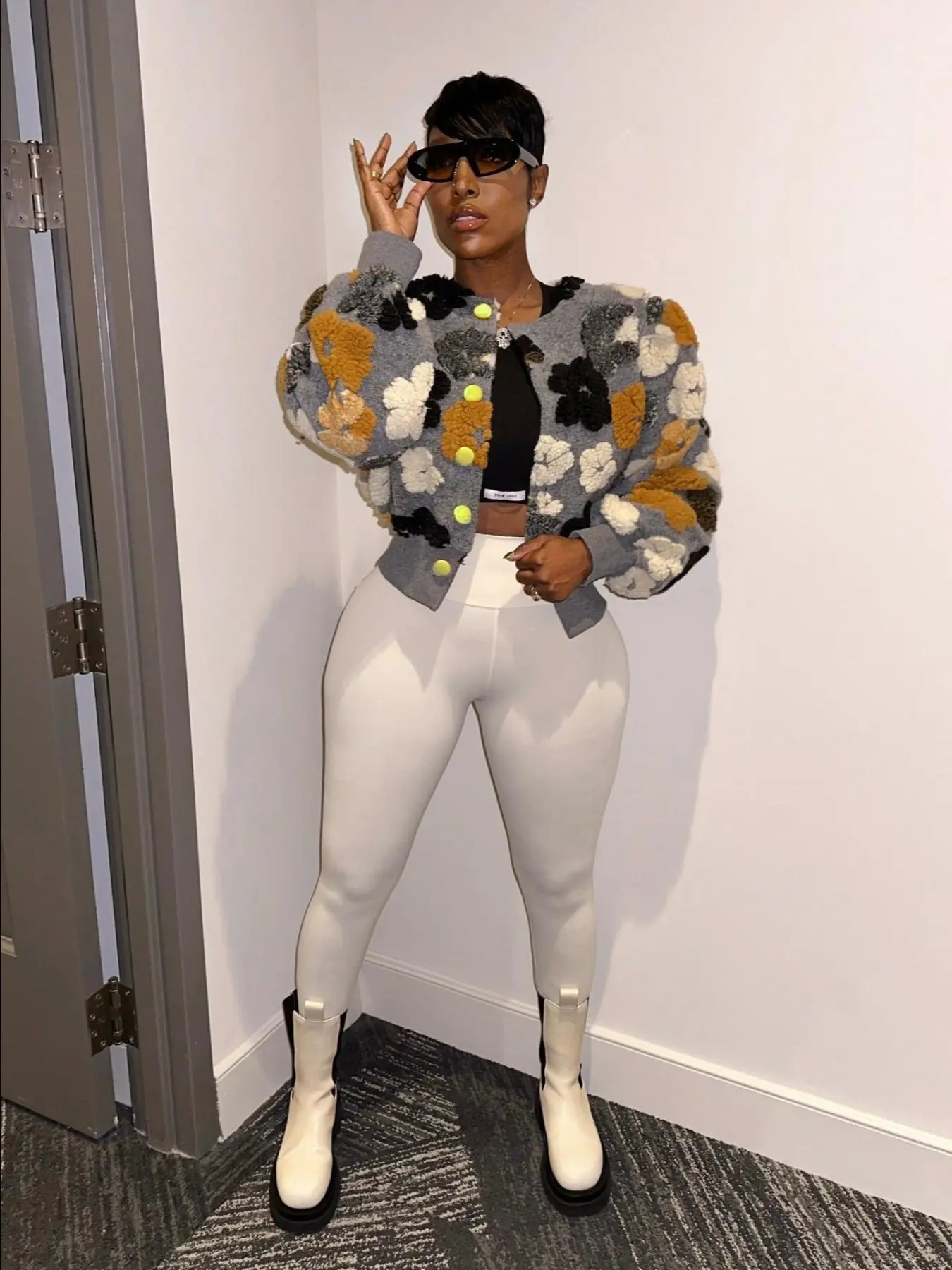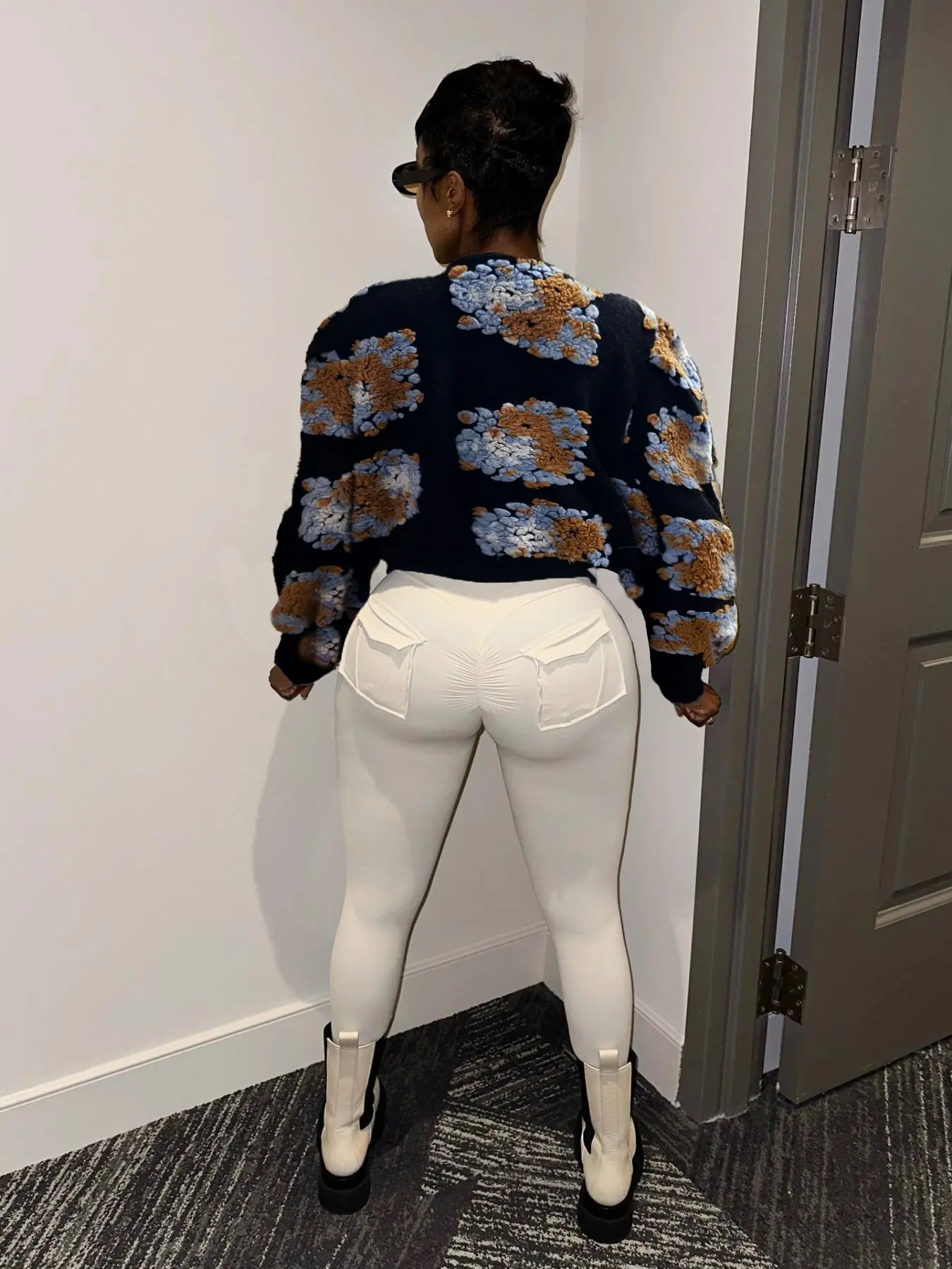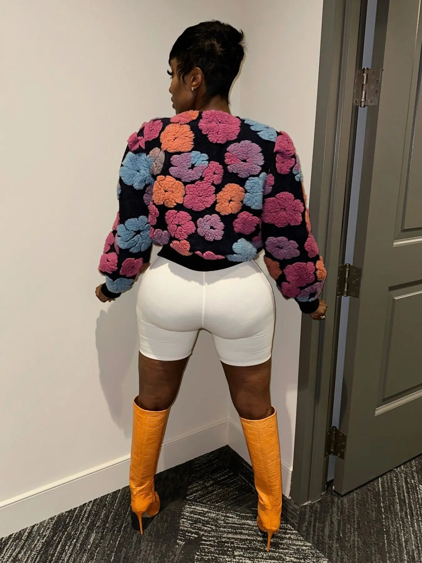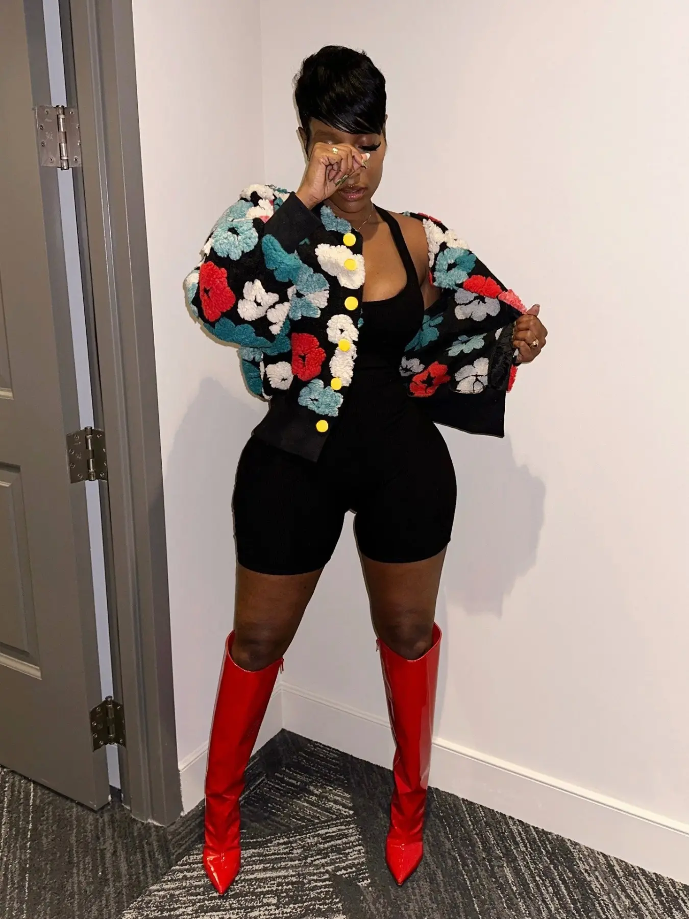 Absolutely LOVE this jacket! It's so uniquely cute! I'm gonna rock it with a cute turtleneck when the weather permits, jeans and boots! Would even look cute over a sexy sweater dress! Fits well! I'm 5'7, 220ilbs. Got a size 1xl. Sleeves are roomy and not short! Copped and not too tight. ❤️