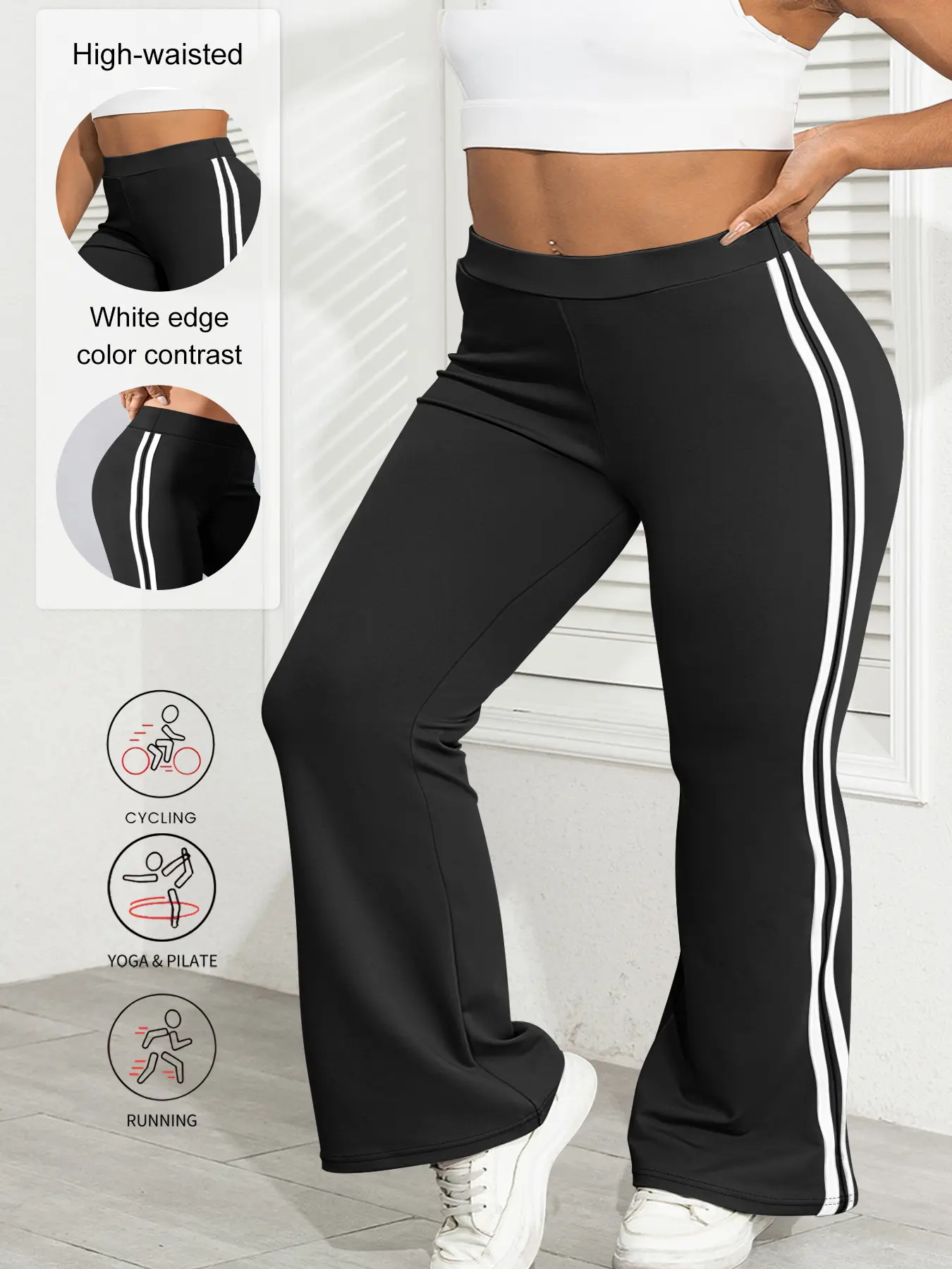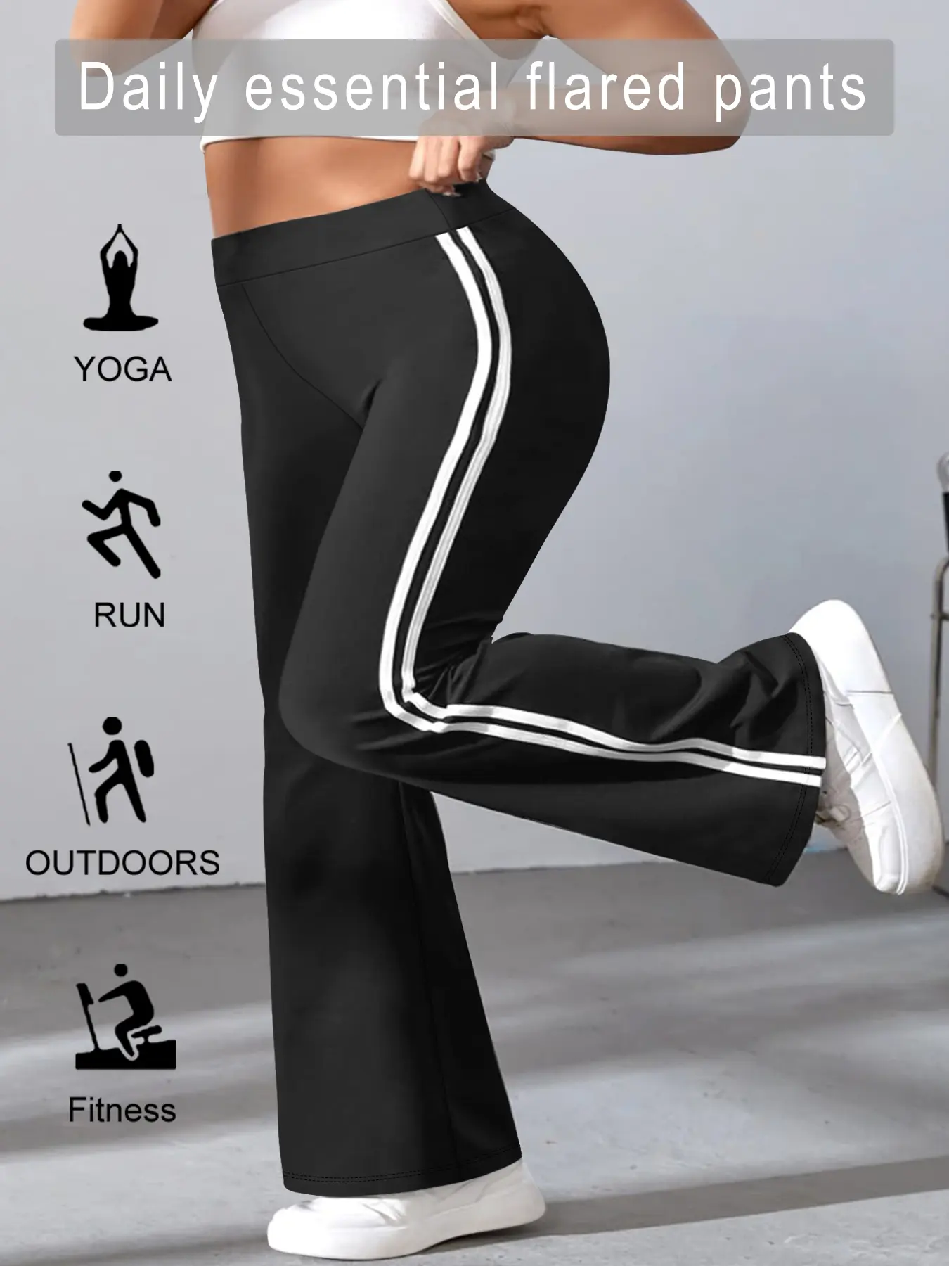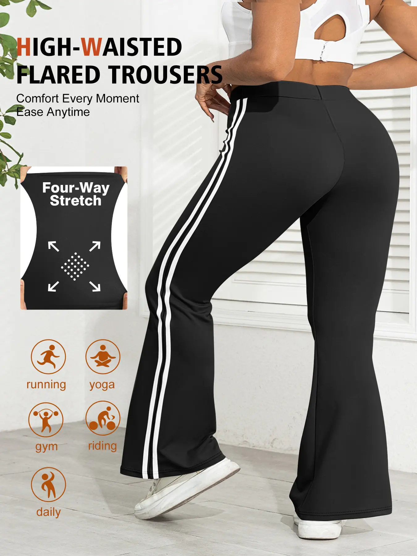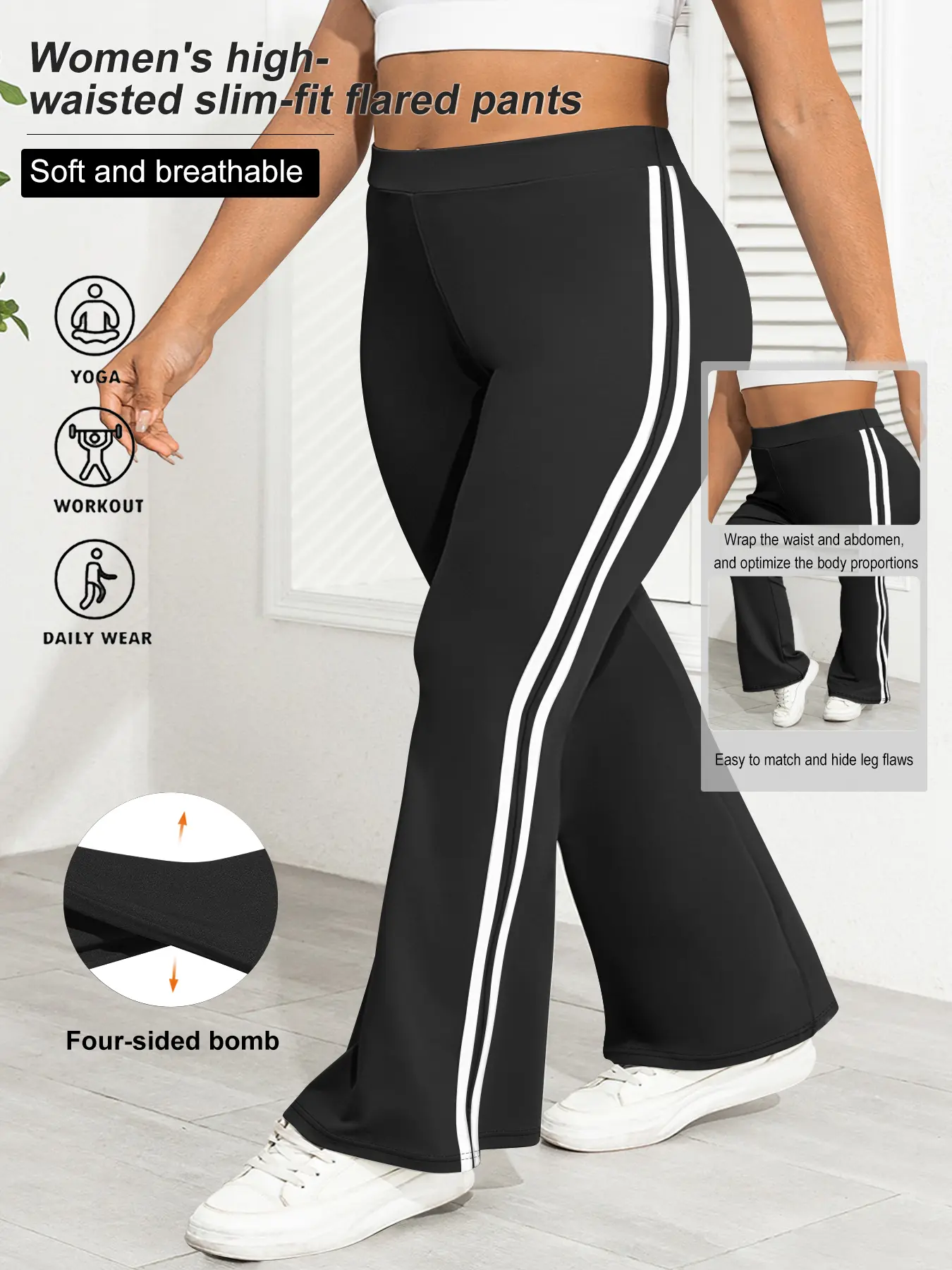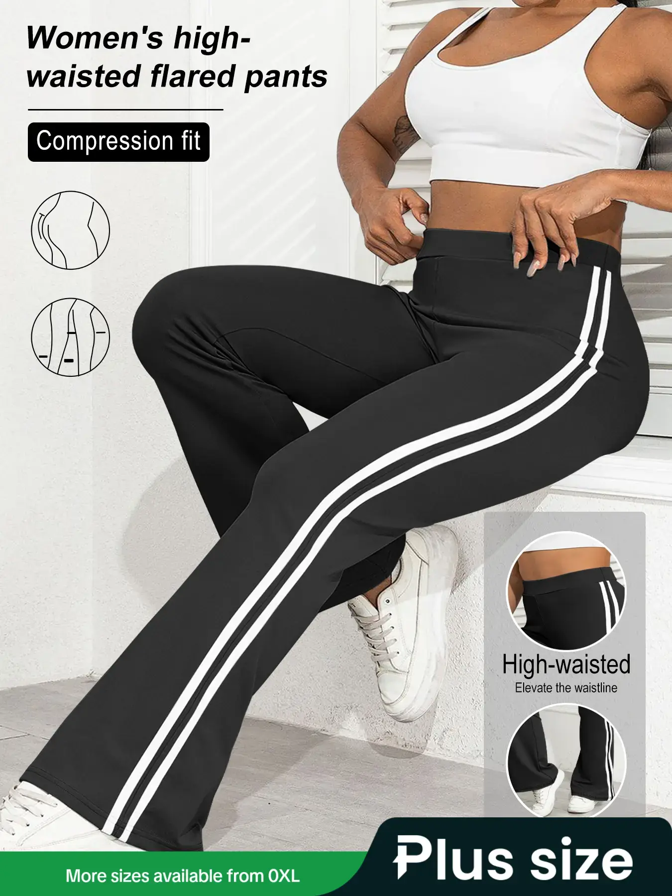 Women's Plus Size High Waist Flare Pants, Casual Side Stripe Design, Comfortable Elastic Fabric, Perfect for Daily Wear